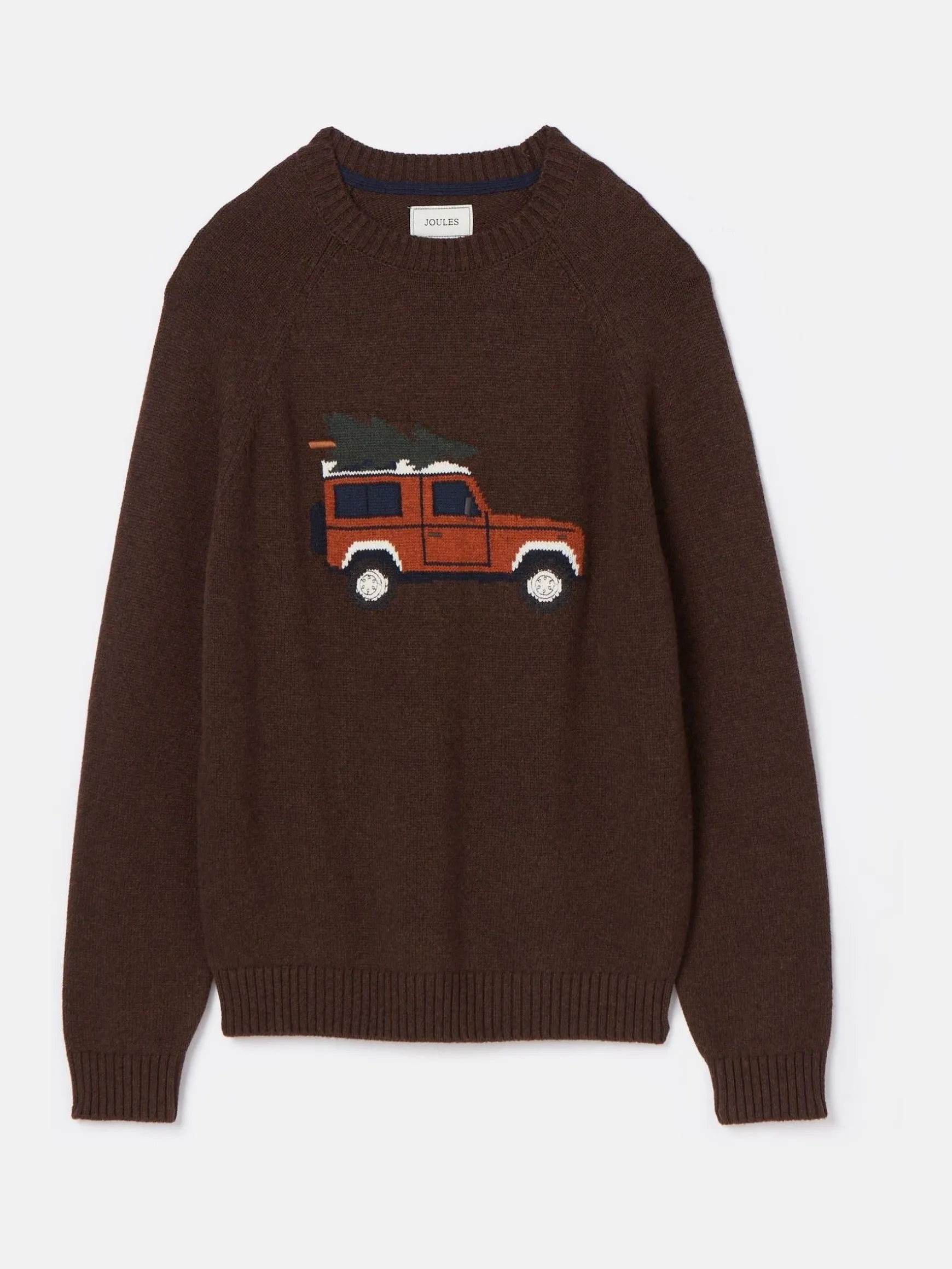 Turn your style up a gear this season with the Cracking knitted jumper. This much-loved favourite returns for another season with its 4×4 applique to the front which has been made from a cutting of Joules tweed. The jumper itself is made from a soft wool blend, has a comfortable ribbed crew neck making it an ideal layer and is finished with a ribbed hem and cuffs too. Wool blend. Tweed 4×4 applique to the front. Ribbed round neck. Ribbed hem and cuffs.