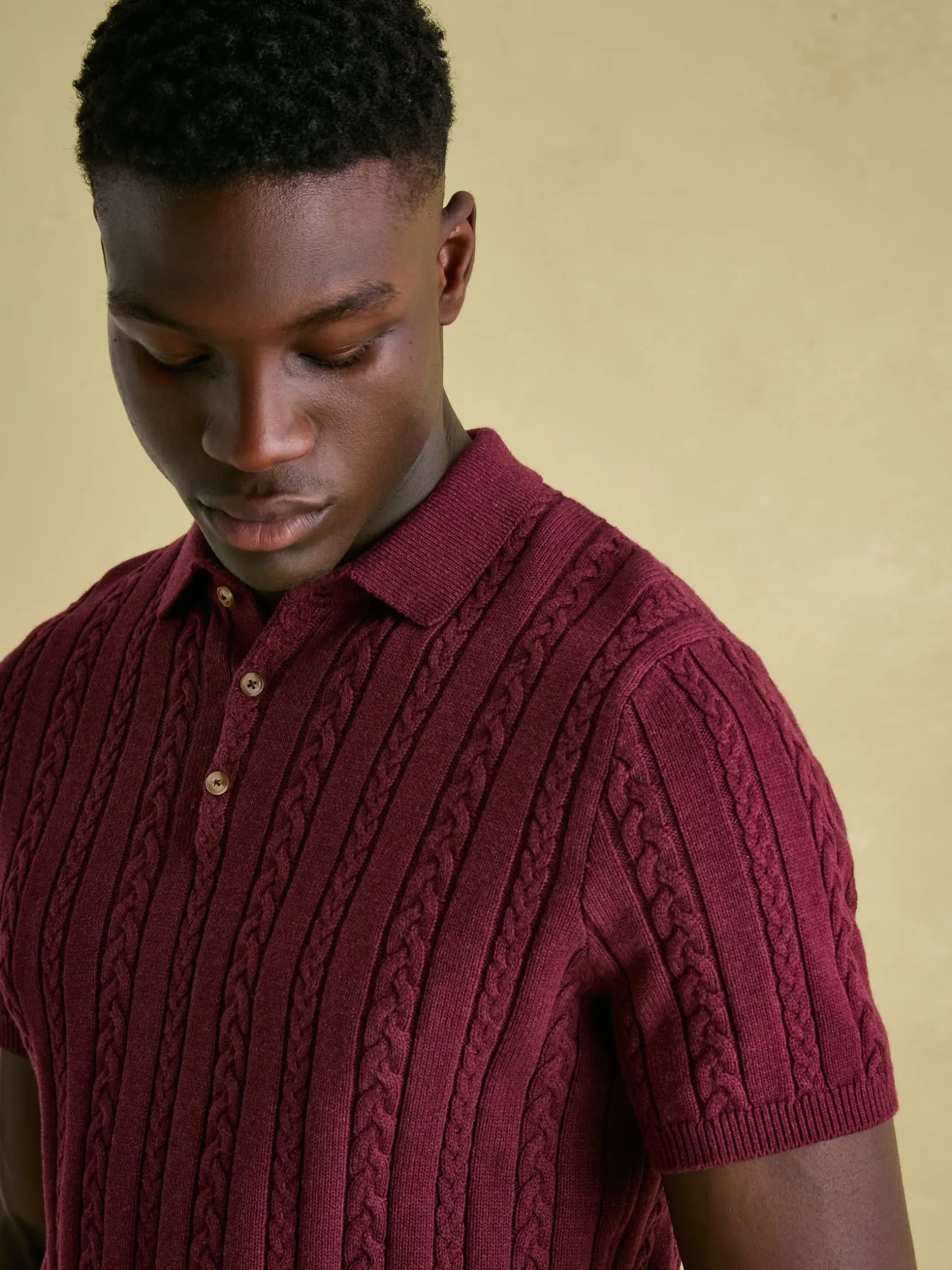 Be the first to review “Adlington Burgundy Cable Knitted Polo Shirt” Cancel reply