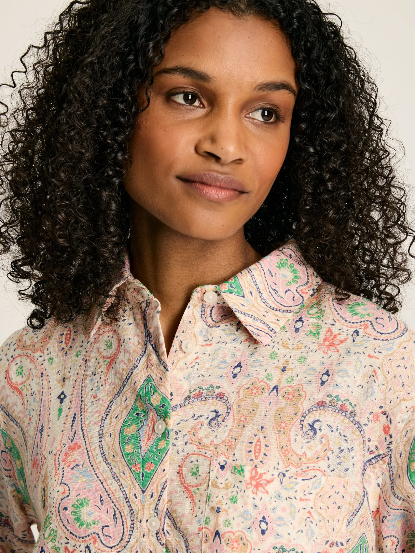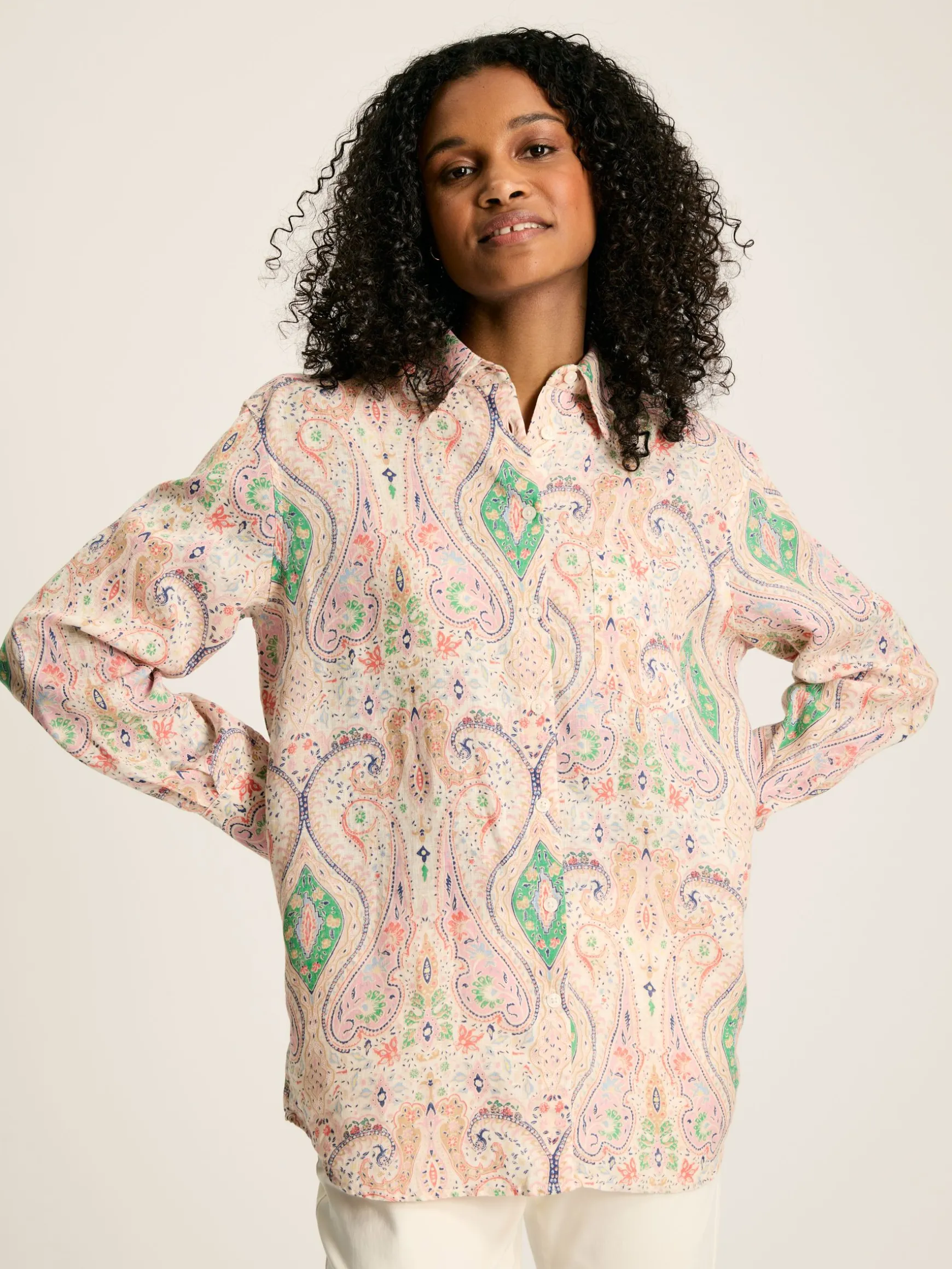 This is our much-loved Amilla shirt, just in a new 100% linen fabric for the summer months. The perfect beach-to-bar piece, it’s lightweight, with a relaxed fit and dropped shoulders making it easy to throw on over swimwear or shorts. The concealed button placket creates a clean, chic finish while the button cuffs allow you to roll the sleeves up to create a laid-back look. It’s finished with a flattering curved hem and a single patch pocket to the chest. 100% linen. Relaxed fit. Dropped shoulders. Curved hem. Button placket. Collar. Button cuffs. Single patch pocket to the chest.