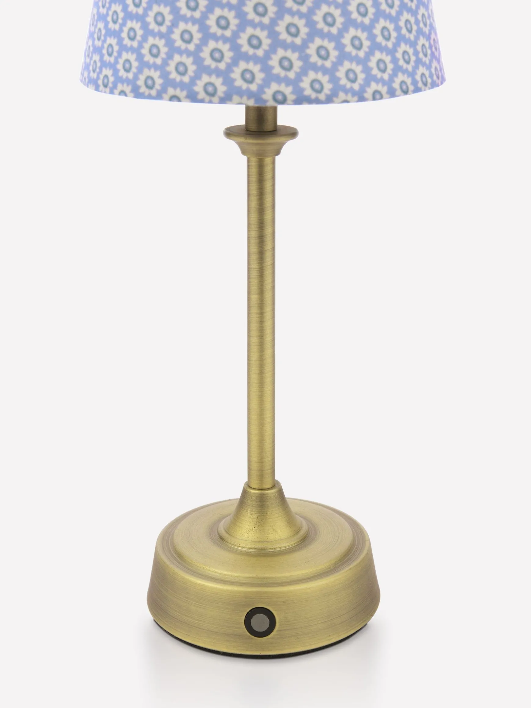 With a print that immediately draws attention, the Apsley lamp is a bold and beautiful interior choice. Its re-chargeable LED design means it is wire-free offering you the opportunity to quite literally light up any space in the home, giving you full creative freedom. The stand and base are made from a chic matte antique brass that suits all homes and has a classic tapered lamp shade adorned with a hand-drawn floral print. Picture it on your desk providing the light while you work on that novel you always said you’d write.nnRe-chargeable with a plug-in adaptor nMatte antique brassnPrinted tapered lamp shadenDi: 120mm x H.245mm