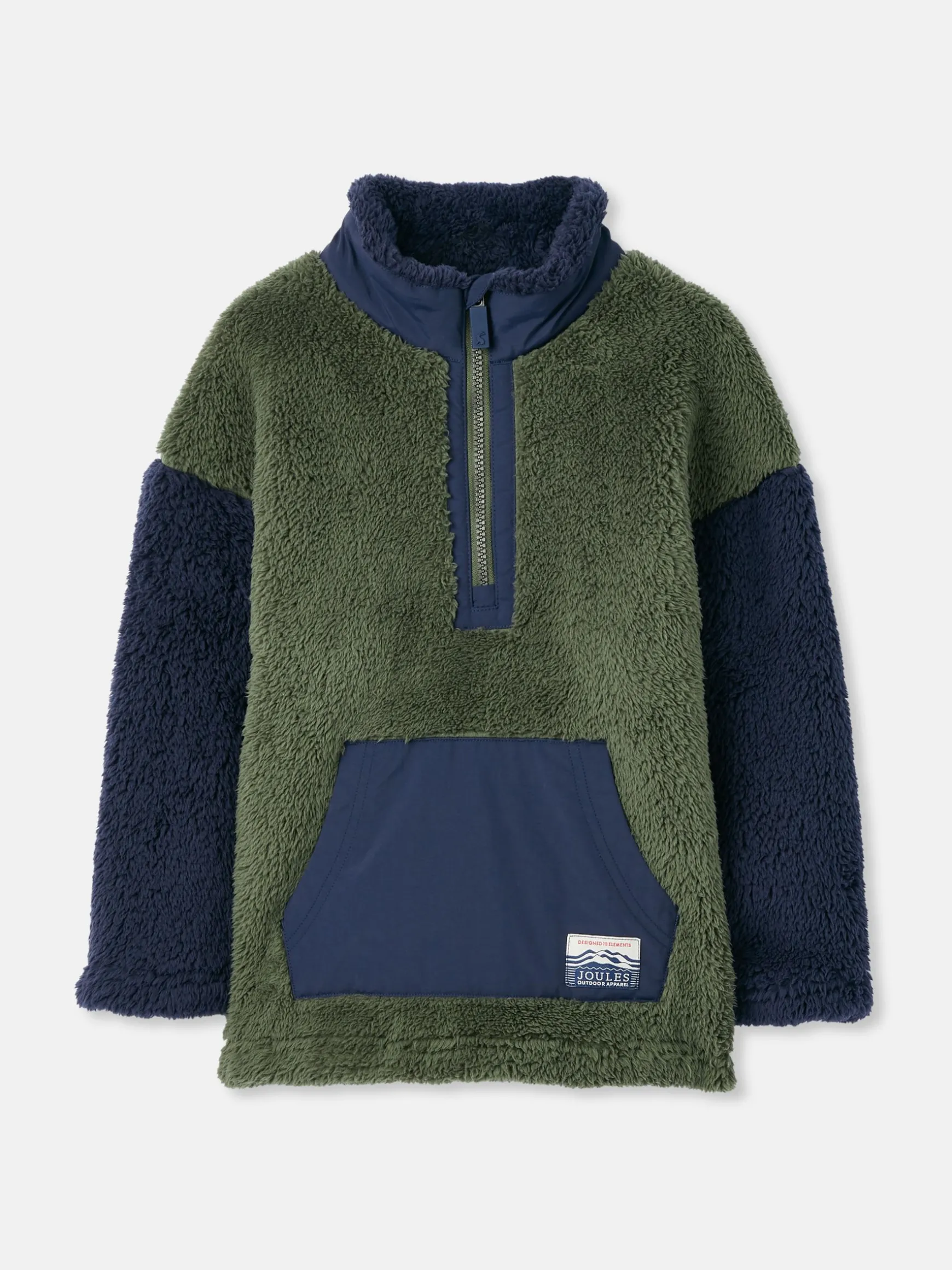 Boys’ Always Cosy Green/Navy Half Zip Borg Fleece