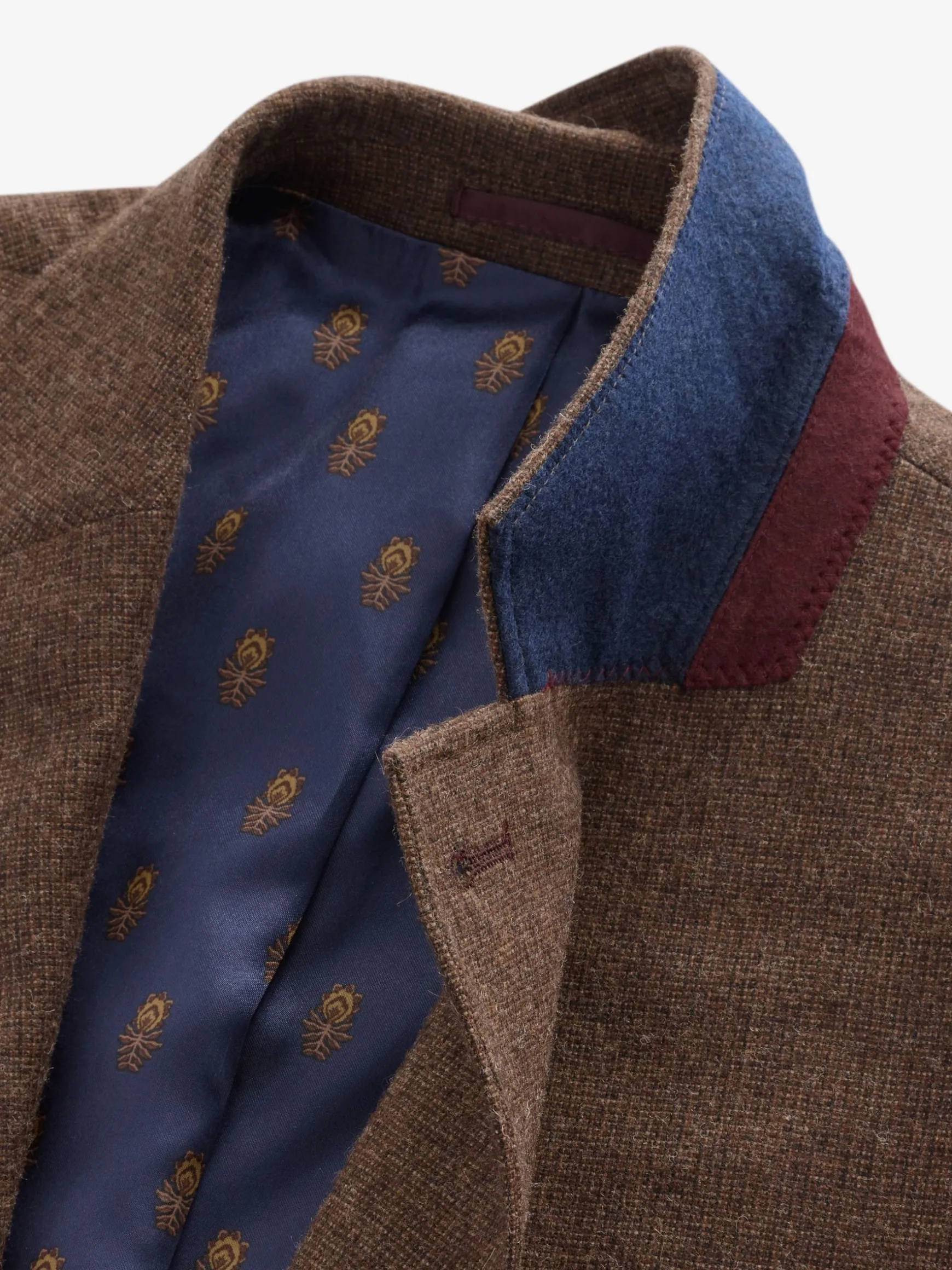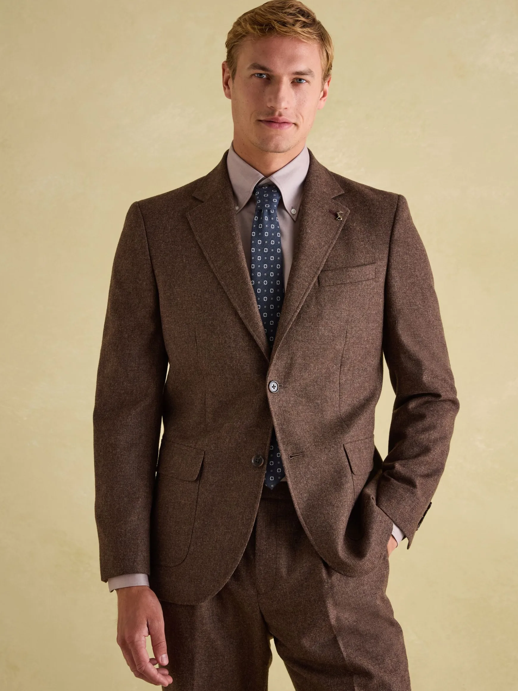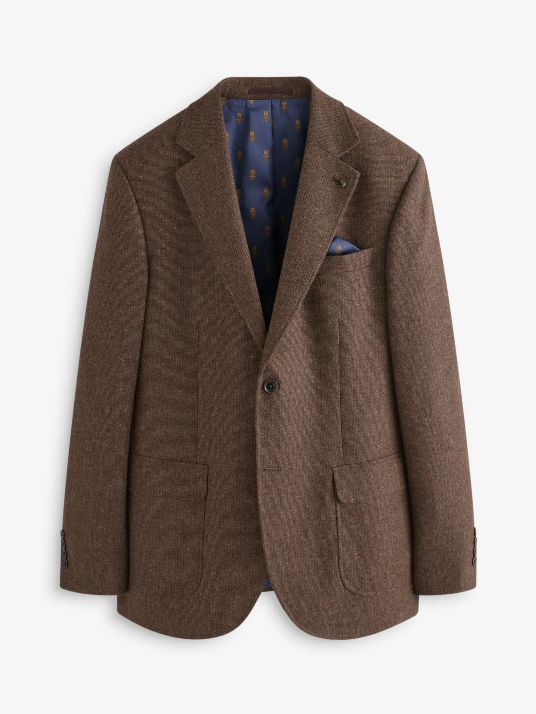 Arrive at any event looking dapper and exuding confidence with this timeless suit jacket. One part of a three-piece ensemble, it’s tailored to an unfussy slim fit and cut from soft Italian pinhead fabric. It has a simple yet stylish look with a single breasted design, a two button fastening and notch lapel collar complete with a detachable Joules hare pin. Two flap pockets to the front are a practical touch, while a single pocket to the chest with a stitched-in satin pocket square adds flair. Inside there’s a printed satin lining and plenty more pockets. Wear it with a classic white shirt and chinos or invest in the full three-piece suit with the matching waistcoat and trousers.nn- Slim fitn- Italian pinhead fabricn- Single breastedn- Notch lapel collar with detachable Joules hare pinn- Printed satin liningn- Two faux horn buttons to the frontn- Kissing buttons to the cuffsn- Single chest pocket with pull-out pocket squaren- Hidden branded detailing under the collar n- Two flap pockets to the front