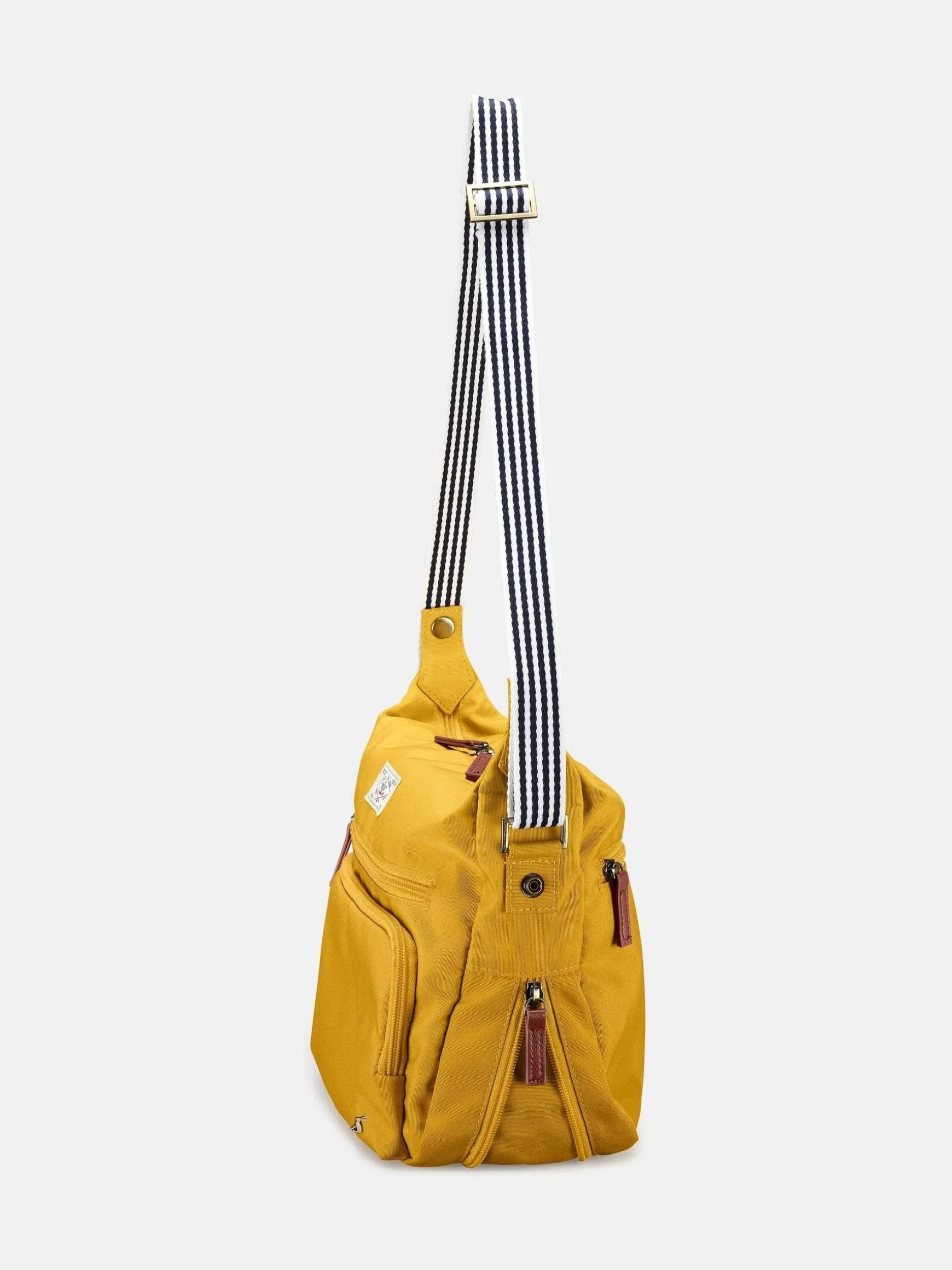 The Coast backpack collection is an ideal daily companion that will prove its worth time and time again. The design of this shoulder bag makes it an ideal alternative to a handbag for everyday use.nnDouble zip wide opening main compartmentnInternal organisational pockets and striped liningnExtendable base to give added spacenTwo front pockets for easy accessnBrushed antique gold hardware including hare logonExtendable striped webbed shoulder strap