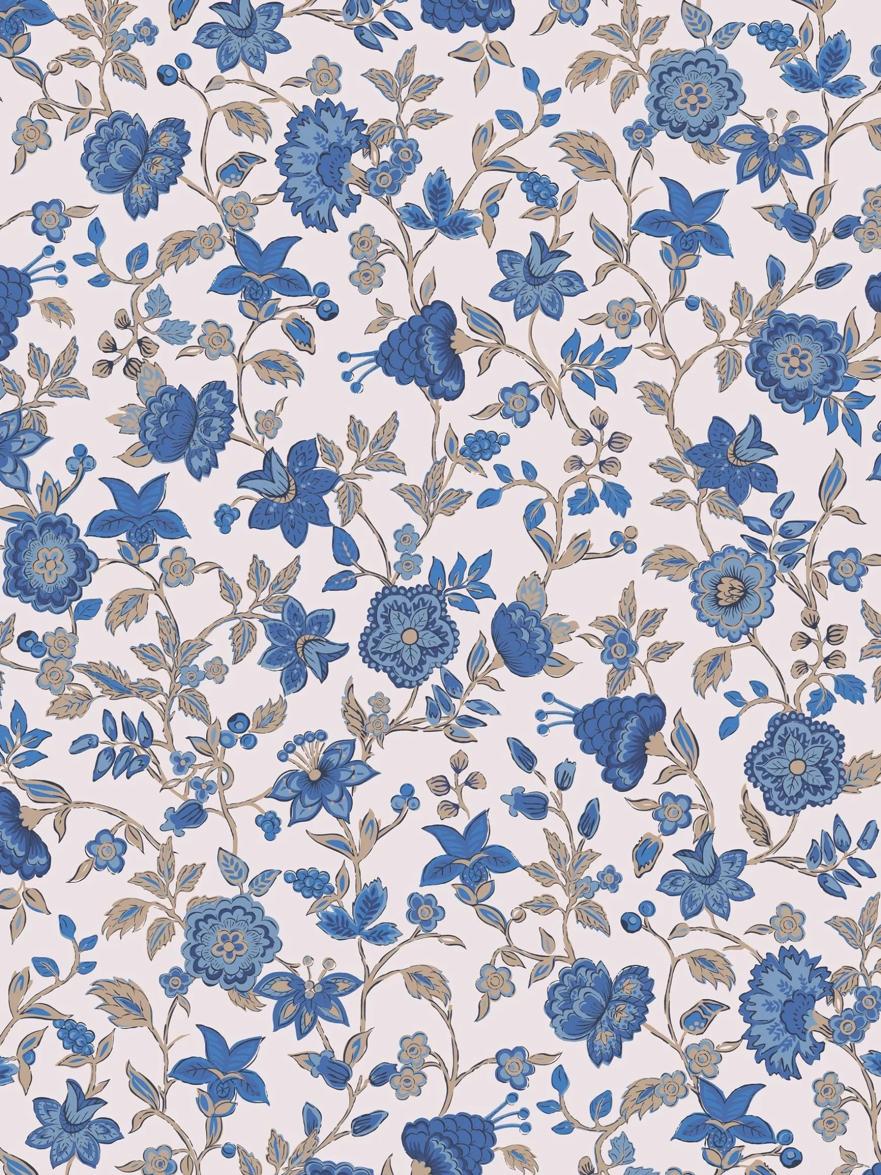 Cream/Blue Trailing Scot 10M Wallpaper