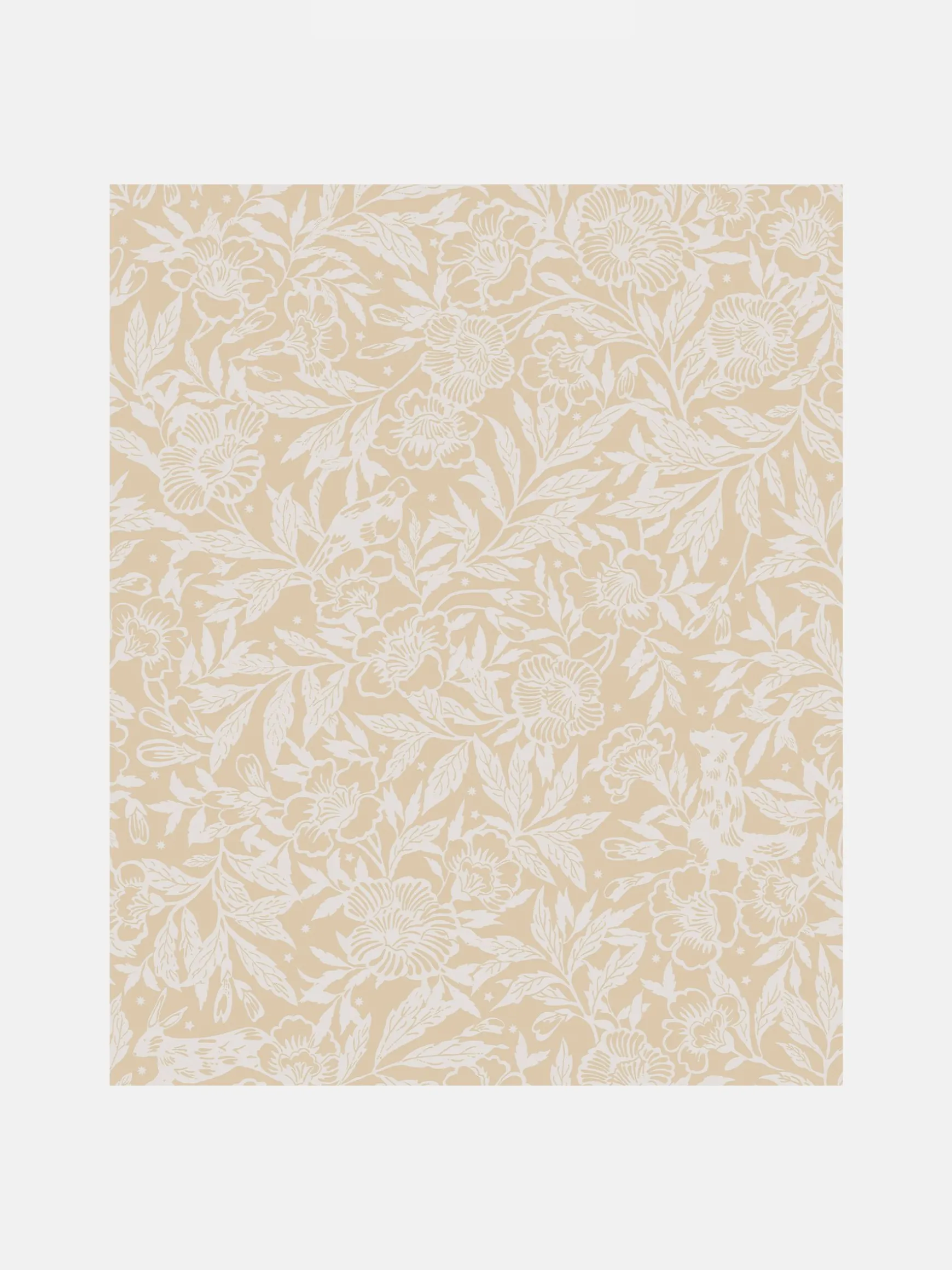 Bring classic arts and crafts style to your home, along with a touch of the British countryside. This wallpaper teams floral blooms and foliage with hidden birds perched upon branches, leaping hares and foxes surrounded by delicate stars. The more you look, the more you’ll see. This beautiful design has a large repeat for impactful scale and is printed on a matt substrate for a contemporary look and feel. This wallpaper is also paste-the-wall, making it easy to hang.