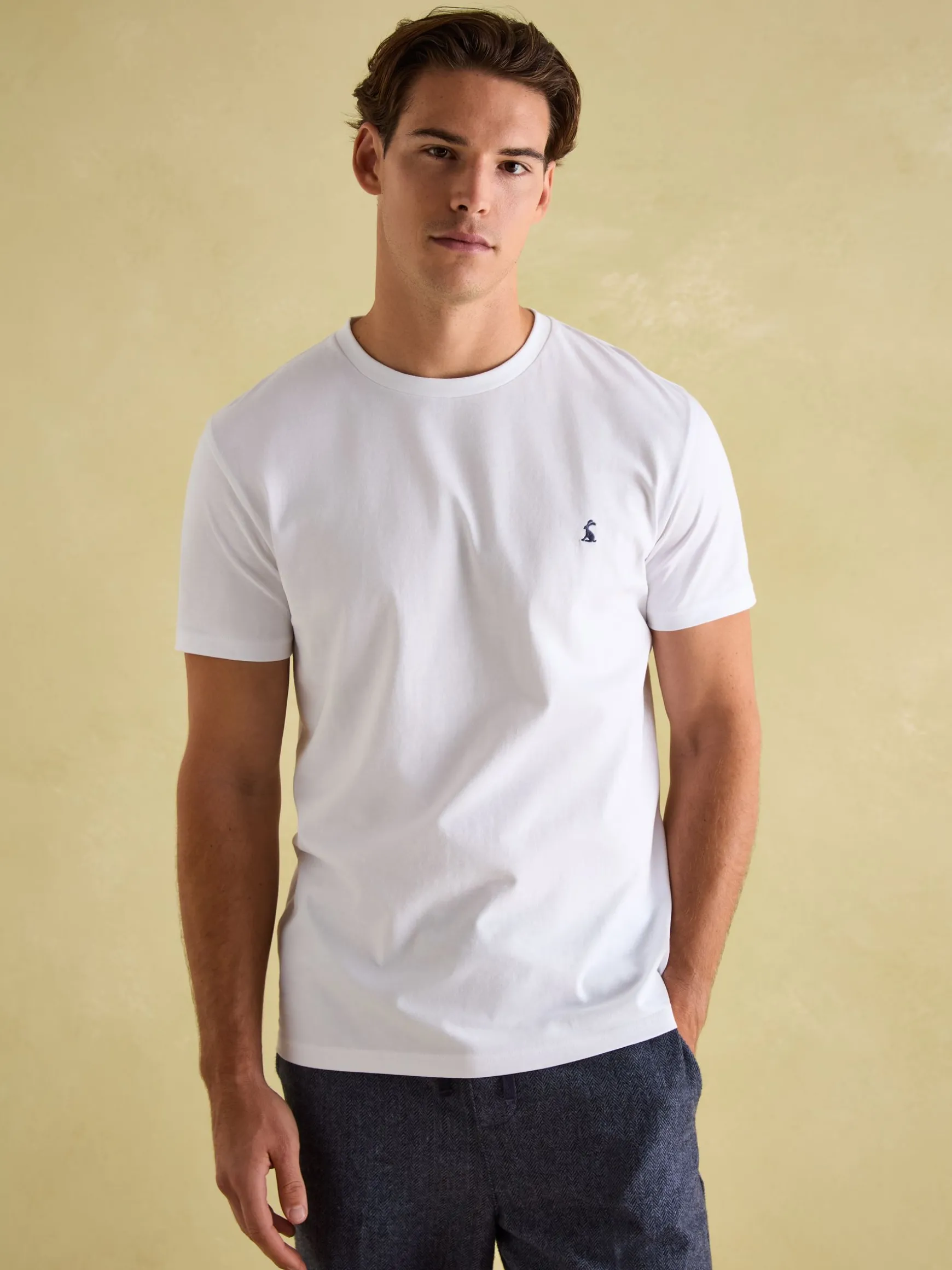 Perfect for weekends, holidays or just lazing around the house, this unfussy style will be a faithful favourite for years to come. Well-made and ready to pair with anything that’s already in your wardrobe. Roll on those short-sleeve days in the sun. Cotton. Short sleeves. Crew neck. Joules embroidered hare to the chest.