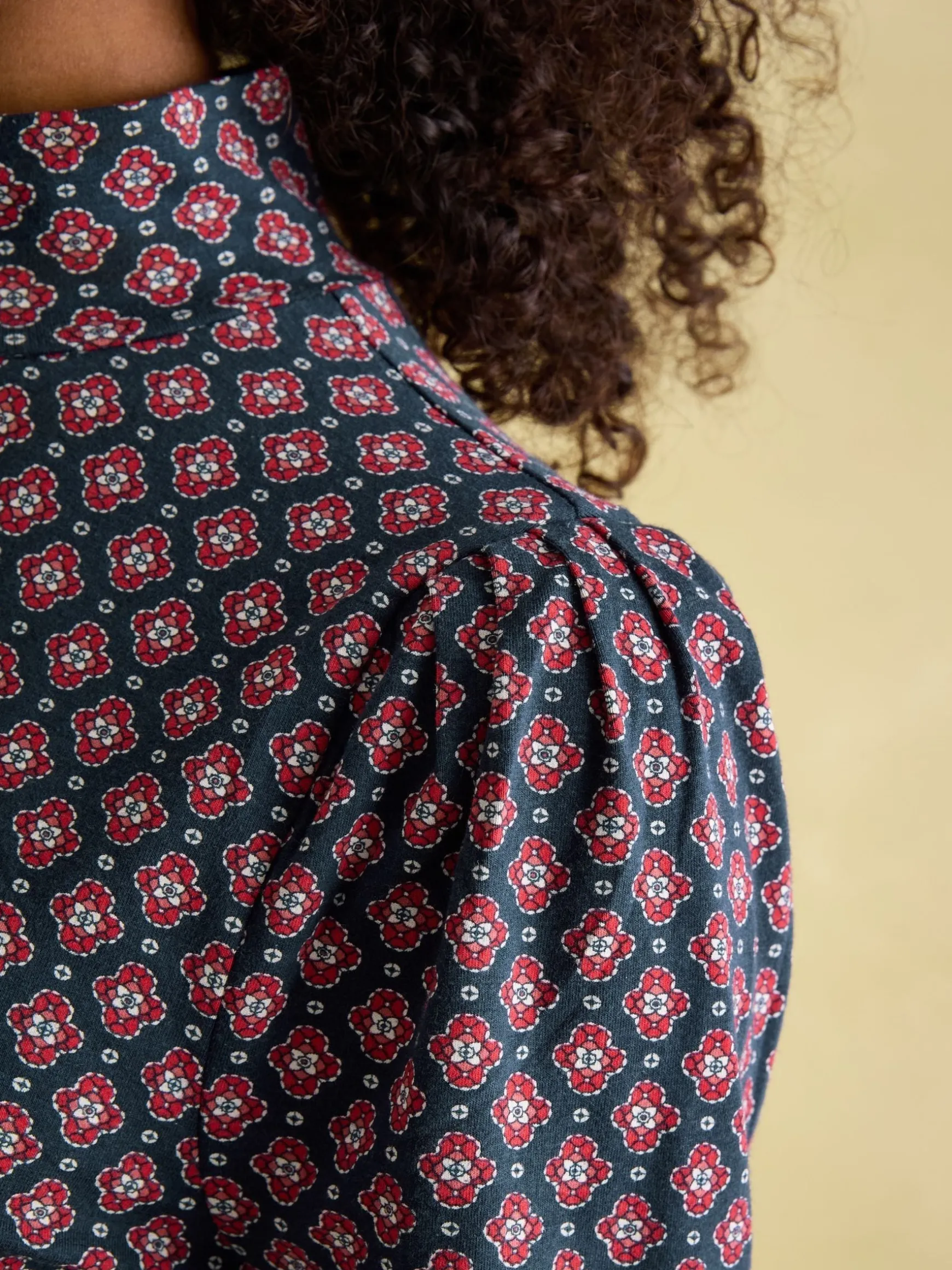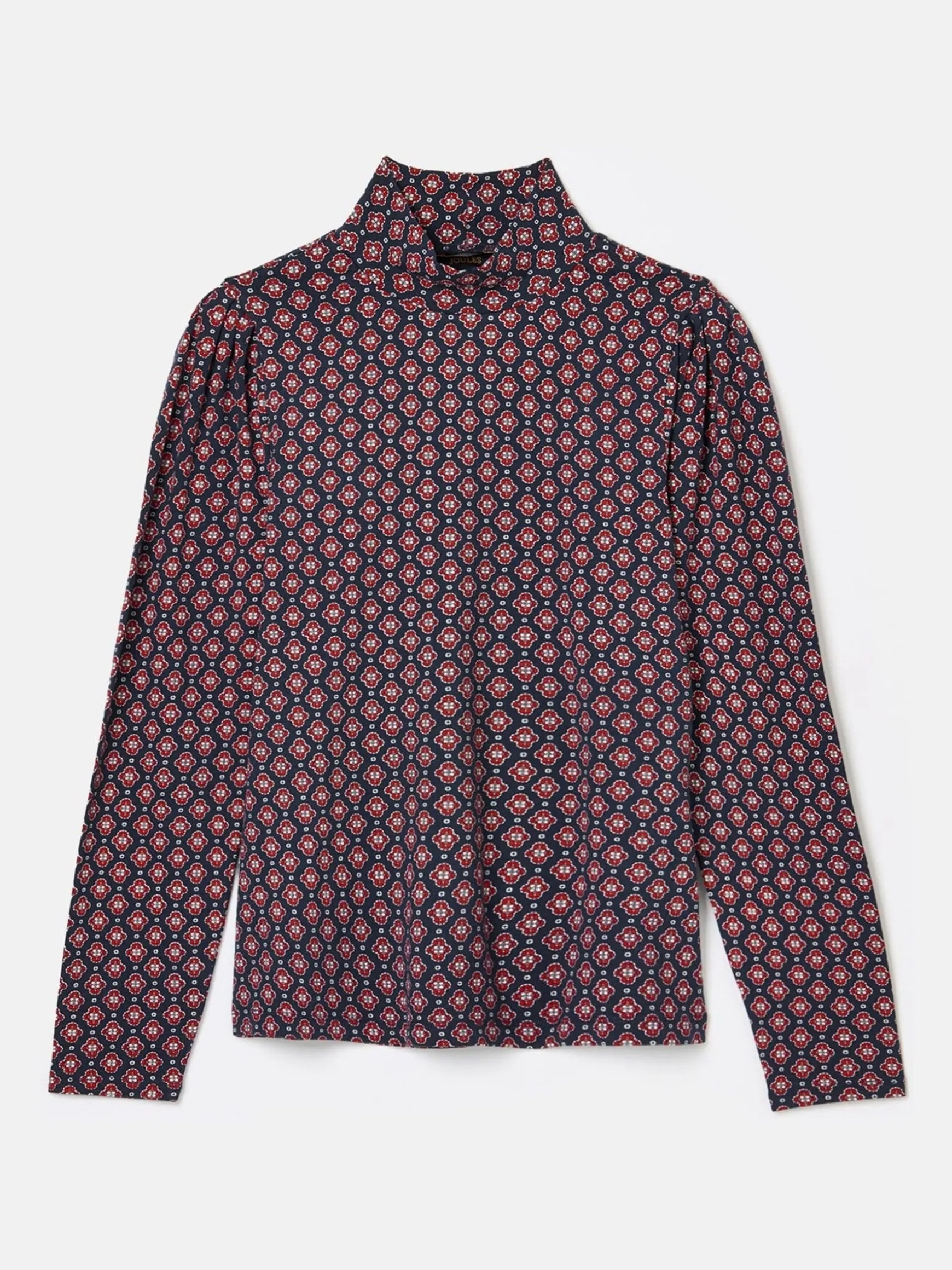 Prepare your autumn and winter wardrobe with stylish pieces that can be worn alone or as part of a layered-up ensemble. The Elizabeth top has been designed with versatility in mind. Its hand-drawn print, flattering fit and button detail to the cuffs ensure when worn alone it makes a statement, while the turtle neck makes it easy to add warmth under sweatshirts, knits and more. Cotton blend. Turtle neck. Long slim fitting sleeves. Gathered shoulders. Hand-drawn print.