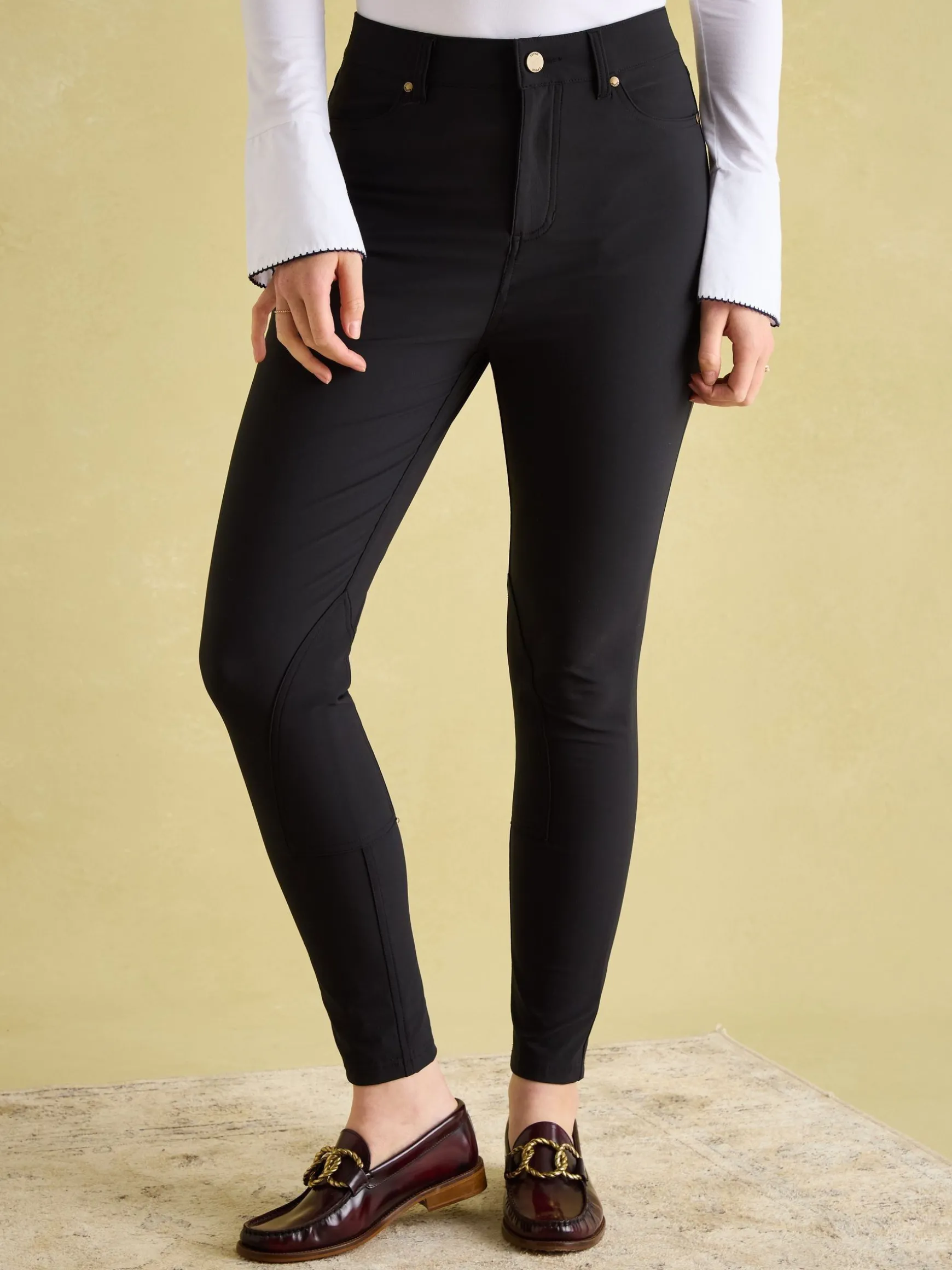 Stylish yet functional, the Ember jodhpurs embrace equestrian style. They have a mid-rise waist and a form-fitting skinny fit through the leg. The stitched-on patches to the knees are a nod to their equestrian inspiration while their four pocket design makes them entirely practical. They’re finished with belt loops and a classic zip and button fastening. Perfect for wearing for anything from a day at the stables to a trip to the local with friends. Skinny fit. Mid-rise waist. Zip and button fastening. Belt loops. Equestrian-inspired patches to the knees. Four pocket design.