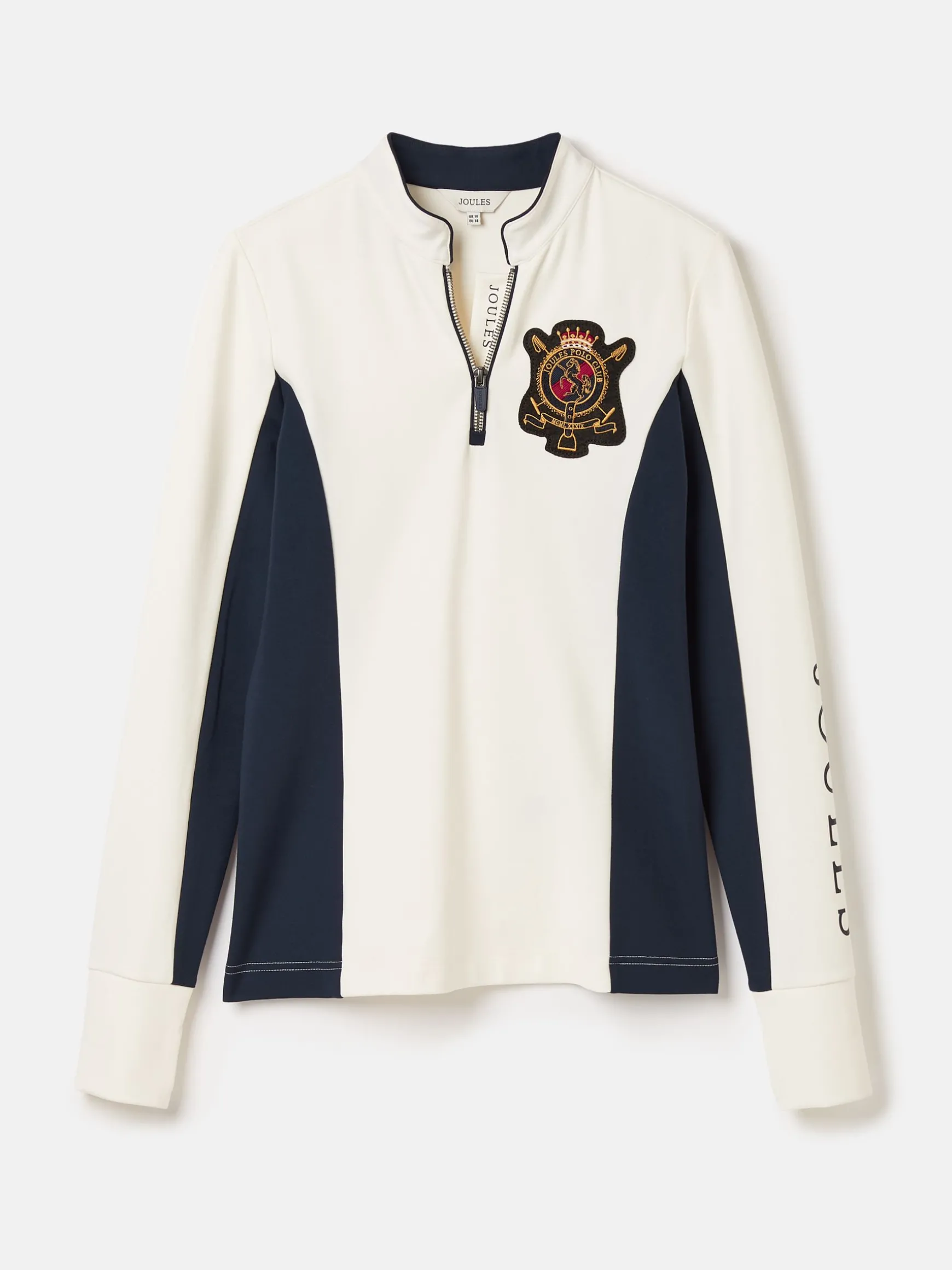 The perfect combination of stylish and show-ready, this long-sleeved polo is an exciting new addition to our collection. Crafted from a breathable and moisture-wicking fabric, it’s designed to make you feel (and look) great, it has a slim fit, flattering contrasting side panels and a quarter zip fastening with Nehru collar. The long sleeves with thumb holes give it an extra sporty touch while making it a key base layer long after the event has come to a close. It’s finished with event embroidery to the chest and Joules branded embroidery to the sleeve. Base layer. Slim fit. Moisture-wicking fabric. Breathable. Long sleeves with thumb holes. Quarter zip fastening. Nehru collar. Contrast colour side panel. Event embroidered badge to the chest