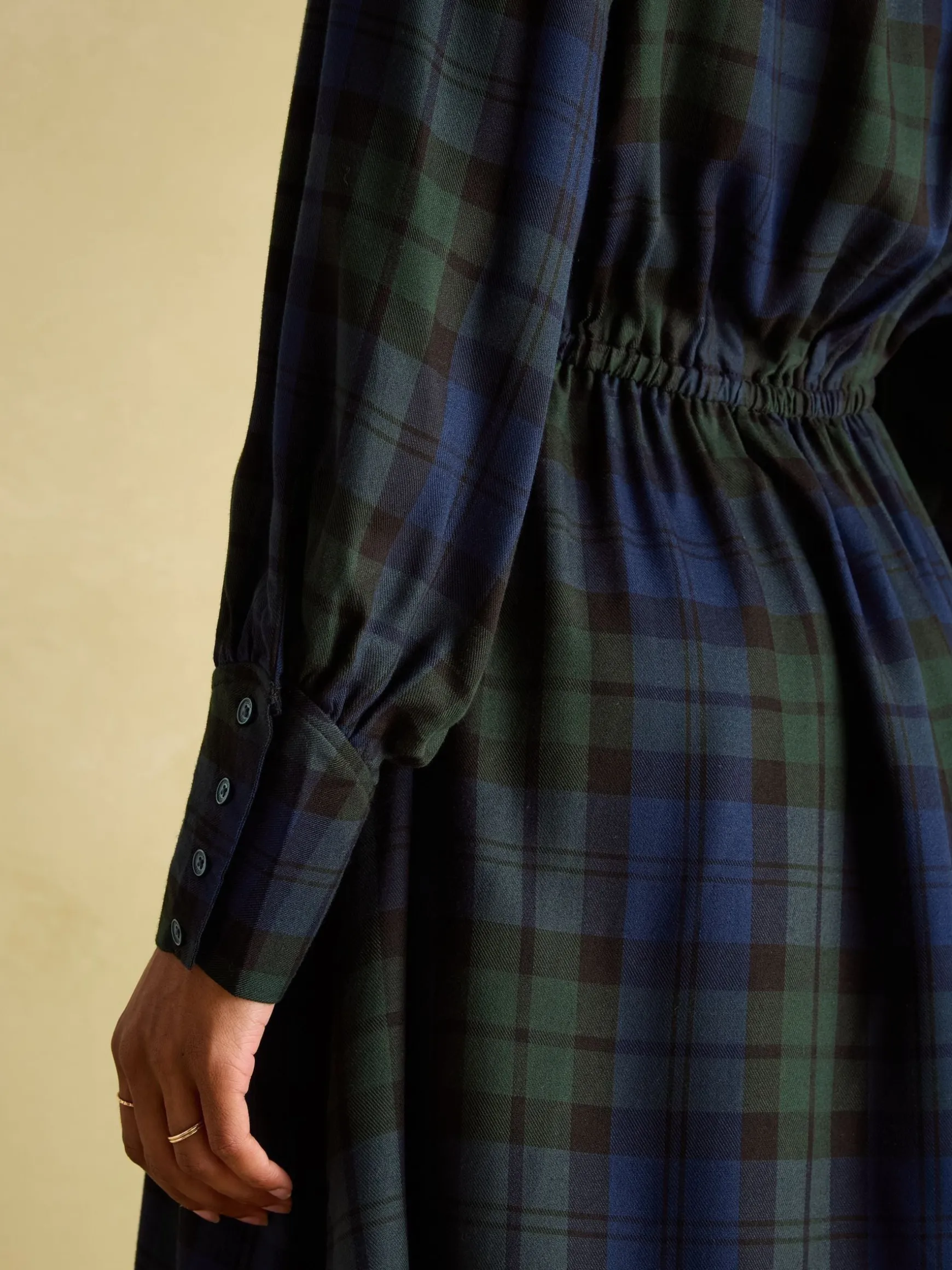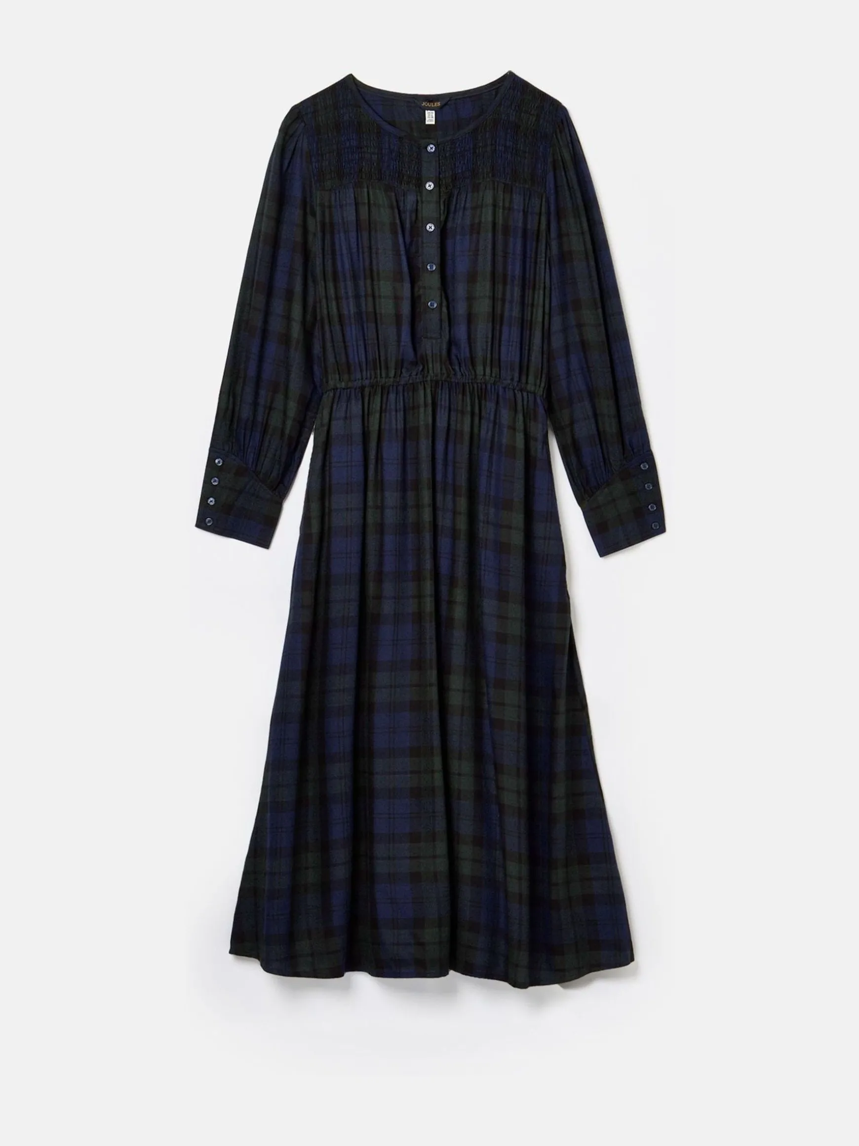 Seamlessly transition your wardrobe for the autumn and winter months with the Felicity midi dress. Its richer colour palette, versatile midi length and long sleeves makes it perfect for the season. The balloon sleeves and deep cuffs with fabric buttons adds a touch of vintage flair to the piece, while smocking to the front yoke not only adds detail but allows the fabric to stretch for a comfortable wear. Finished with a button placket, round neck and pockets in the side seams. Viscose. Midi length. Balloon sleeves. Deep cuffs with fabric buttons. Elasticated waistband. Round neck. Button placket. Smocking detailing to the front yoke. Pockets in the side seams.