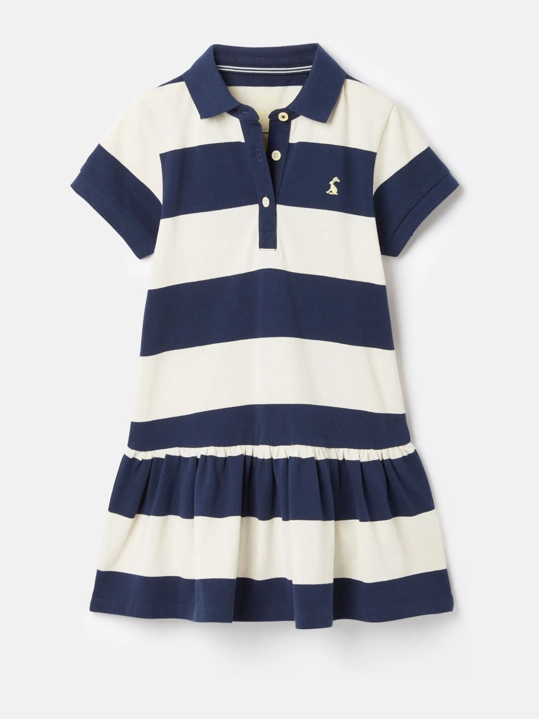 We’ve taken our love of polo shirts to the next level and made a dress version for your little one! Practical yet oh-so-stylish, Orla is the perfect thing to wear all summer long. It’s got the traditional look of a polo with short sleeves, a button placket and a collar just with a few Joulesy twists. We’ve added a dropped waist with a frilled hem that will have them twirling in delight and an all-over horizontal stripe. Polo style collar. Button placket. Short sleeves. Hare embroidery to chest. Easy fit. Gathered peplum skirt. Joules branded embroidery under back neck collar