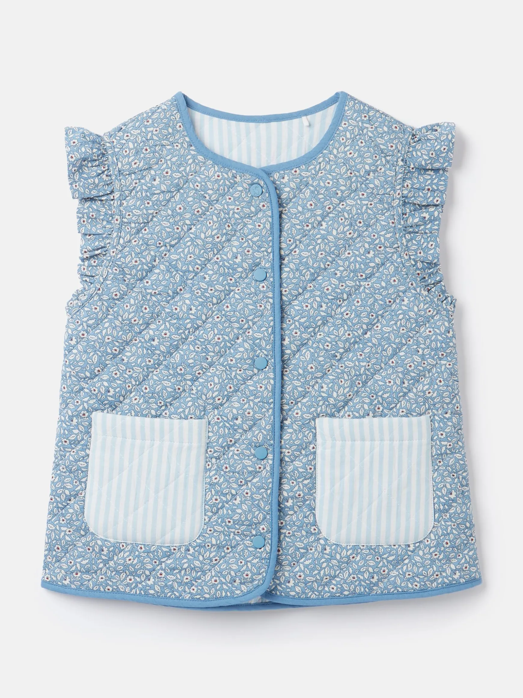 Girls’ Raye Blue Floral Reversible Print Quilted Gilet