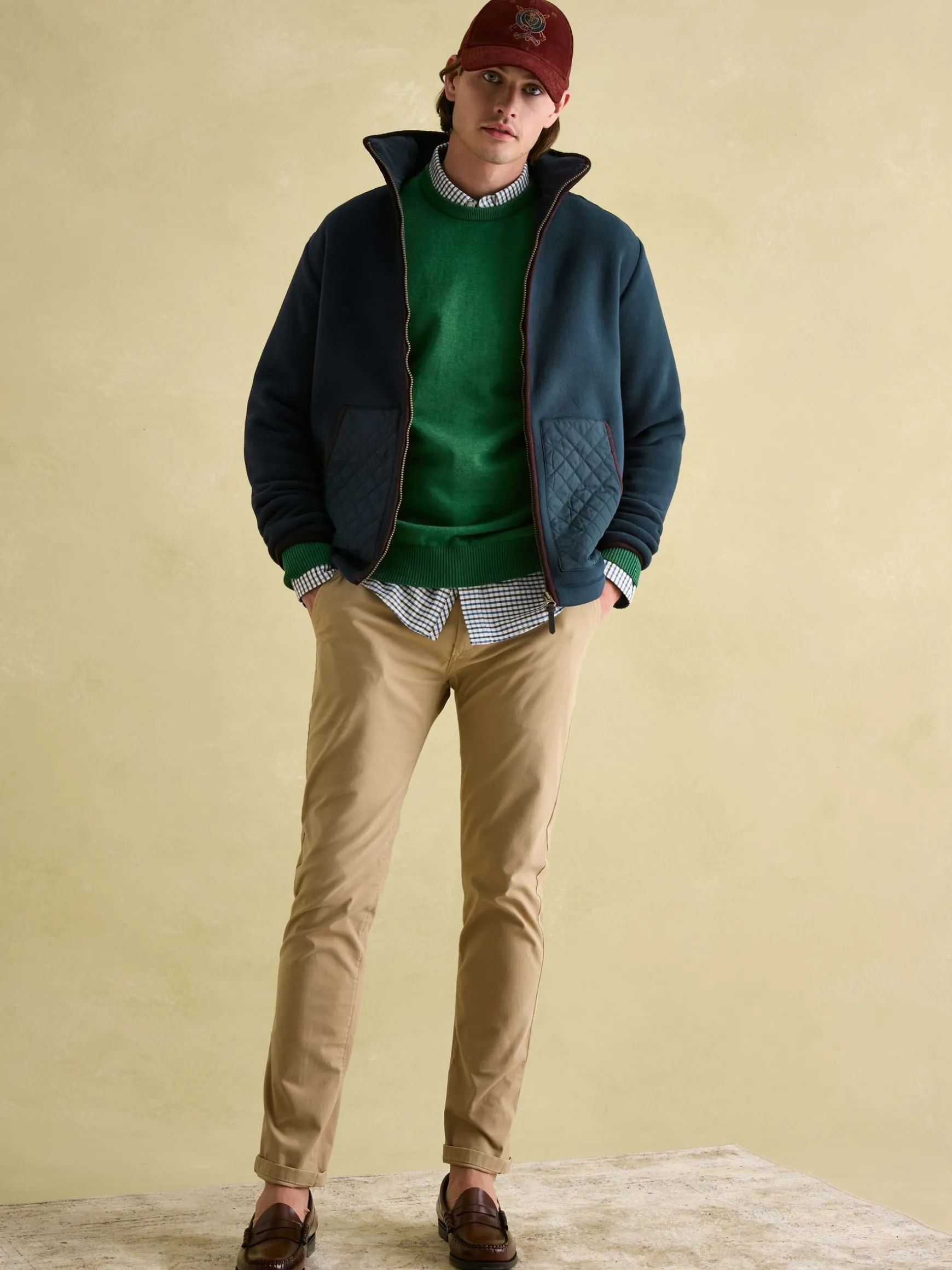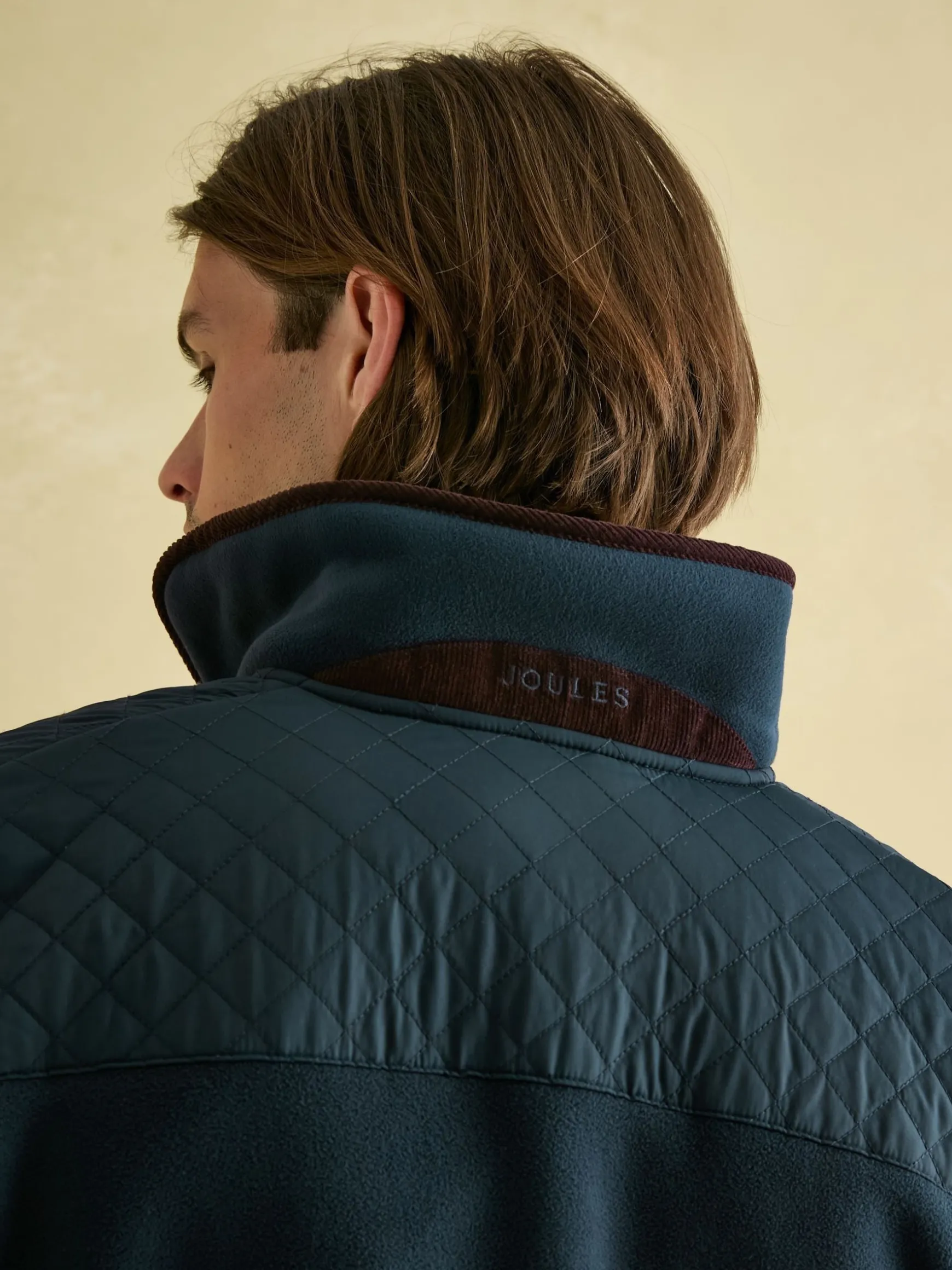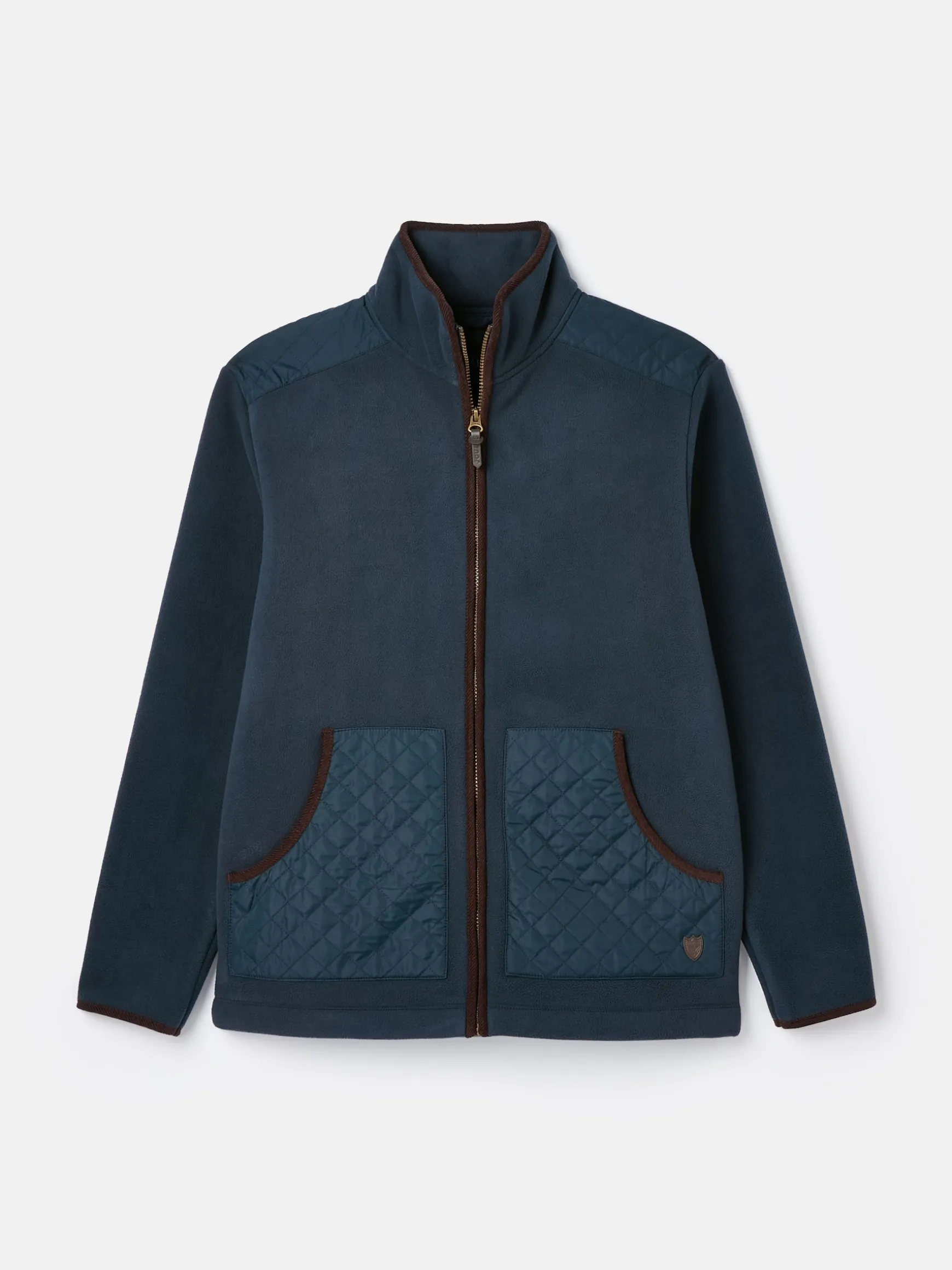 Carrying a traditional countryside look, the Greenfield fleece jacket is a rugged style designed for outdoor rambles and the like. The fleece fabric is contrasted with woven diamond quilting to the front and back yoke and pockets. It has a zip fastening with faux leather zip pull, and cord binding to the cuffs, collar and pockets and can be adjusted at the hem via the internal bungee cord toggles. Branded details can be seen on the left pocket and under the collar. For a classic country look, layer it over checked shirts, and jeans and throw in a pair of wellies for good measure. Discover the matching Greenfield gilet. Borg fleece fabric. Woven diamond quilted detail to the front and back yoke. Two front pockets with diamond quilting. Cord binding. Adjustable hem via internal bungee cord toggles. Zip fastening with faux leather zip pull. Joules branded badge to the left pocket (as worn). Joules embroidery under the collar. Internal pocket. Length: 74cm (based on a UK size: Medium).