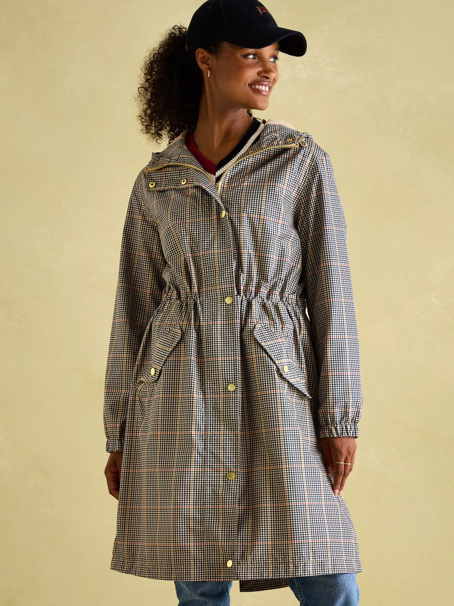 We’ve perfected the pack away by combining practicality and style. The Holkham packs away into its own pocket (hidden at the back) that can easily be stashed away until you need it. Crafted from a lightweight yet substantial fabric and complete with taped seams, it’s a real waterproof wonder. To keep you cool and comfy on those wet walks, we’ve added a mesh lining to the upper half of the jacket for breathability. Durable, high-shine poppers, toggles and zip are a nod to its quality, whilst an internal adjustable waist is a flattering feature. The perfect companion for any trip, whether that be a blustery coastal ramble, a countryside stroll or a dash around the local farmer’s market. Relaxed fit. Zip and popper fastenings. Waterproof with taped seams. Half mesh lining. Packs into the storm flap pocket (hidden at the back). High shine trims. Hood with adjustable bungee toggles and mesh lining. Adjustable waist with internal toggles. Flap pockets with popper fastenings. Length: 103cm (based on UK size 12)