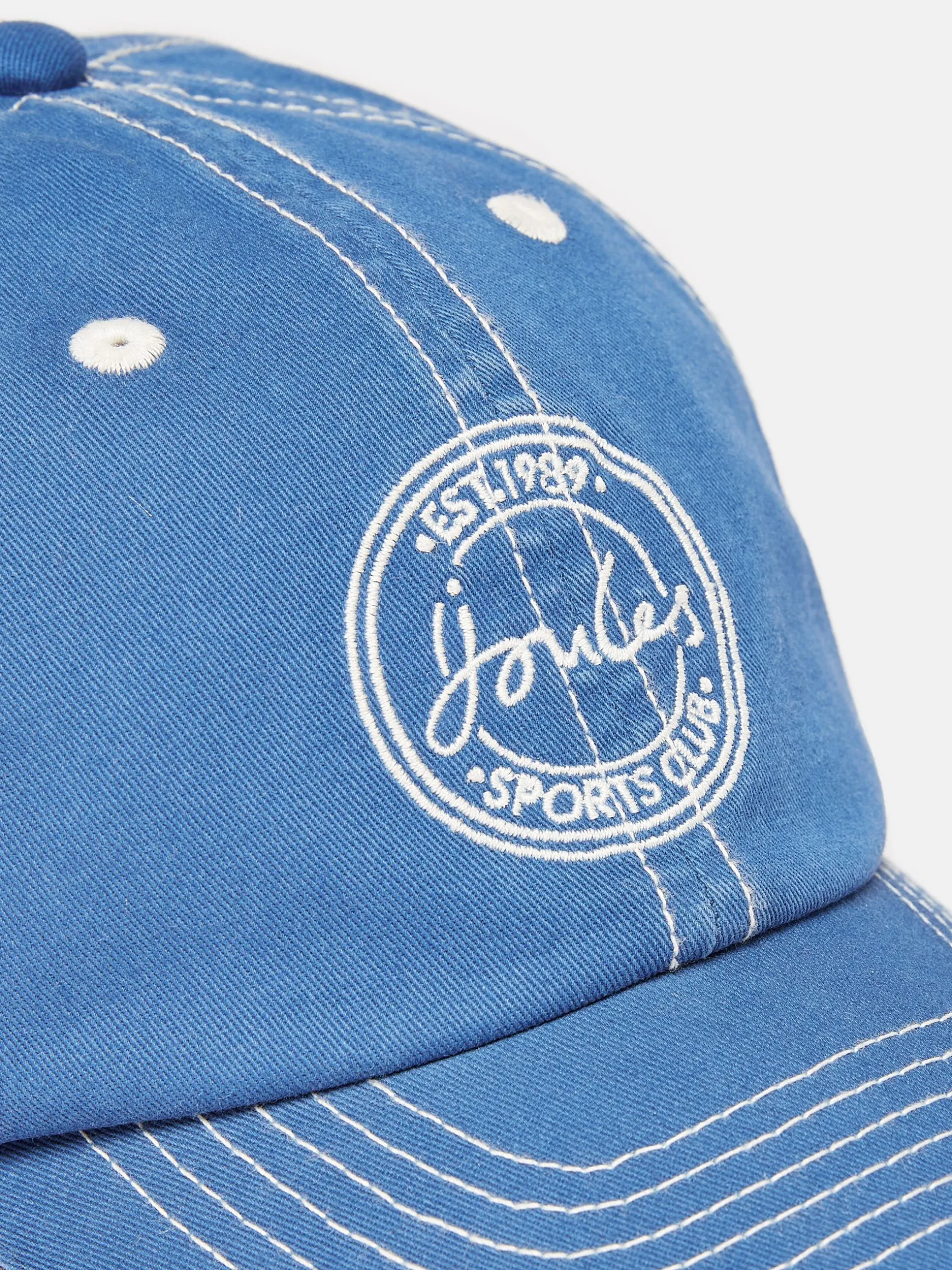 When the sun has got his hat on, it’s a good idea for your little one to have theirs on too – and our Daley cap is just the ticket.nnCrafted from lightweight and breathable 100% cotton, it has all the classic features you’d expect, like a stitched peak, embroidered metal eyelets and an adjustable back strap with a metal clasp (adorned with our iconic hare, of course). To the front, you’ll find our Joules Sports Club embroidery – perfect for your little teammate. Available in matching styles for women and men too. 100% breathable cotton. Stitch detailing to peak. Embroidered metal eyelets. Fabric-covered top button. Adjustable back strap with Joules-branded metal clasp. Joules Sports Club embroidery detail to the front