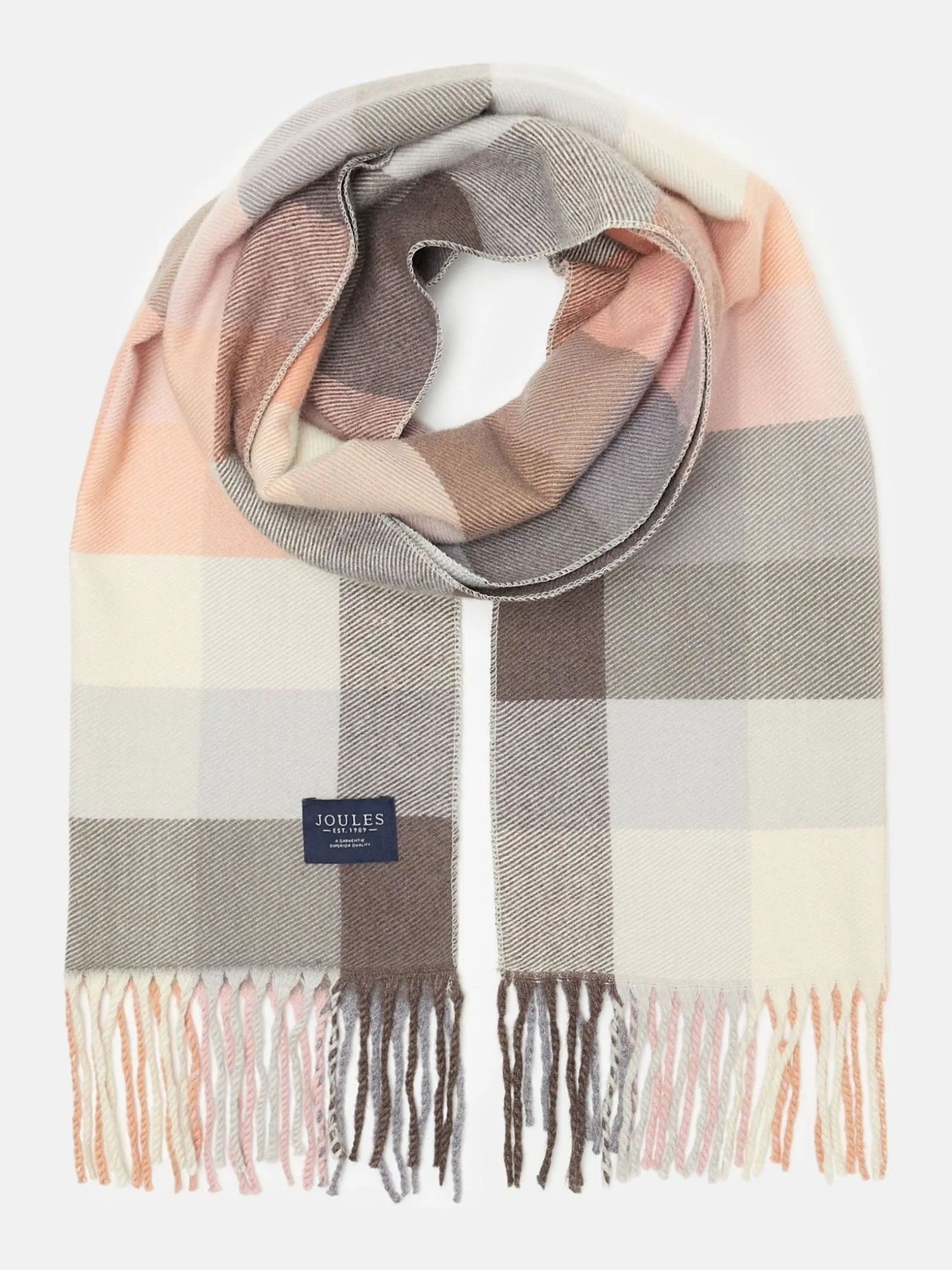 No cold weather attire is complete without a scarf, and the Langtree is a much-loved style back for another season. In a new line-up of checks, this scarf is adored for its soft hand feel, versatile styling and traditional tasselled detailing. While we have no doubt it will look great on you, it also makes a great gift idea too! Woven. Checked pattern. 170cm x 73cm. Tasselled ends. Joules branded tab to the edge