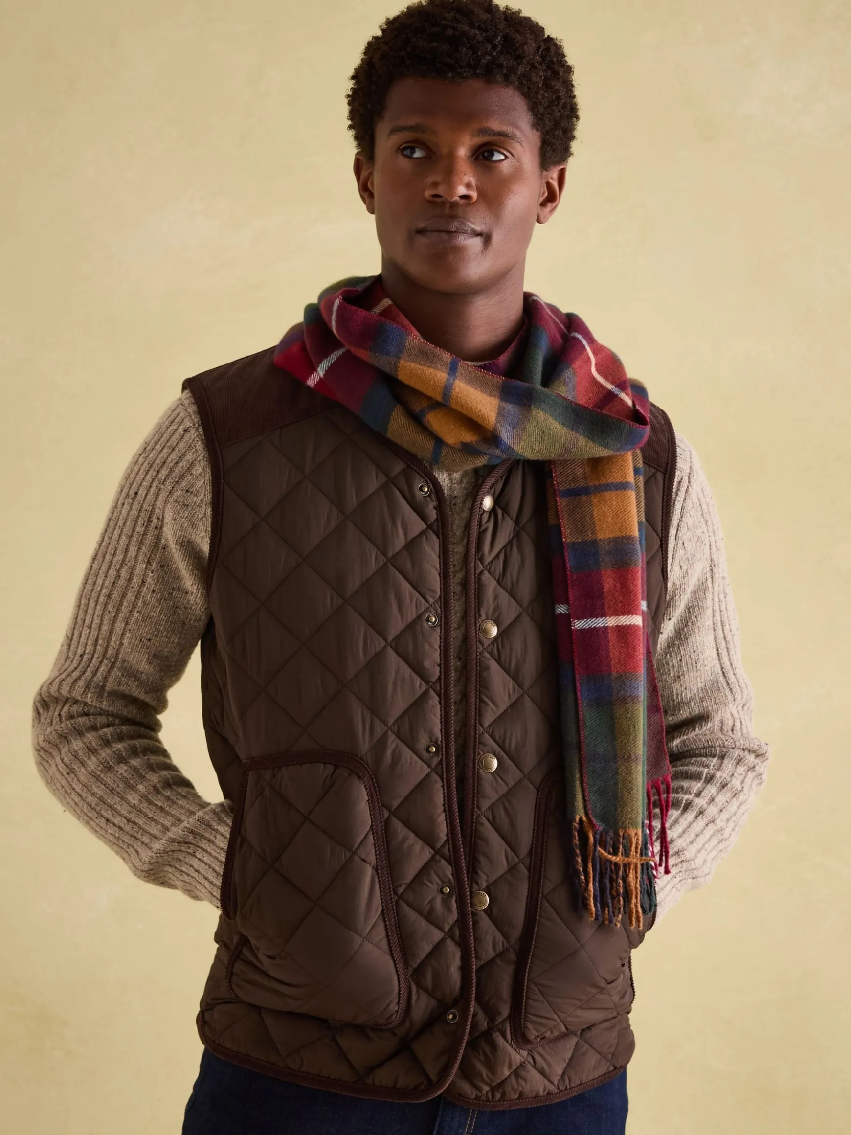 Practical yet dapper, the Langtree scarf will make a timeless addition to your cold weather wardrobe. It has a soft hand-feel, tasselled ends and a classic pattern that will never go out of style. Drape it under the lapels of your jacket so it’s ready and waiting for when the temperatures drop. Soft hand feel. Tasselled ends. Checked pattern. Joules branded tab to the edge. Dimensions: 170cm x 37cm