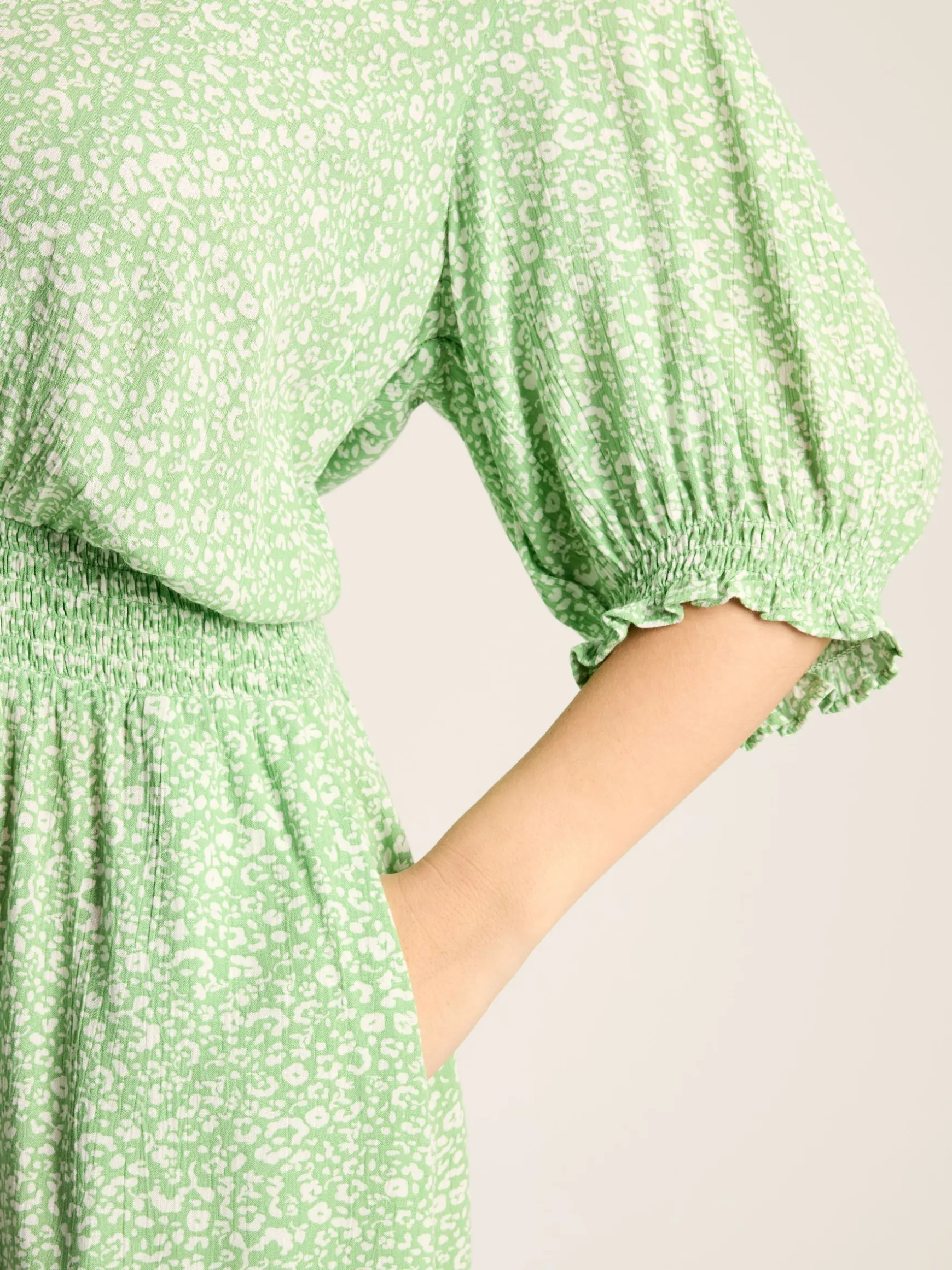 If you’re refreshing your warm weather wardrobe, save a space for the Laurie dress. Designed for summer, it’s crafted from 100% Livaeco by Birla Cellulose viscose which gives it a beautiful lightweight and floaty feel. It’s cinched with a shirred waistband before falling to a midaxi length, has short sleeves with frilled elasticated cuffs and has four button fastenings to the bodice. The notch neck is effortlessly flattering and the hand-drawn ditsy print that adorns the dress complements the season. 100% Livaeco by Birla Cellulose viscose. Livaeco by Birla Cellulose fibres are derived from certified sustainable wood sources, have lower water consumption and can be traced to their origin. Midaxi length. Short sleeves with elasticated frilled cuffs. Notch neck. Button fastenings to the bodice. Shirred waistband. Hand-drawn ditsy print