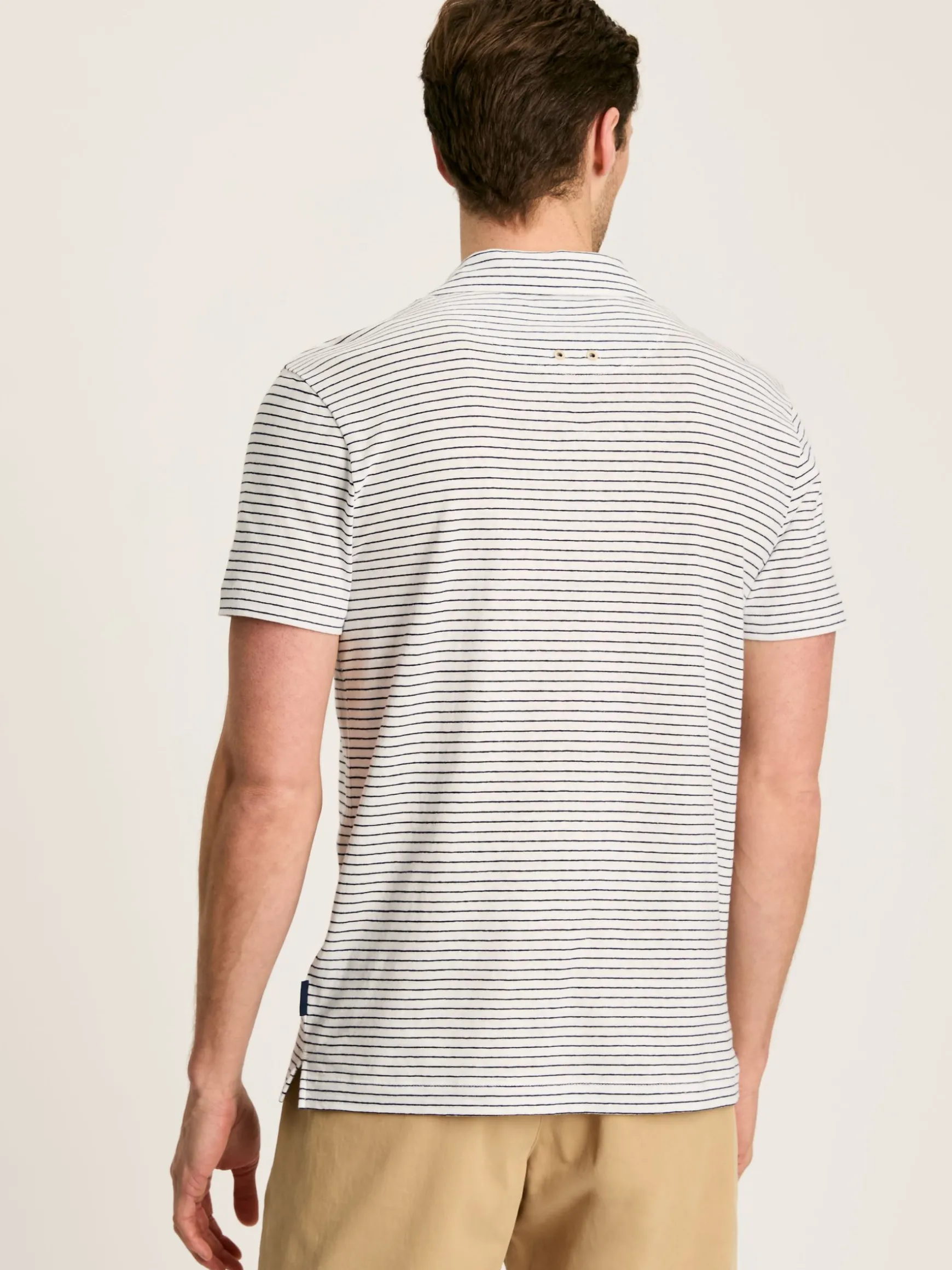 This striped polo is the ultimate addition to your warm weather wardrobe. Crafted from a linen and cotton blend the fabric is light and comfortable, while the open collar design creates laid-back appeal. It has a classic fit, a single patch pocket to the chest and stripes that speak to the season. Pair with chinos and loafers for a look that ticks the box for time off. Cotton and linen blend. Classic fit. Short sleeves. Open collar. Single patch pocket to the chest. Side splits. Striped.
