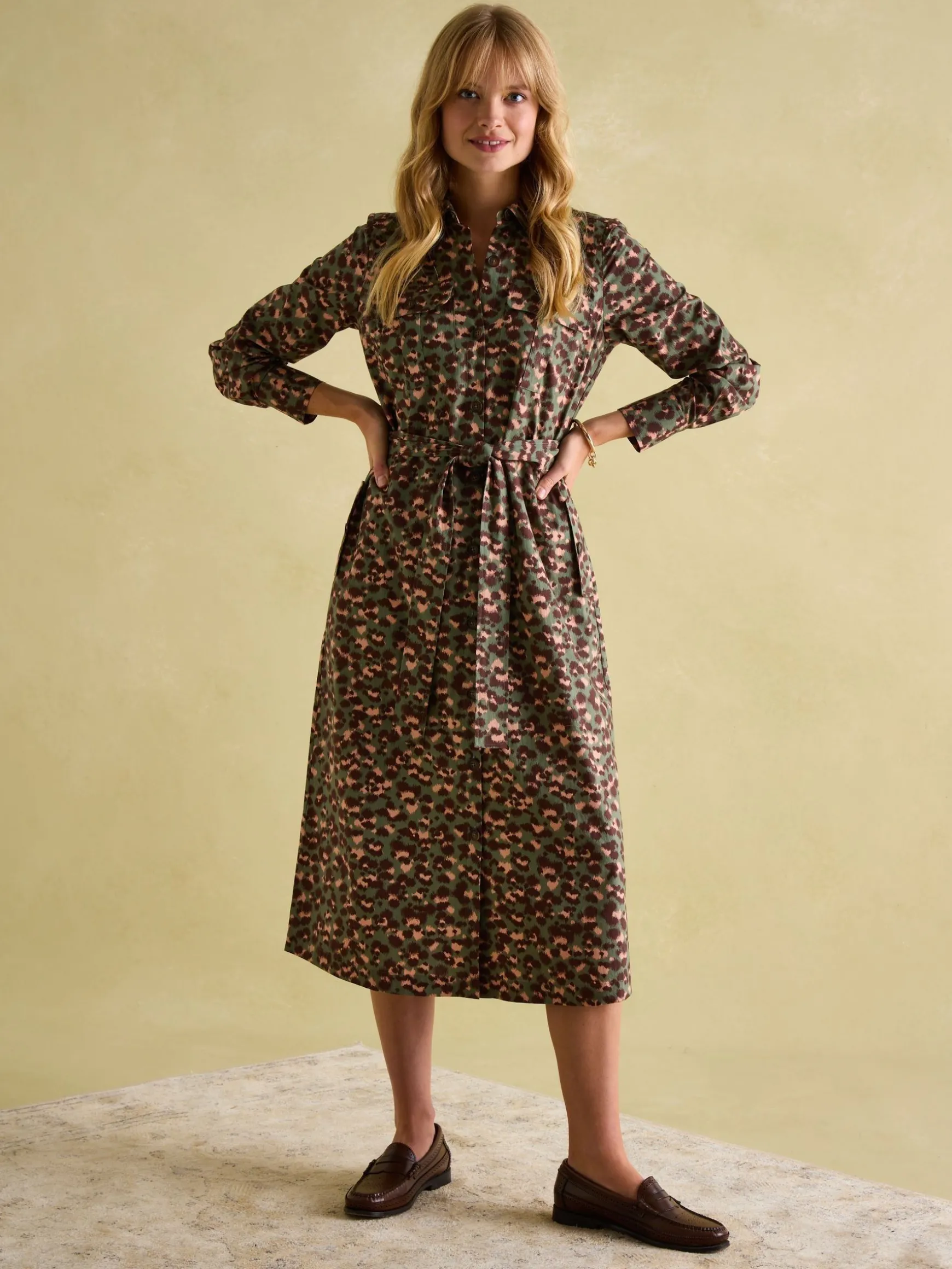 Combining utilitarian style with flattering details, the Meredith dress is a great piece to welcome into your autumn wardrobe. The full button down fastening, abundance of pockets (two at the chest and two on each side) is a nod to its utilitarian influence, while the removable belt allows you to cinch it at the waist, or wear it without for a more relaxed fit. It sits at a midi length and has long sleeves with button cuffs making it a wonder for the cooler months. Wear it with a style of leather riding-style boots for a look that screams British elegance, or pumps for a cool casual feel. Cotton. Midi length. Utilitarian style pockets to the chest and side. Full button down fastening. Collar. Long sleeves with button cuffs. Removable belt at the waist.