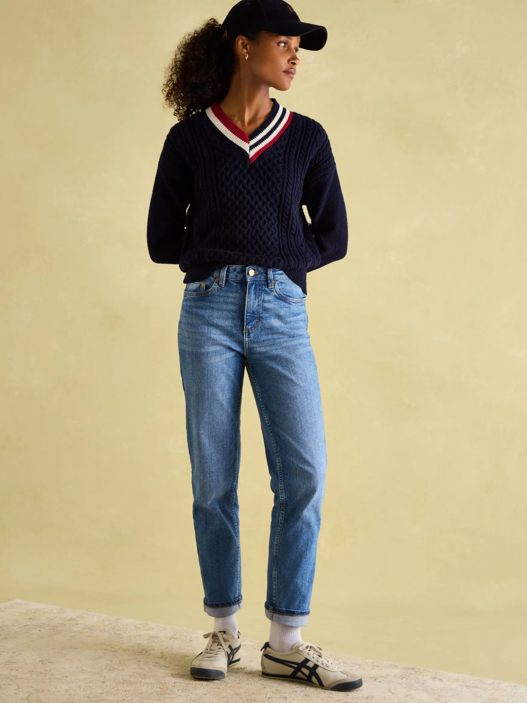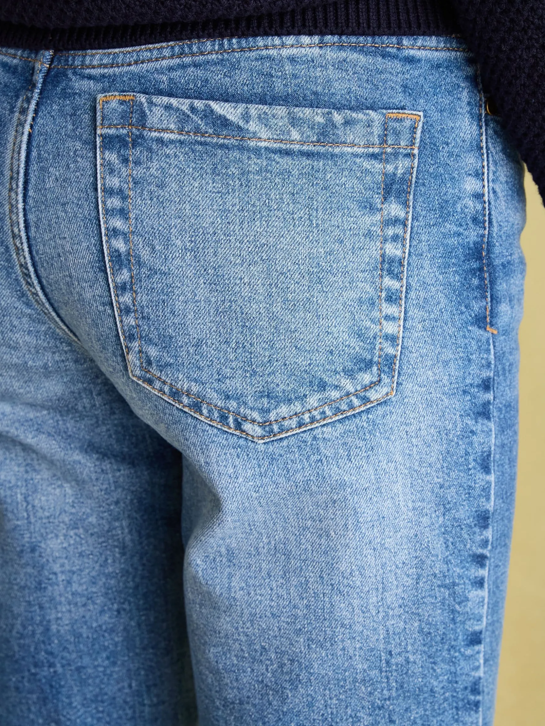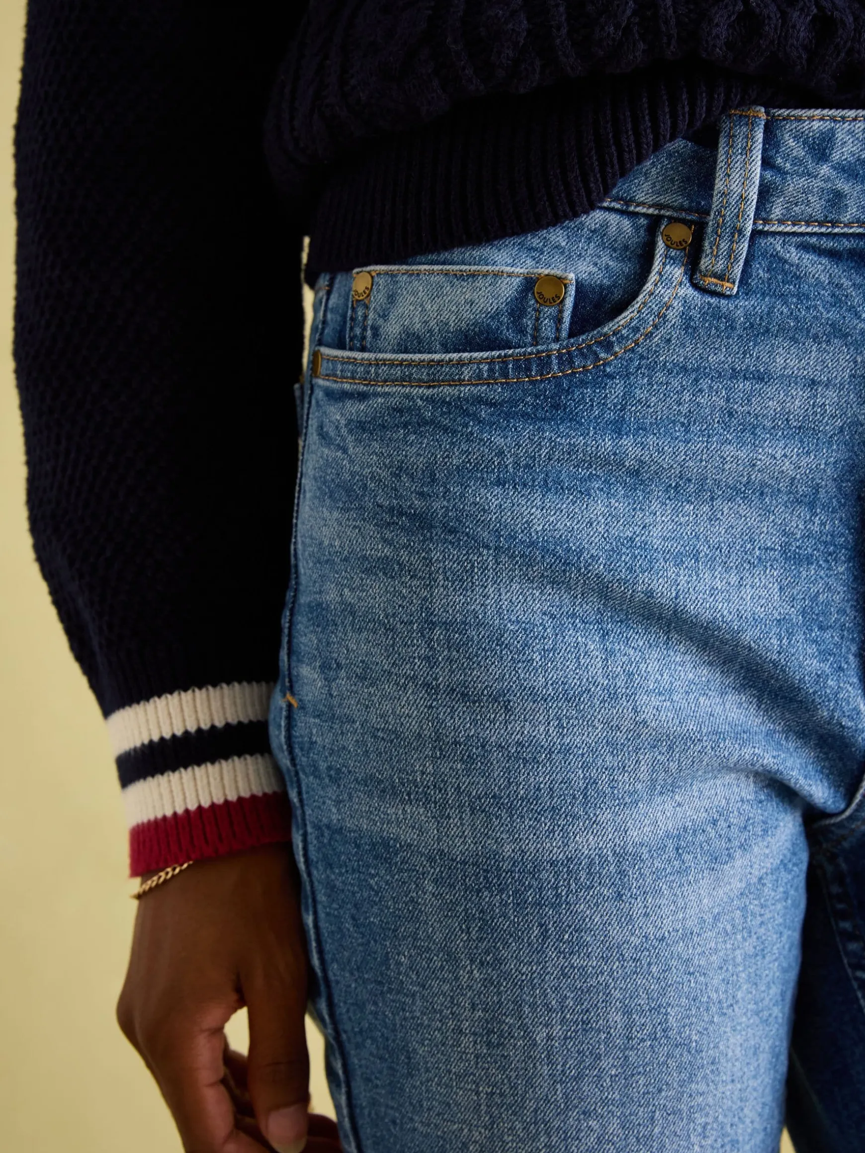 Our jeans have been meticulously designed to ensure your everyday staples not only look the part but feel it too. These have a mid-rise waist and a straight cut through the leg that is flattering yet comfortable. We’ve sourced our best-ever denim which has a soft feel and will ensure they’re an enduring part of your wardrobe. To give them more movement there is added stretch in the fabric (farewell stiff-feeling jeans) and the hems can be rolled up or down, however you fancy. They’re finished with the traditional five-pocket styling, belt loops and a zip fly fastening. Finally, if you take a cheeky peek to the rear, you’ll find a leather-branded Joules tab at the waistband. Straight leg Mid-rise waist Soft feel premium denim with stretch Traditional five-pocket styling Belt loops Turn-up cuffs Printed pocket bags Joules branded leather tab to the rear waistband Inside leg length: 74cm (based on UK size 12)