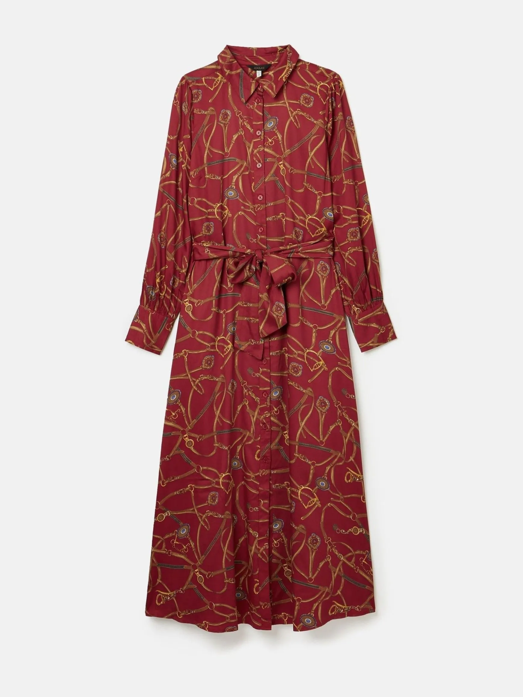 An elegant style with an equestrian twist, it’s time for your wardrobe to meet the Penelope dress. It’s designed in a classic shirt style with a button down fastening, collar and long sleeves with button cuffs. The belt not only allows you to cinch it in at the waist for a flattering look, but its detachable function means it can be worn in different ways. It falls to a midaxi length in an a-line shape which looks great teamed with any footwear from pumps and loafers to boots in the winter. The bridle print which adorns it makes a statement and is one that will transcend the seasons. Shirt dress. Midaxi length. Button down fastening. A-line shape. Collar. Long sleeves with button cuffs. Detachable belt. Buttons in the side seams. Equestrian-inspired bridle print.