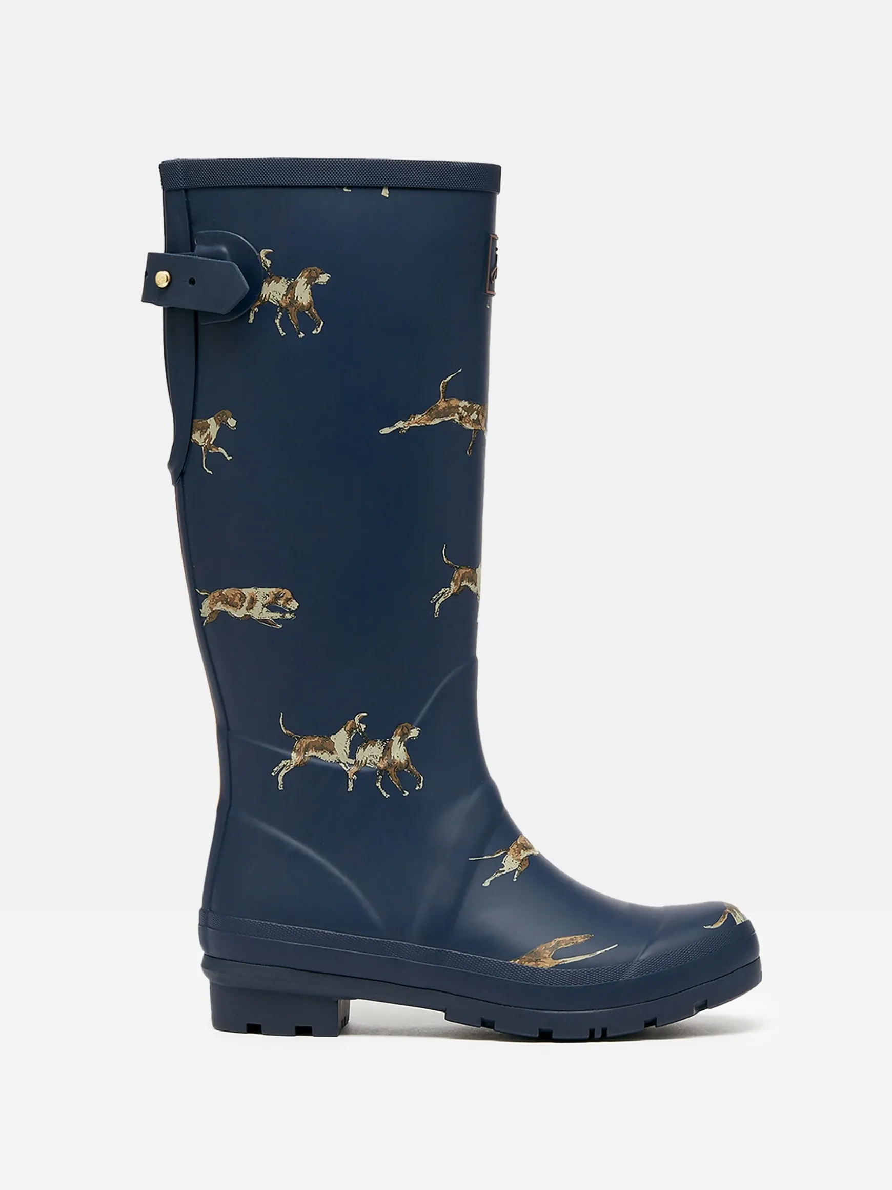 Printed Navy Blue Dog Print Adjustable Tall Wellies