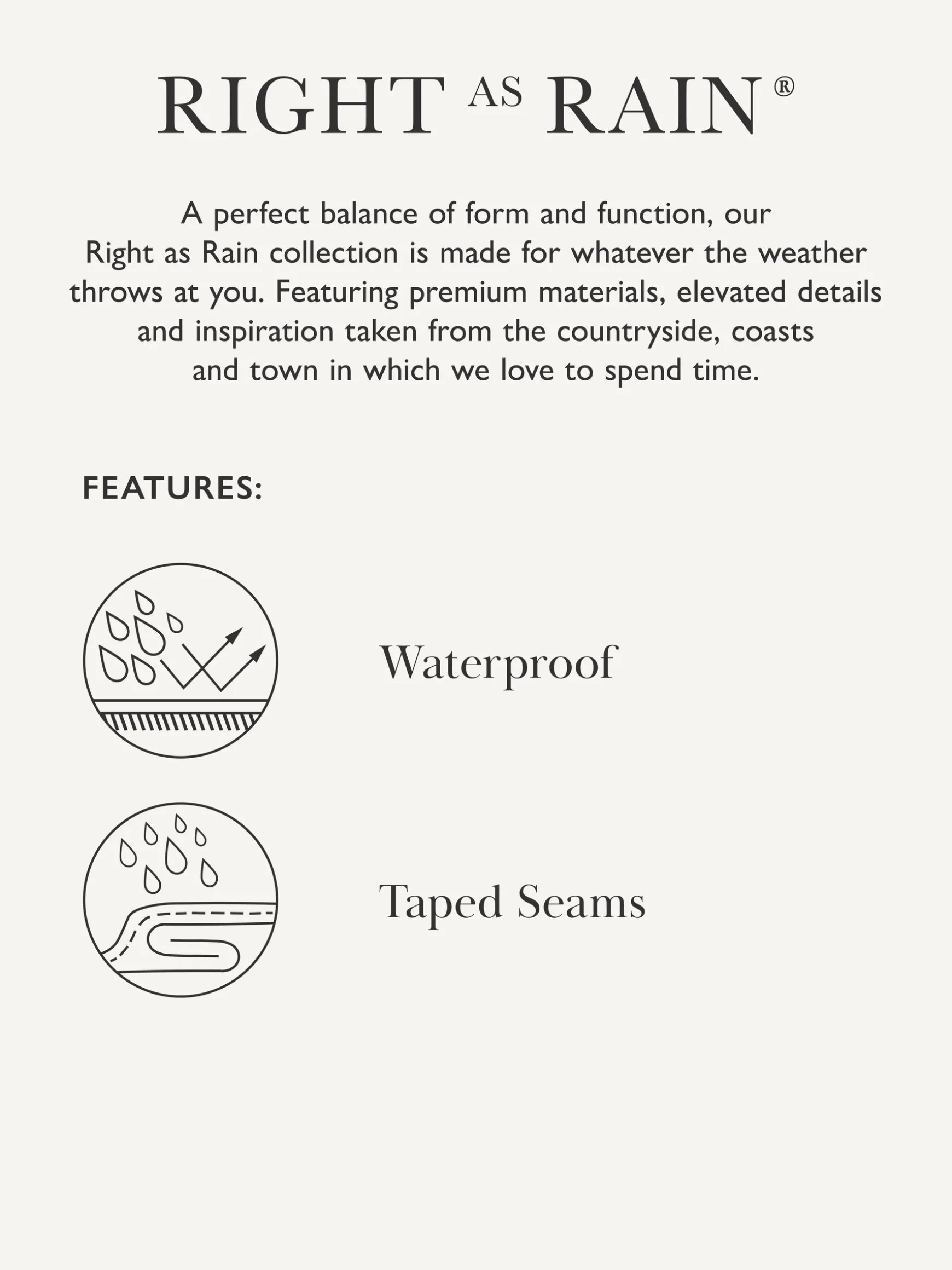 The Sandford is the kind of coat that will keep you dry while allowing you to maintain a smart casual appearance. With a straight fit through the body and a concealed button fastening, it has a clean, unfussy look that will withstand the test of time. It’s waterproof with taped seams, has adjustable cuffs for the perfect fit and a back vent for freer movement. Well considered details such as the breathable eyelets under the arms, the corduroy collar, side pockets with corduroy trims and a checked lining are all a testament to its quality. This is a coat you’ll rely on forever. Waterproof with taped seams. Concealed button placket. Corduroy collar with throat latch detail. Adjustable cuffs with button fastenings. Checked lining. Side pockets with corduroy trim. Back vent. Breathable eyelets under the arms. Internal pocket
