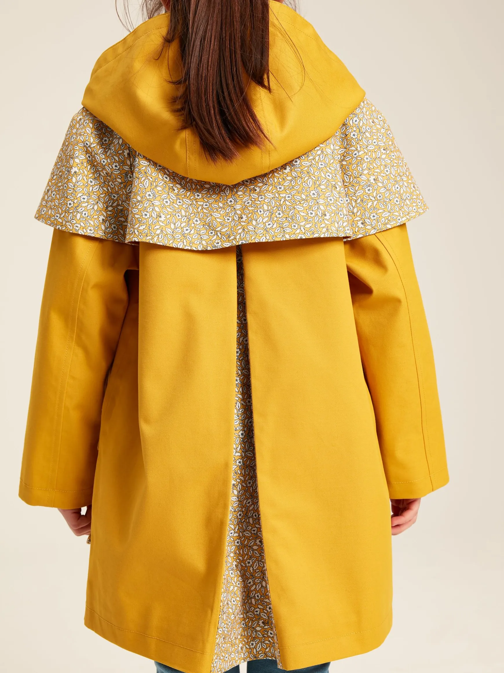 When it comes to rainwear for your little one, invest in the best. The Seacombe is both practical and stylish with a waterproof fabric finish and taped seams for supreme coverage. This enduring piece is crafted from quality cotton and has an A-line shape with room for layering beneath it and a hood with a funnel neck so the brolly can be left at home. It fastens via a concealed zip and popper placket, has two dual central bellow pockets for keeping all their very important treasures in and features a breathable twill lining. Now the practical stuff is out of the way, let’s talk about details that will delight you. A printed fixed cape hugs the shoulders adding a charming touch to the piece, with the same print reflected in the pleated detailing to the back of the coat and internal cuff lining. A coat like this deserves to be loved for a long time, so when they have grown out of it, pass it on to other rain-loving little ones. Cotton. Waterproof with taped seams. Printed fixed cape to the shoulders. A-line shape. Concealed zip and popper fastening. Hood. Dual entry bellow pockets with popper fastenings. Pleated printed back vent. Printed internal cuffs. Hare screen print to the hem.