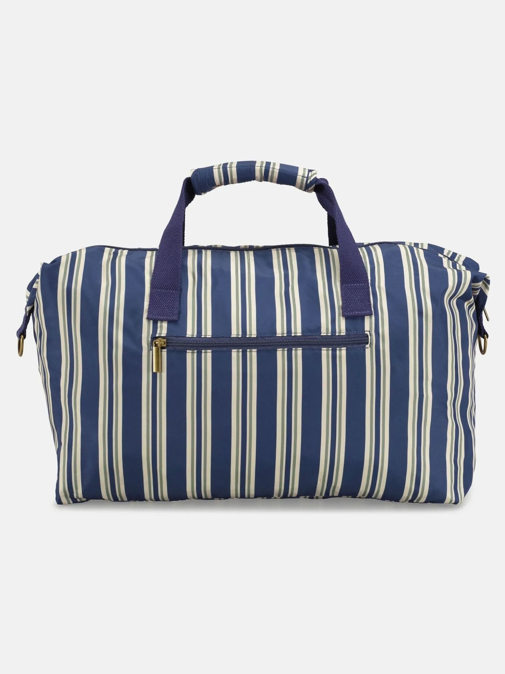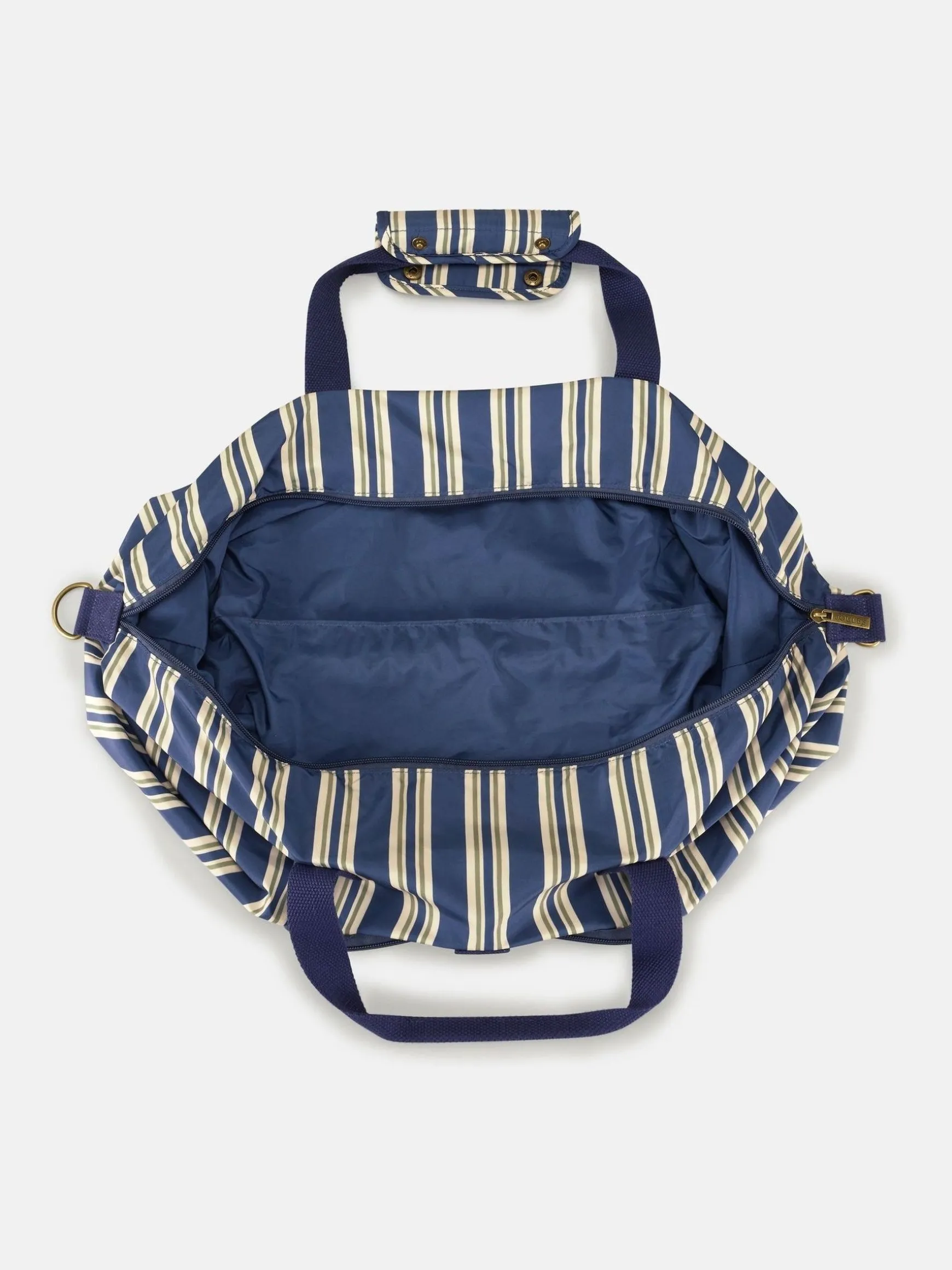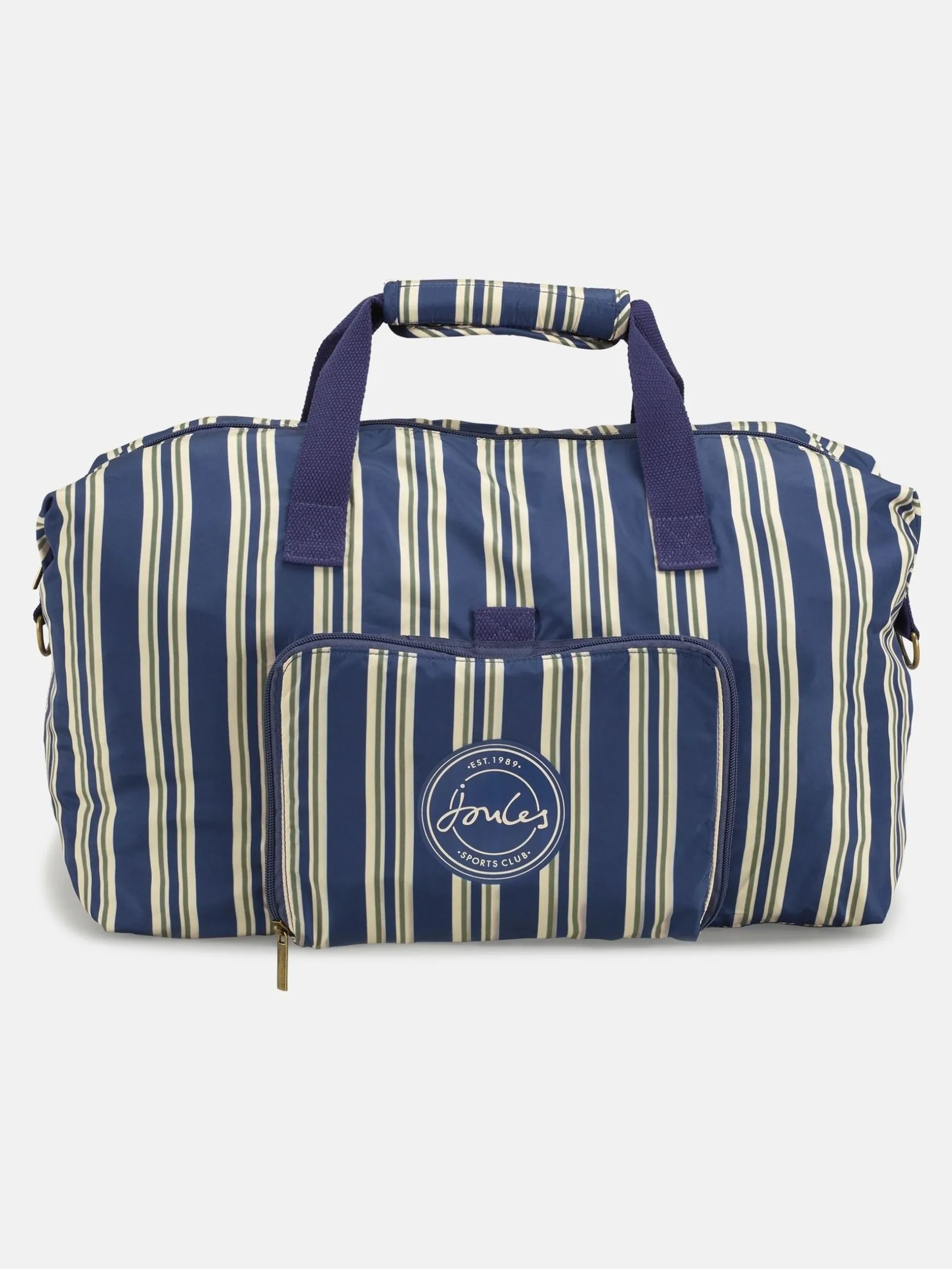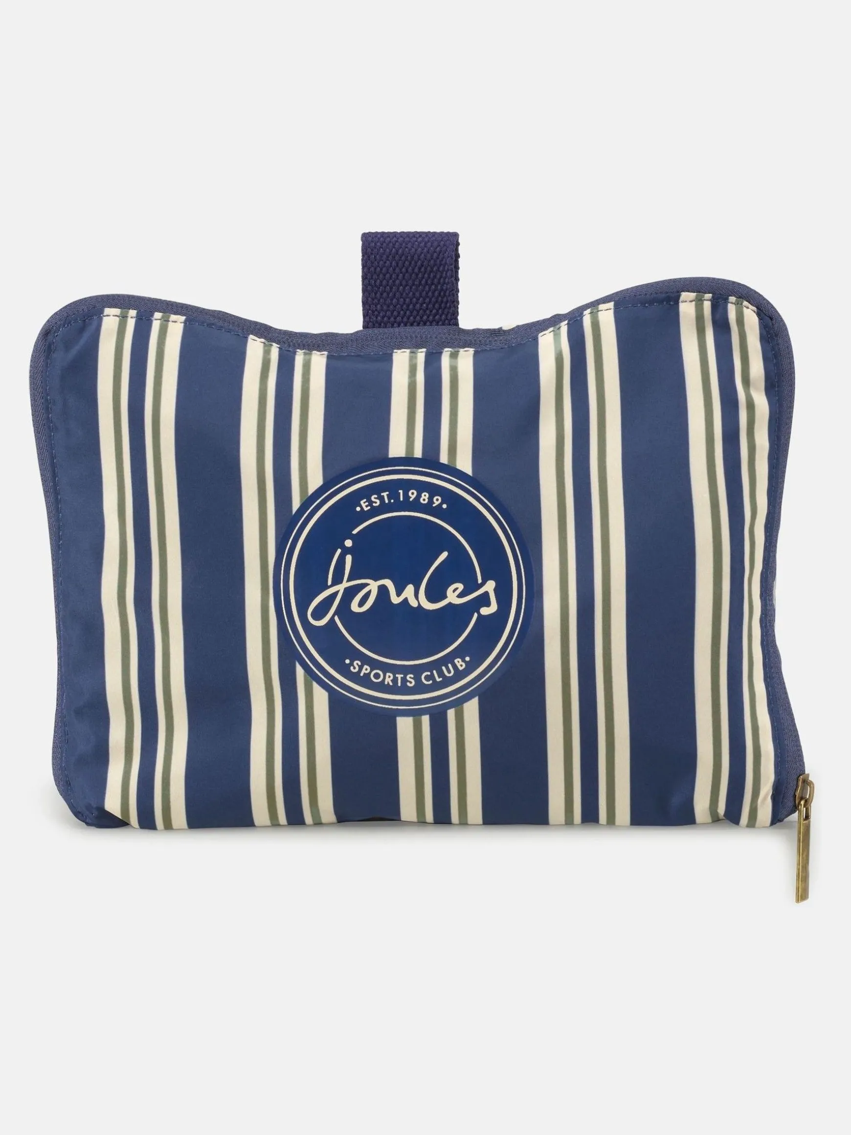 The Joules packable duffle bag is designed with both practicality and style in mind. This nifty accessory can be used for anything from carrying sports’ kit, to holding your weekend wardrobe. The striped design and ‘Sports Club’ emblem to the front gives it a preppy look while remaining timeless through the navy, green and cream colour palette. Its packable function means it won’t take up space when it’s unused and can go anywhere with ease. The bag features a main zipped compartment with an additional front pocket (which it packs away into) and is secured with zip fastenings. Two handles are fixed to the bag to create a holdall style and a detachable crossbody strap with a padded comfort pad offers another way to carry it. Pick up the matching packable backpack for a complete look. 36 x 58 x 16cm. Packable function. Fixed carry handles. Detachable cross body strap with padded shoulder patch. Zipped main compartment. Zipped front pocket. Joules Sports Club emblem to the front