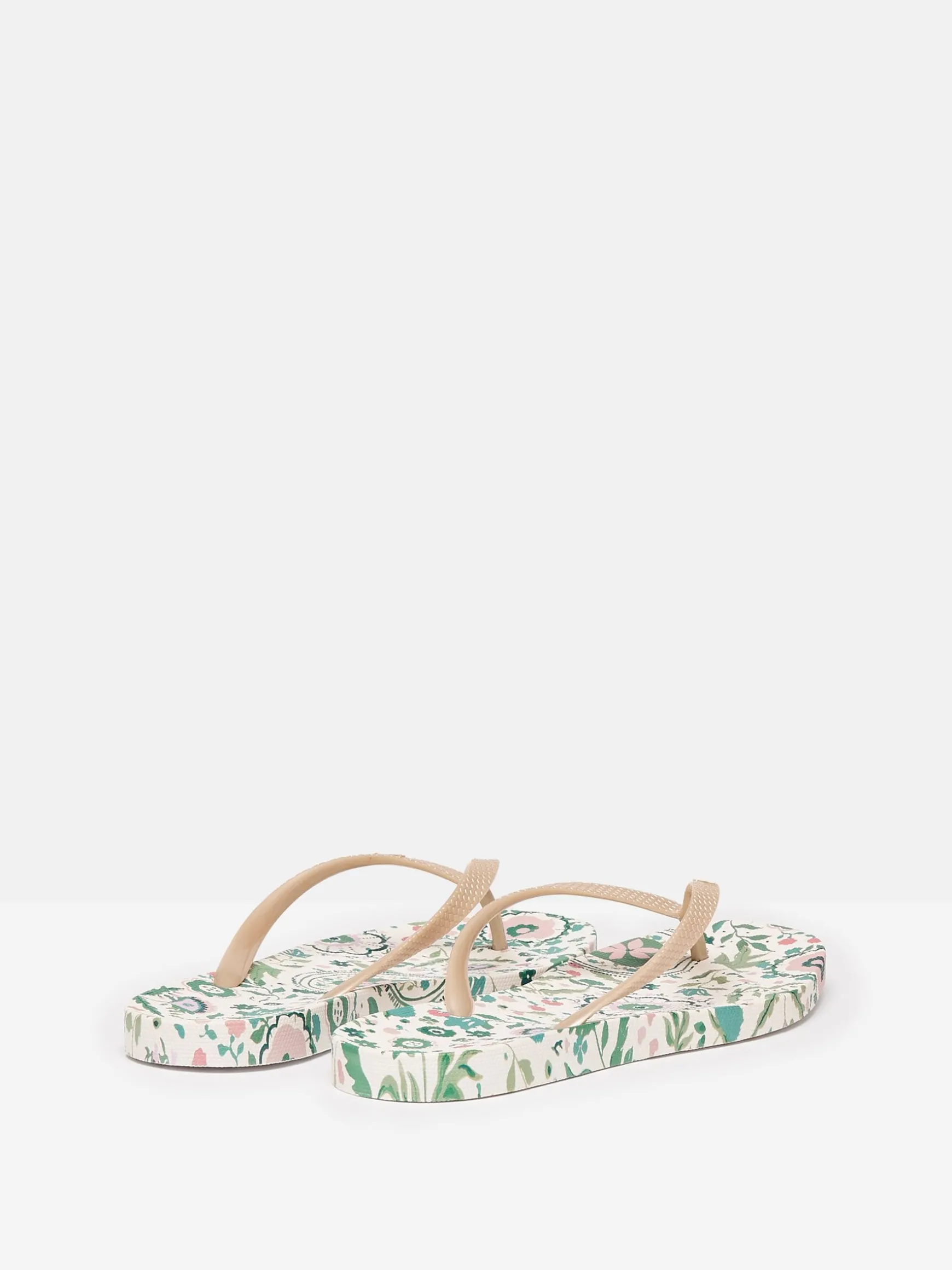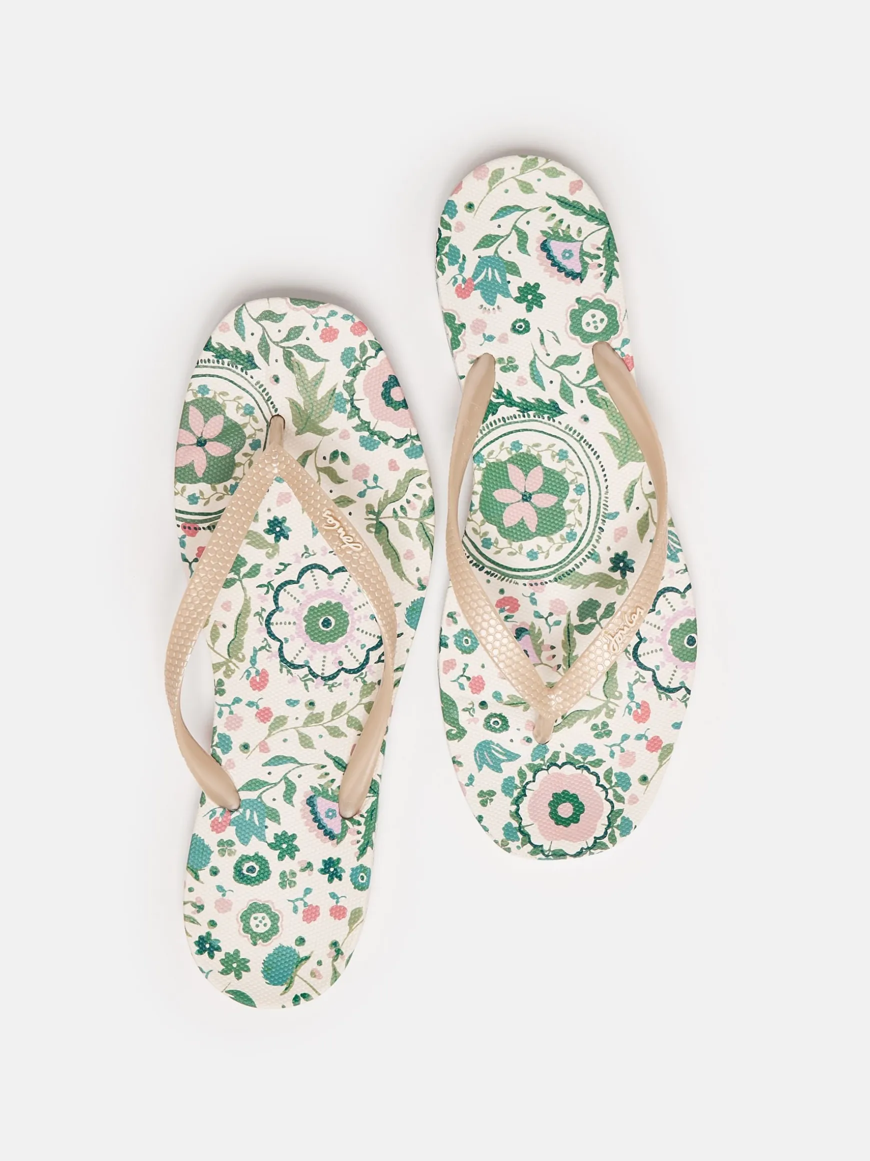 Flip flops are the sign that summer has arrived and will become your most-worn footwear for the season. So, why not invest in ones you can count on? The Sunvale flip flops are made from a flexible and durable EVA for comfort and feature a beautiful hand-drawn print. The classic rubber thong has a honeycomb texture and branded detailing. EVA footbed. Rubber thong with honeycomb texture. Hand-drawn print. Joules branding to the thong.