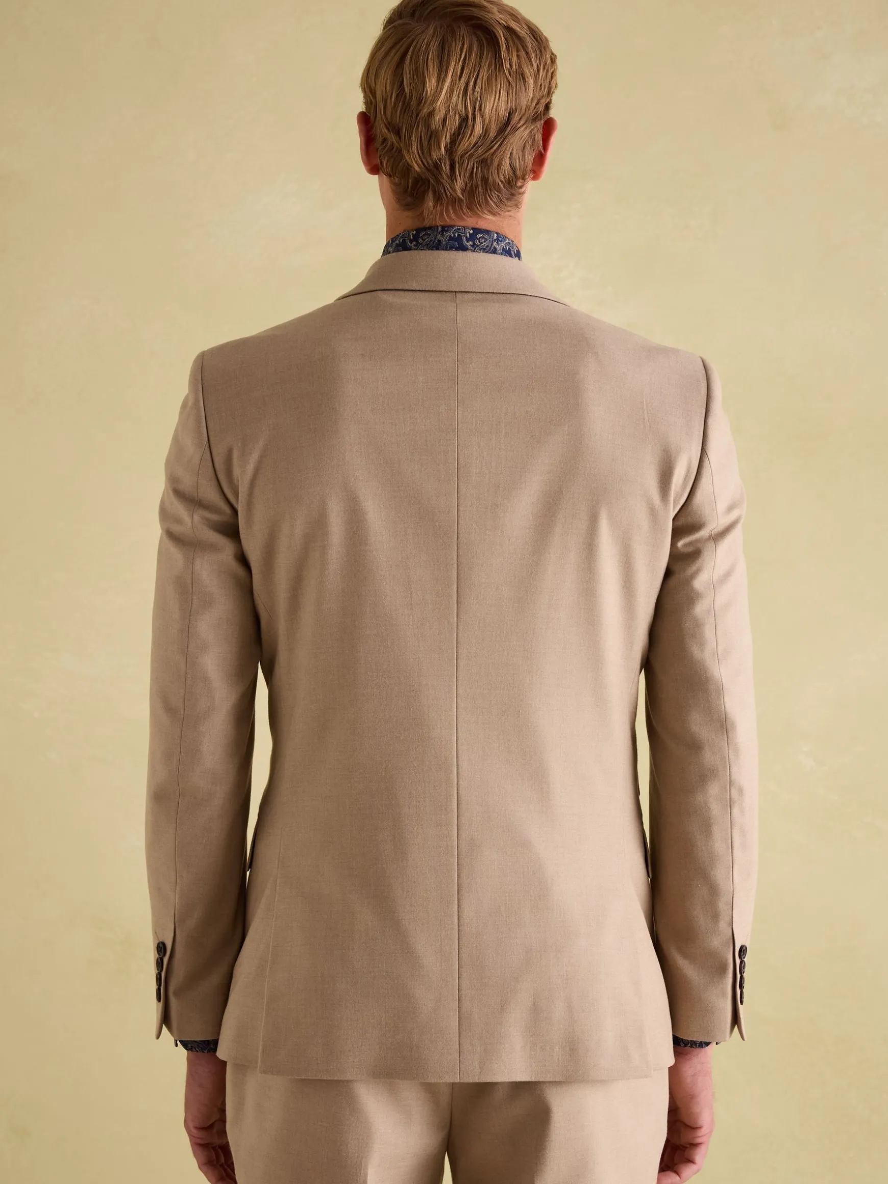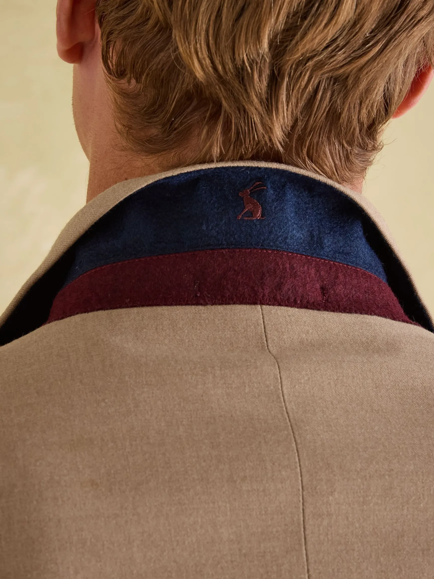 Show up to any event in style with this suit jacket. A timeless classic, it’s cut from a brushed twill fabric with a soft hand-feel finish and comes in three staple colours. The slim fit keeps your look contemporary, while remaining comfortable and the printed satin lining makes a suave addition. It has a notch lapel collar complete with removable Joules hare pin, a two button fastening to the front and four faux horn kissing buttons to the cuffs. The chest pocket features a stitched-in satin pocket square that can be worn in or out and matches back to the printed lining. The inside is complete with plenty of slip-in pockets for your wallet, phone and keys. So, whether it’s work or play, this is a jacket that can do both in well-dressed style. nn- Slim fitn- Brushed twill fabricn- Soft hand-feel finishn- Single breastedn- Notch lapel collar with detachable Joules hare pinn- Printed satin liningn- Two Faux horn buttons to the frontn- Kissing buttons to the cuffsn- Single chest pocket with pull-out pocket square (to match the lining)n- Hidden branded detailing under the collar n- Non-functional pockets to the front