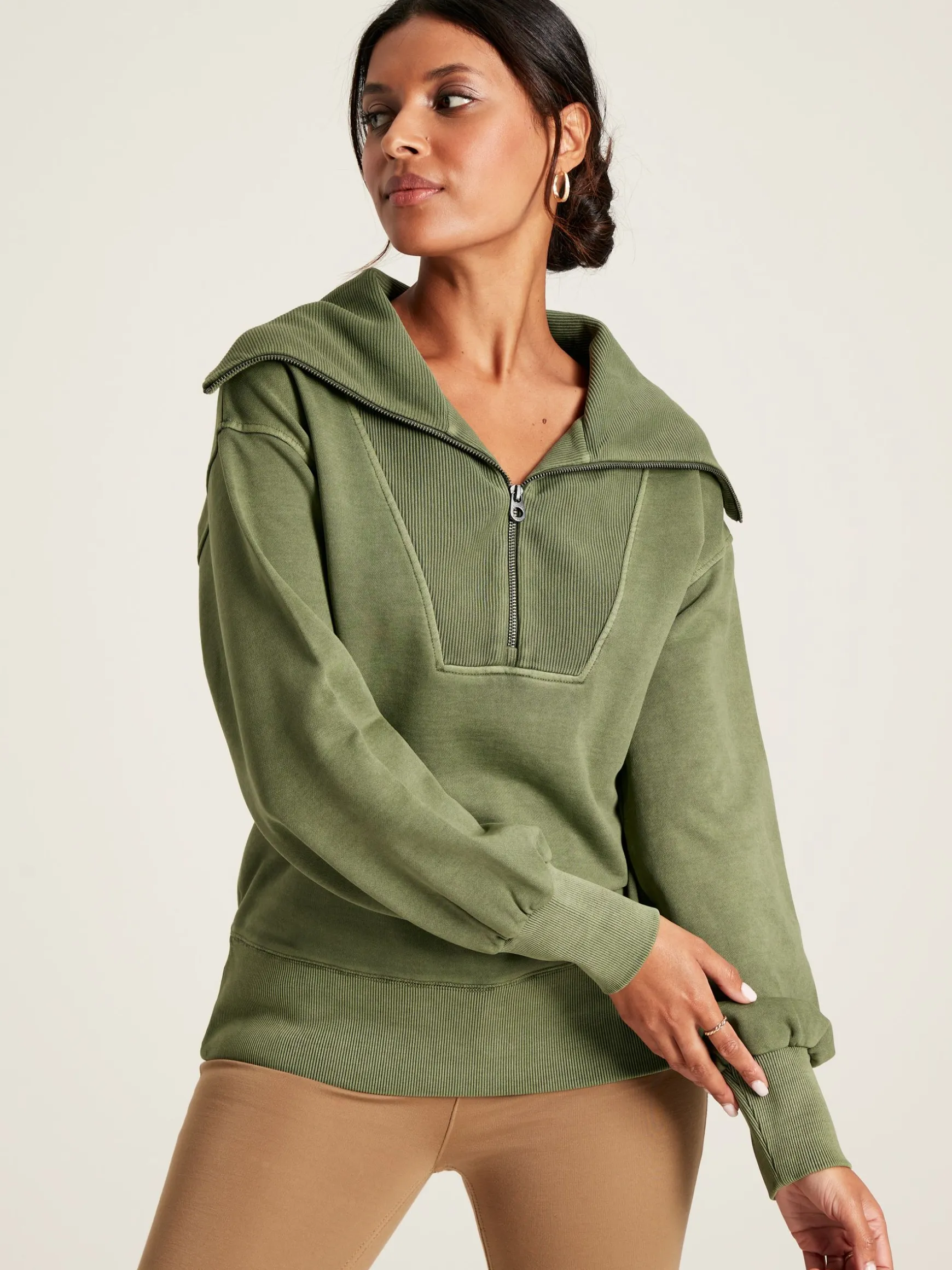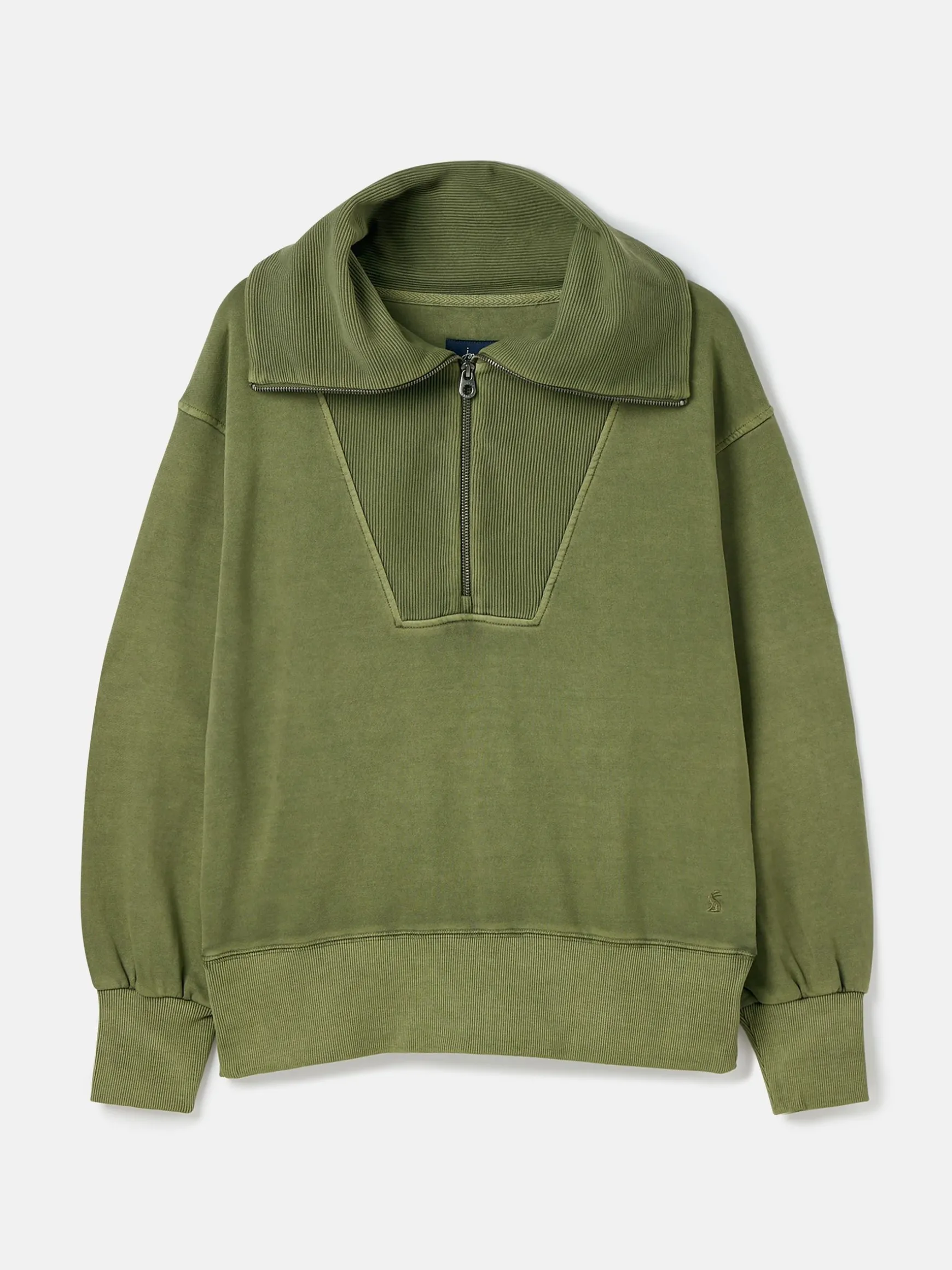 The Tia sweatshirt combines comfort and effortless style. Its half zip fastening makes it easy to throw on, while the soft cotton blend ensures you feel great wearing it. The oversized fit to the body and ribbed ottoman collar gives it a contemporary feel and makes room for layers underneath. Wide bell sleeves further add to the laid-back look and the deep ribbed hem and cuffs offer the classic sweatshirt feel. It’s finished with a Joules embroidered hare to the hem. Cotton. Long sleeves. Oversized fit for a contemporary look. Half zip fastening. Oversized collar crafted from ribbed ottoman fabric. Wide, bell sleeves. Deep ribbed cuffs and hem. Joules embroidered hare to the hem.