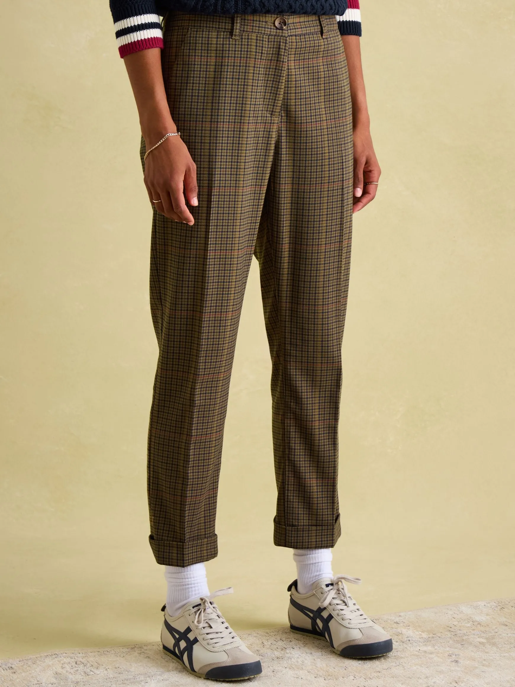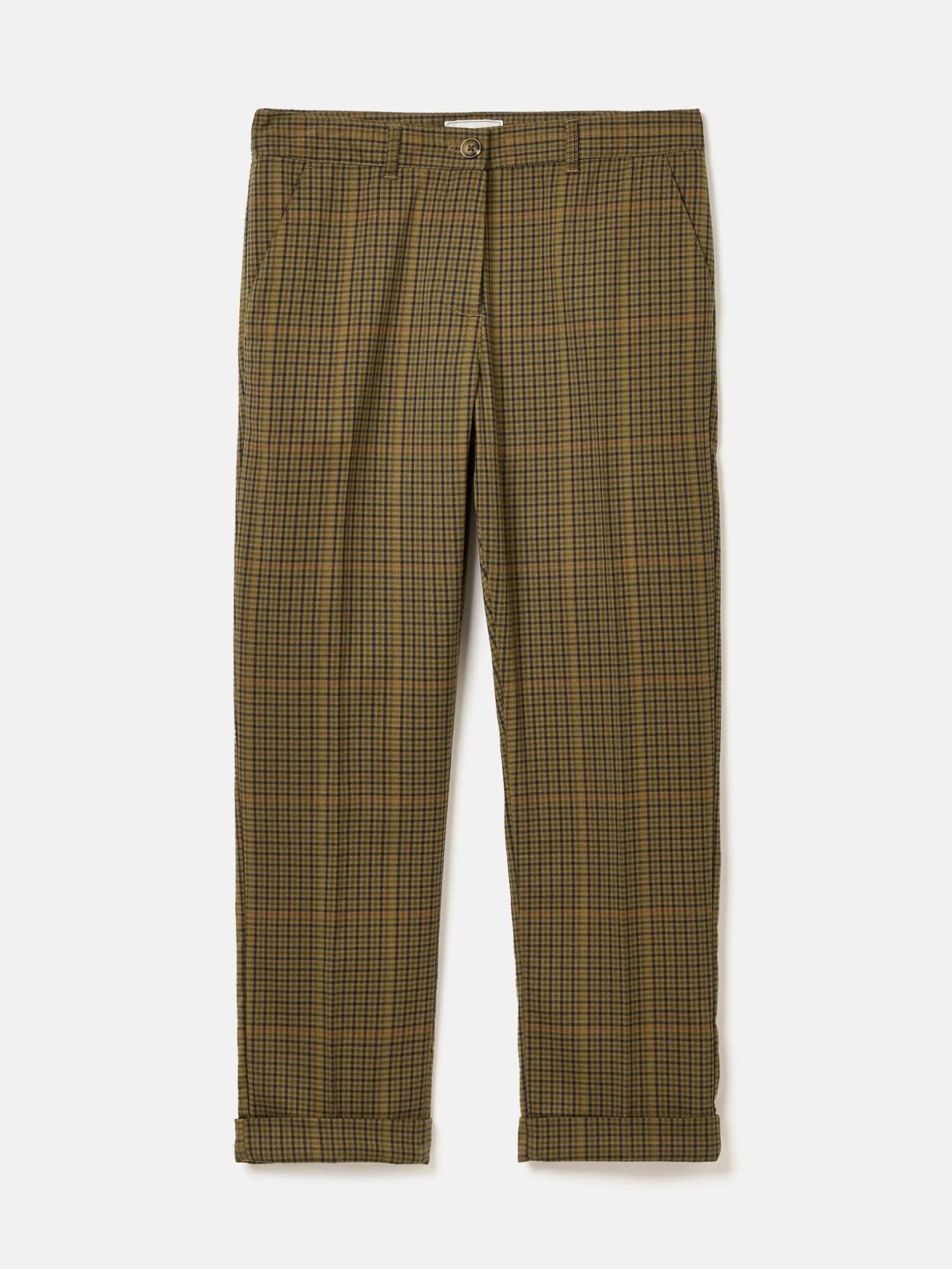 Combining a heritage look with a flattering fit, the Ada trousers are perfect for embracing your country side this season. They feature a check pattern which uses a palette of traditional browns and greens. The slim fit through the leg, turn up cuffs and mid-rise waist ensures they feel as good on as they look. Functional details include a zip fastening with faux horn button, belt loops, two side pockets and two back welt pockets with button fastenings. Slim fit through the leg. Mid-rise waist. Zip and faux horn button fastening. Turn up cuffs. Two side pockets and two back welt pockets with button fastenings. Belt loops. Heritage check. Inside leg length: 67cm (based on a UK size 12)