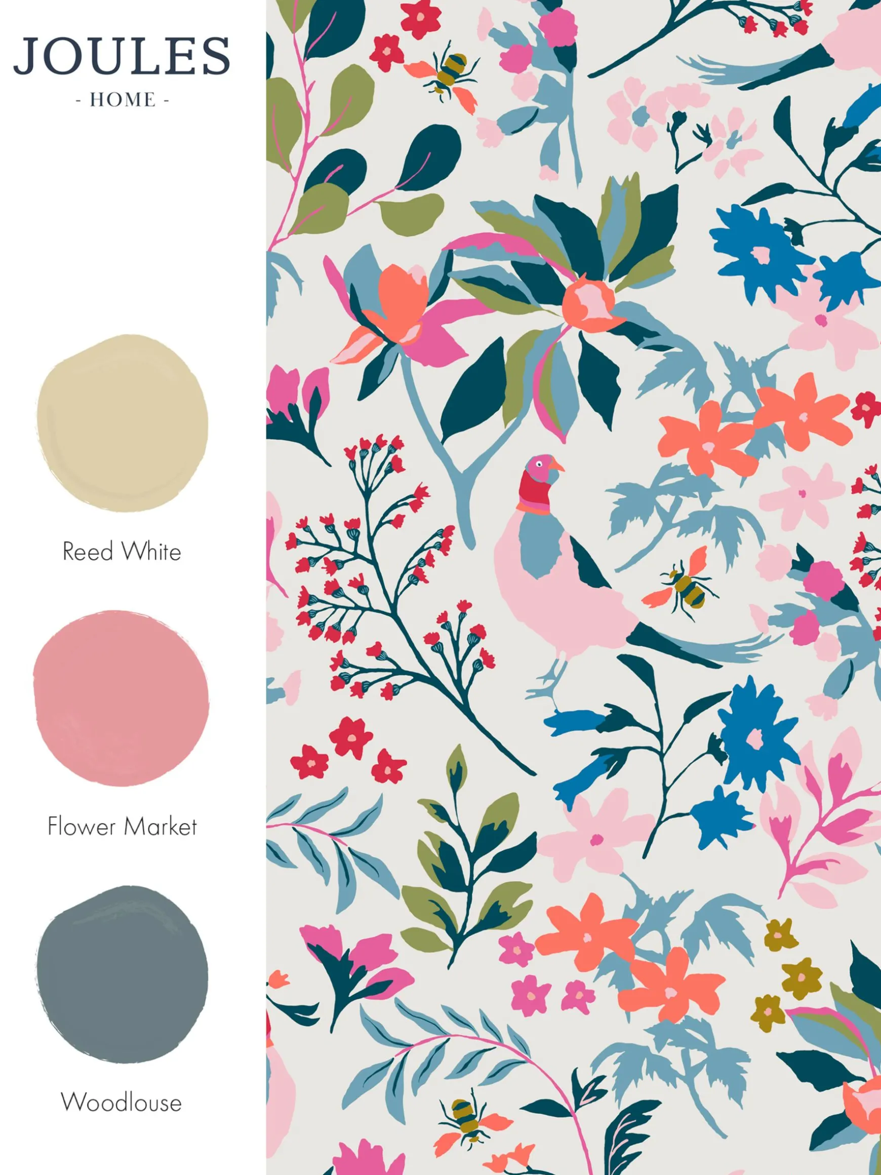 Give your home a classic heritage look and feel with a showcase of nature at its most contemporary. This stunning design combines crisp, modern foliage, sprigs and flowers intertwined with characterful pheasants and bees. Perfect for bringing the outside in, this charming wallpaper design has a fun colour palette of bright, summery tones beautifully set upon a fresh antique creme background. Printed on a matt substrate for a contemporary look and feel. This wallpaper is also paste the wall, making it easy to hang. Pattern Repeat: 64cm, Drop Type: Offset.