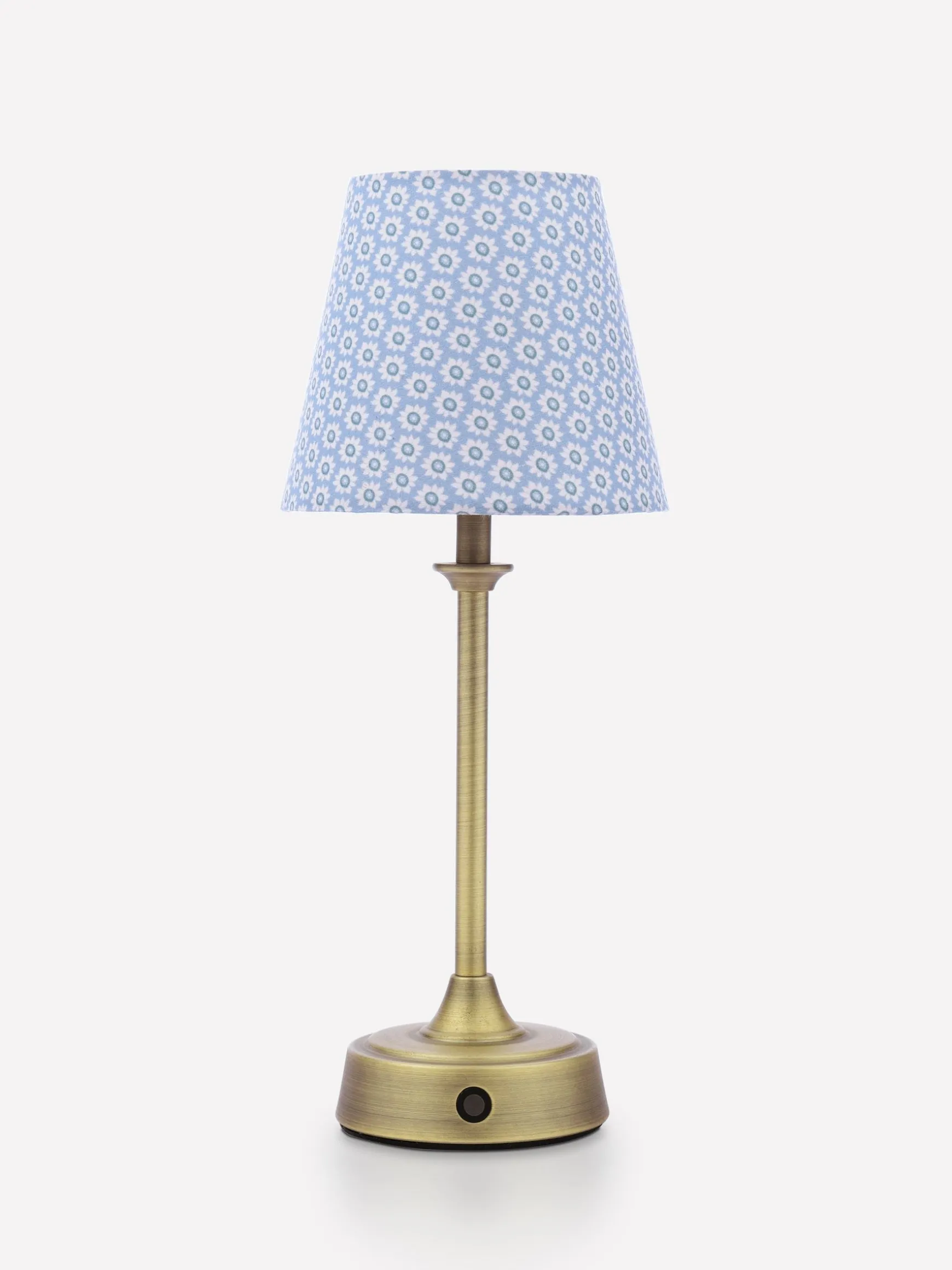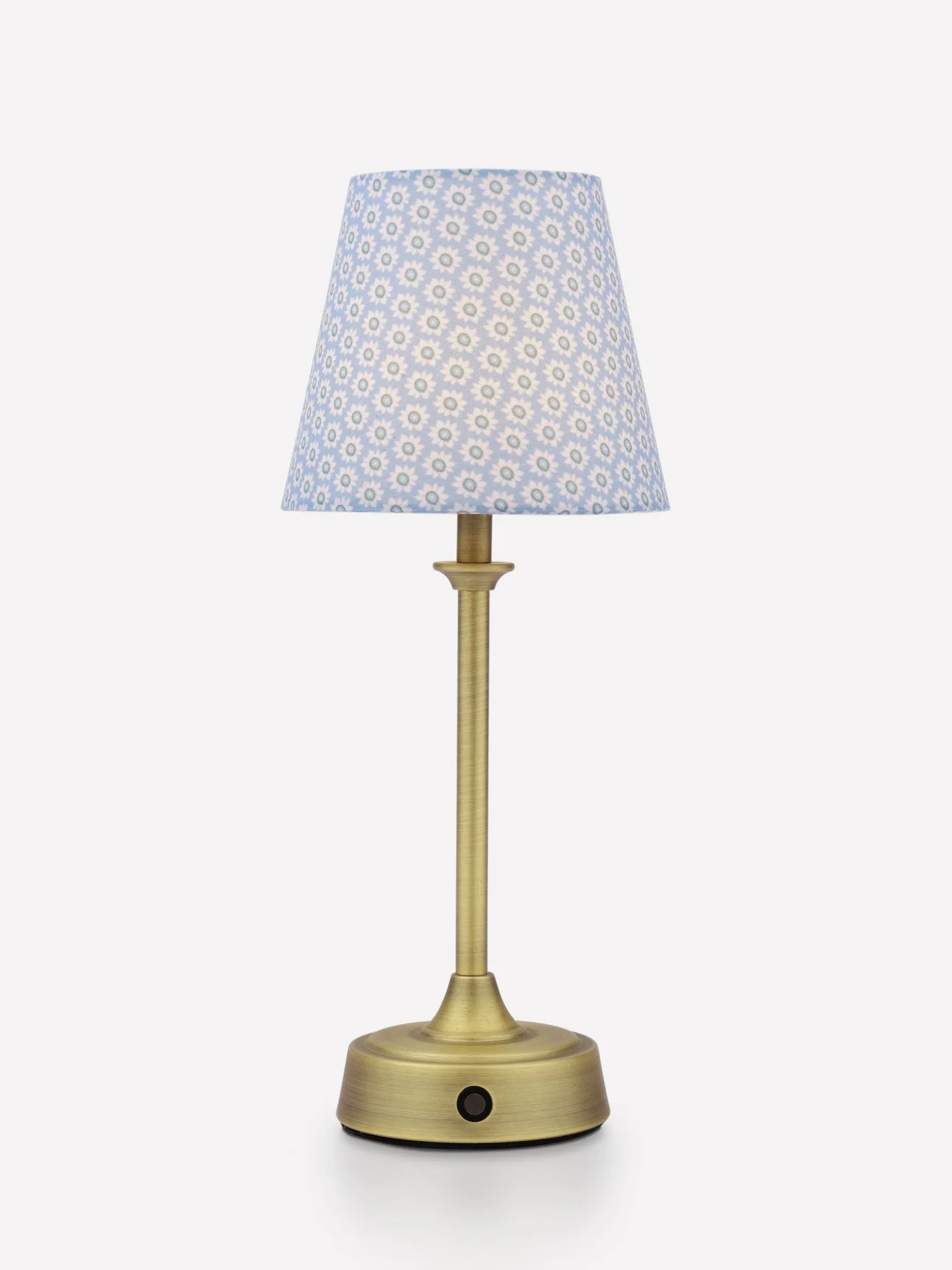 With a print that immediately draws attention, the Apsley lamp is a bold and beautiful interior choice. Its re-chargeable LED design means it is wire-free offering you the opportunity to quite literally light up any space in the home, giving you full creative freedom. The stand and base are made from a chic matte antique brass that suits all homes and has a classic tapered lamp shade adorned with a hand-drawn floral print. Picture it on your desk providing the light while you work on that novel you always said you’d write.nnRe-chargeable with a plug-in adaptor nMatte antique brassnPrinted tapered lamp shadenDi: 120mm x H.245mm