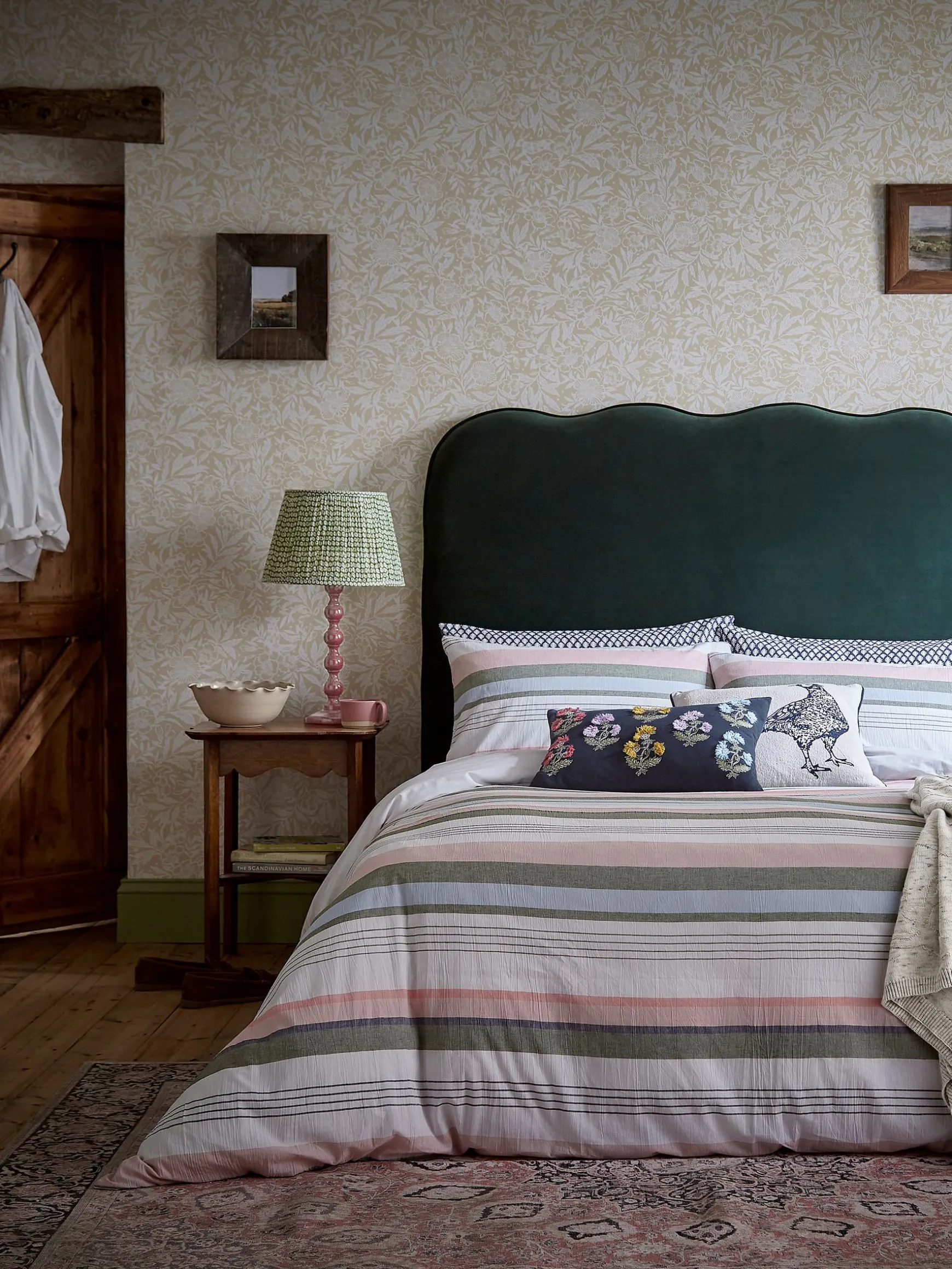 Bring a breath of fresh air into your bedroom with our beautiful Woven Stripe bedding set, reminiscent of sun-washed English country cottage décor with a subtle modern twist. The refreshingly muted colour palette makes this set so effortlessly timeless and liveable year after year. It comes with two matching Oxford pillowcases (single beds come with one) and can be complemented by additional standard pillowcases sold separately.
