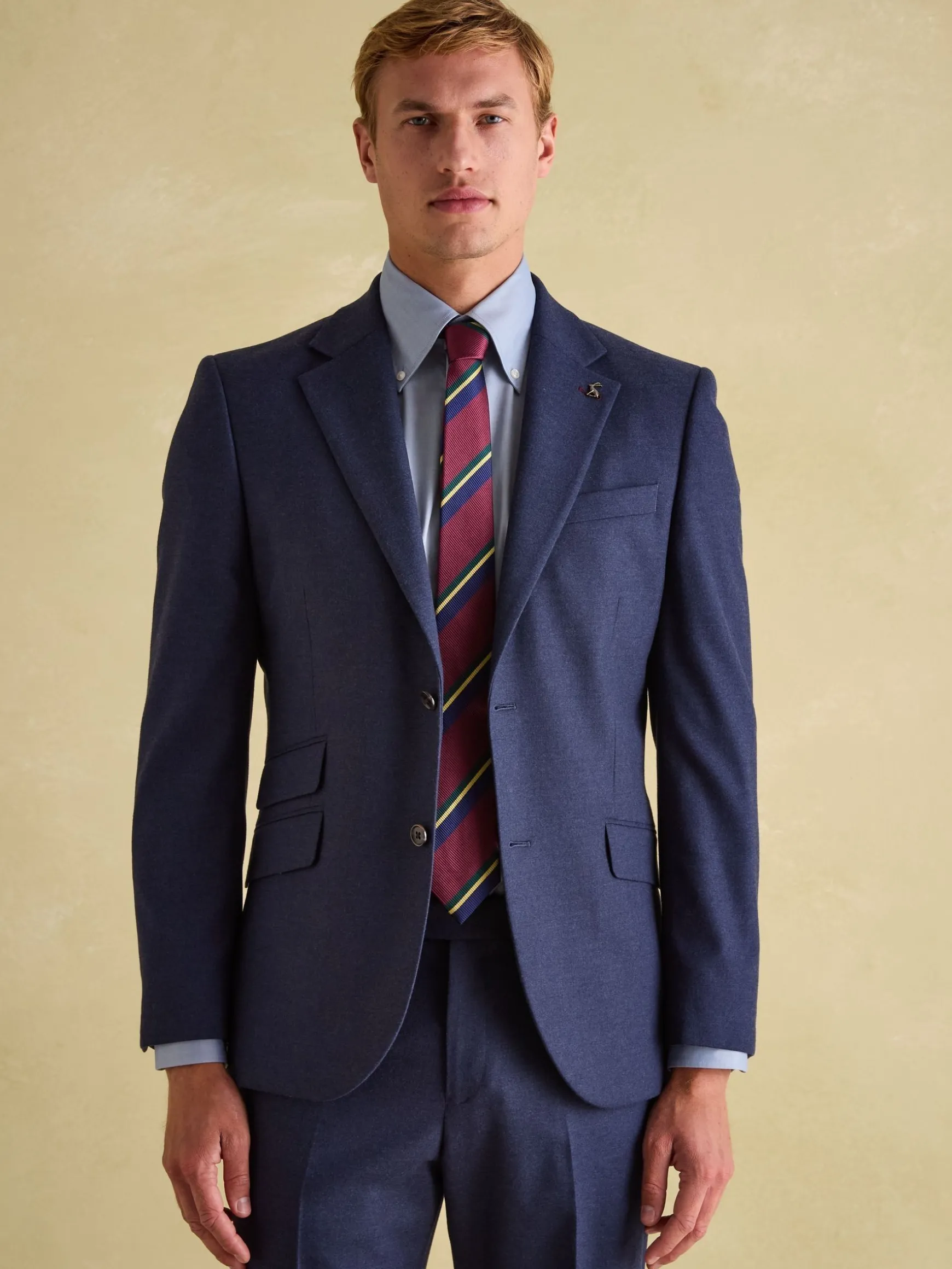 Show up to any event in style with this suit jacket. A timeless classic, it’s cut from a brushed twill fabric with a soft hand-feel finish and comes in three staple colours. The slim fit keeps your look contemporary, while remaining comfortable and the printed satin lining makes a suave addition. It has a notch lapel collar complete with removable Joules hare pin, a two button fastening to the front and four faux horn kissing buttons to the cuffs. The chest pocket features a stitched-in satin pocket square that can be worn in or out and matches back to the printed lining. The inside is complete with plenty of slip-in pockets for your wallet, phone and keys. So, whether it’s work or play, this is a jacket that can do both in well-dressed style. nn- Slim fitn- Brushed twill fabricn- Soft hand-feel finishn- Single breastedn- Notch lapel collar with detachable Joules hare pinn- Printed satin liningn- Two Faux horn buttons to the frontn- Kissing buttons to the cuffsn- Single chest pocket with pull-out pocket square (to match the lining)n- Hidden branded detailing under the collar n- Non-functional pockets to the front