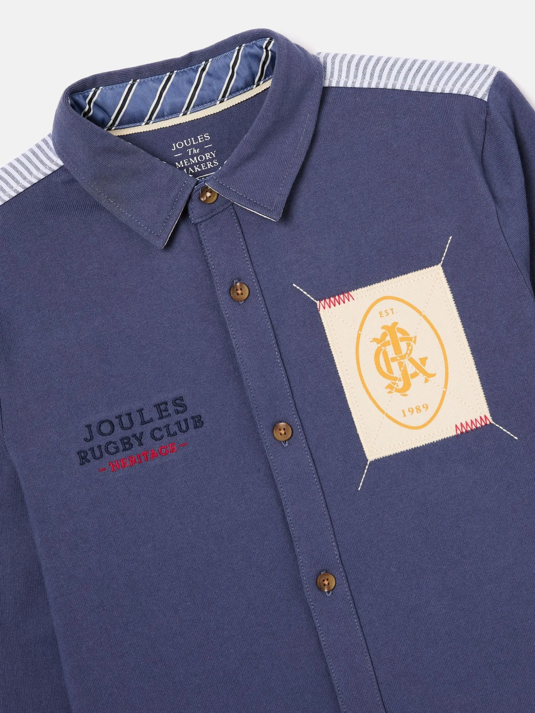 If your little chap wants to raise his game, then this is the shirt to choose. Crafted from 100% cotton and cut to a classic shape, it’s a style that will make sure he winning at parties and when out for dinner. A smart-casual classic with rugby-inspired embroideries and embellishments. This shirt has a level of attention to detail that is unrivalled. nn100% cottonnCurved hemnEmbroidery and embellishment detailnButton fastening