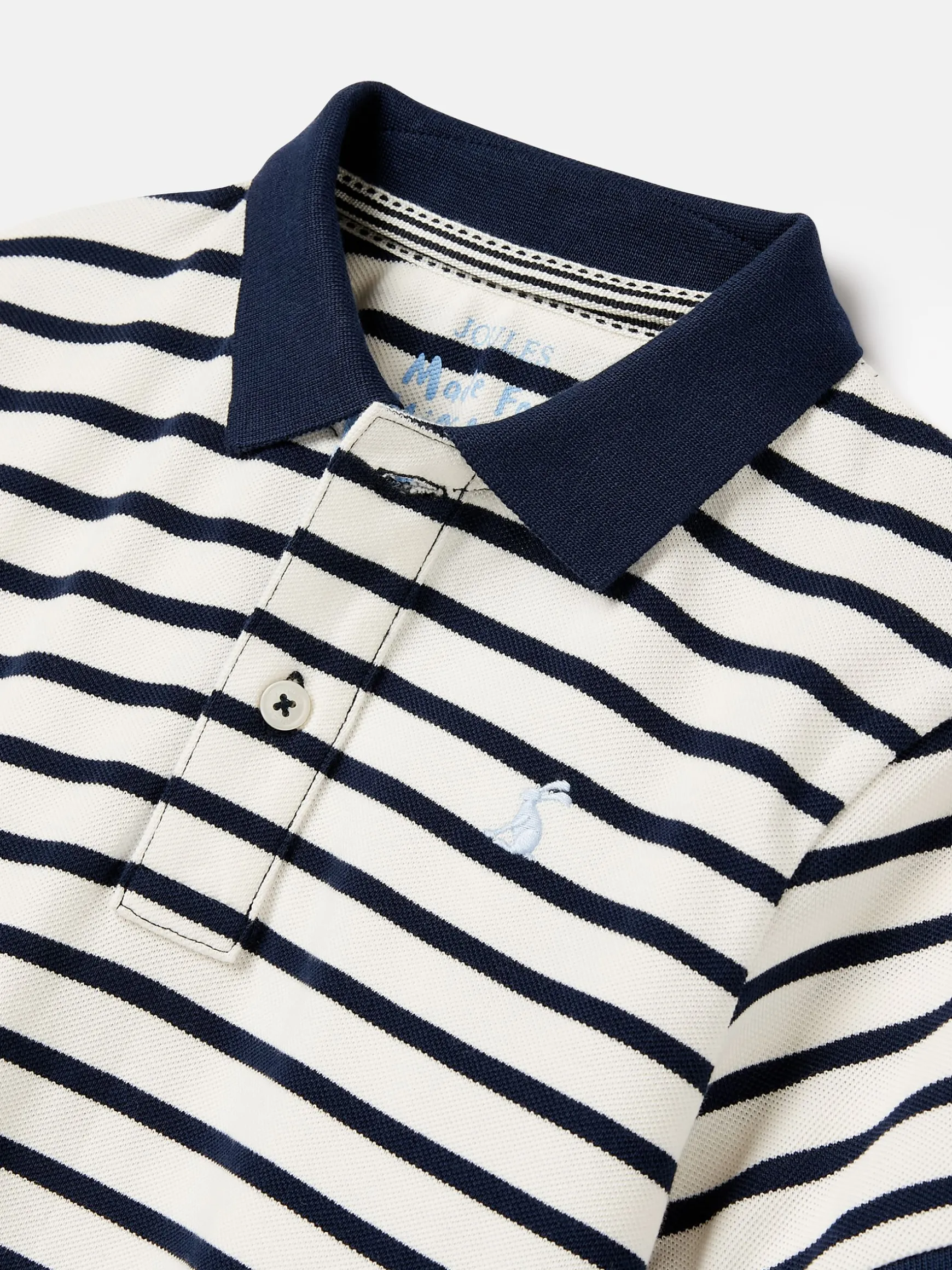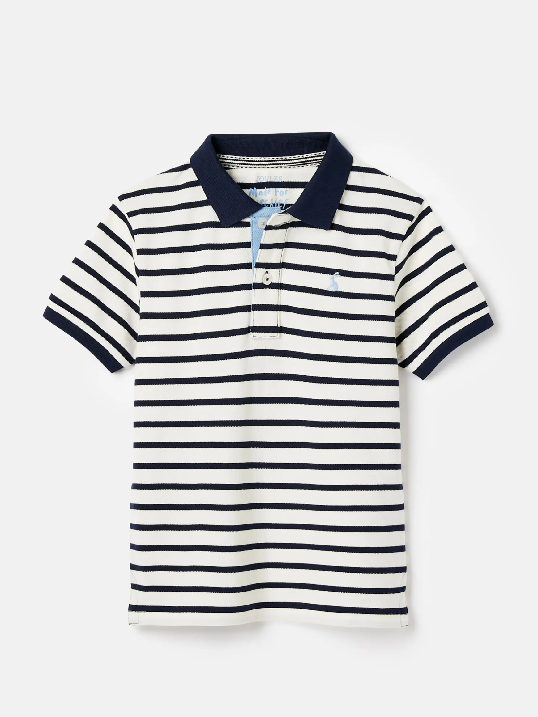 This season’s boys’ Filbert has a classic horizontal stripe with a contrast undercollar and internal cuff for cool pops of colour. It has all the things you’d look for in a polo too including a half-button placket, short sleeves and soft pique cotton fabric. This is a style that’s perfect for everything from tree climbing to family parties. Cotton pique fabric. Short sleeves. Button placket. Contrast undercollar and internal cuffs. Ribbed collar and cuffs. Horizontal stripes.
