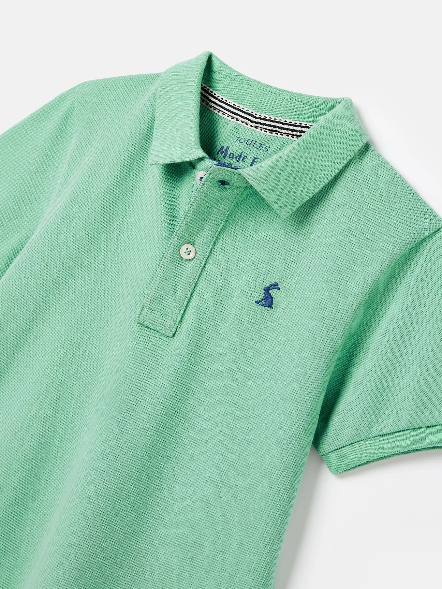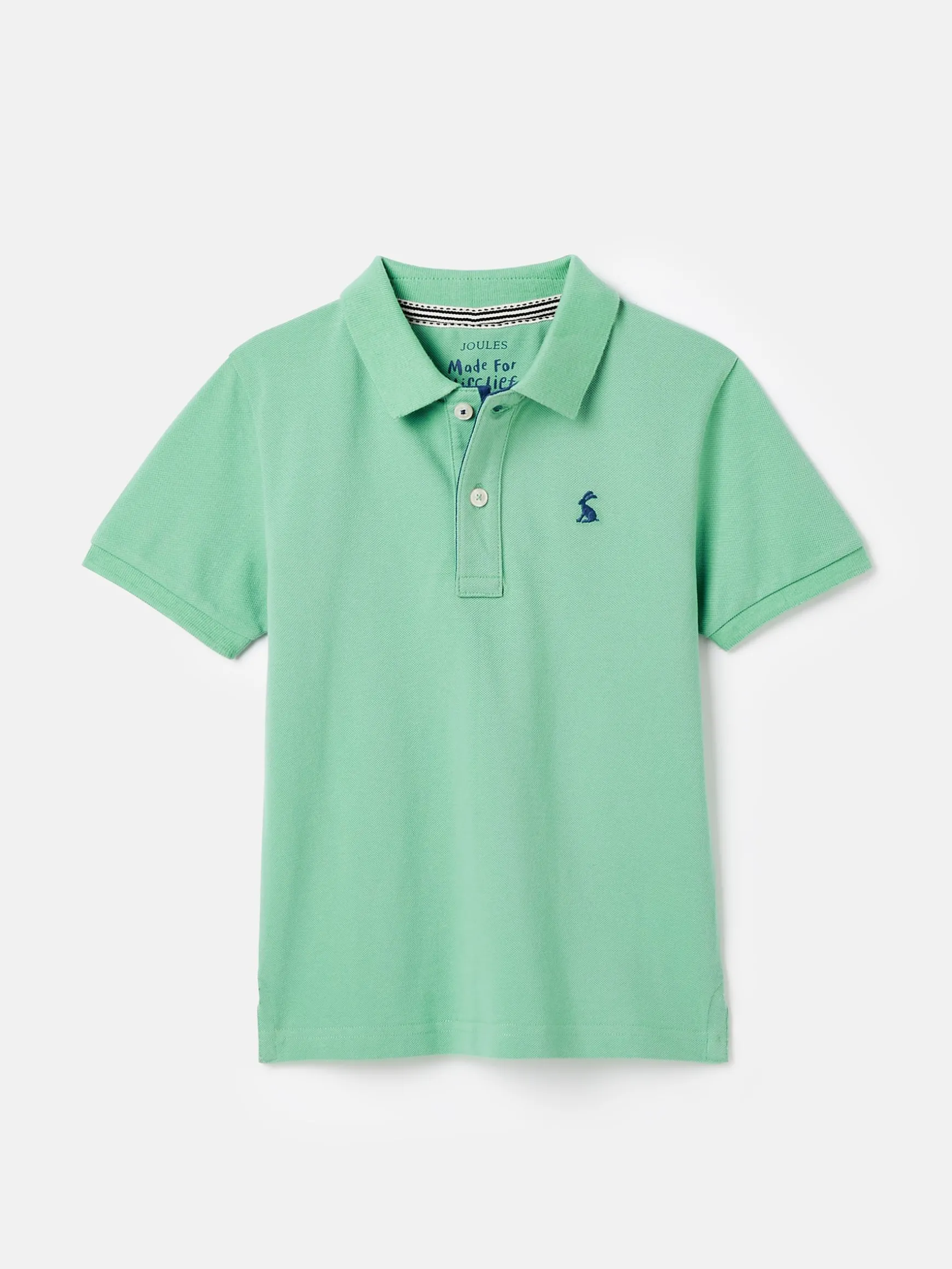 Inspired by our styles for grown-ups, this polo shirt is perfect for your little whippersnappers. It is made from a quality cotton pique fabric that will stand the test of time and can be handed down when they inevitably grow out of it. Traditional polo details include short sleeves with ribbed cuffs, a button placket, a collar and embroidery to the chest. It’s the contrast undercollar and branded details that make it distinctively Joules. The ideal style for garden gatherings and sports games on the lawn. Cotton pique. Short sleeves. Button placket. Contrast stripe undercollar. Embroidered hare to the chest.