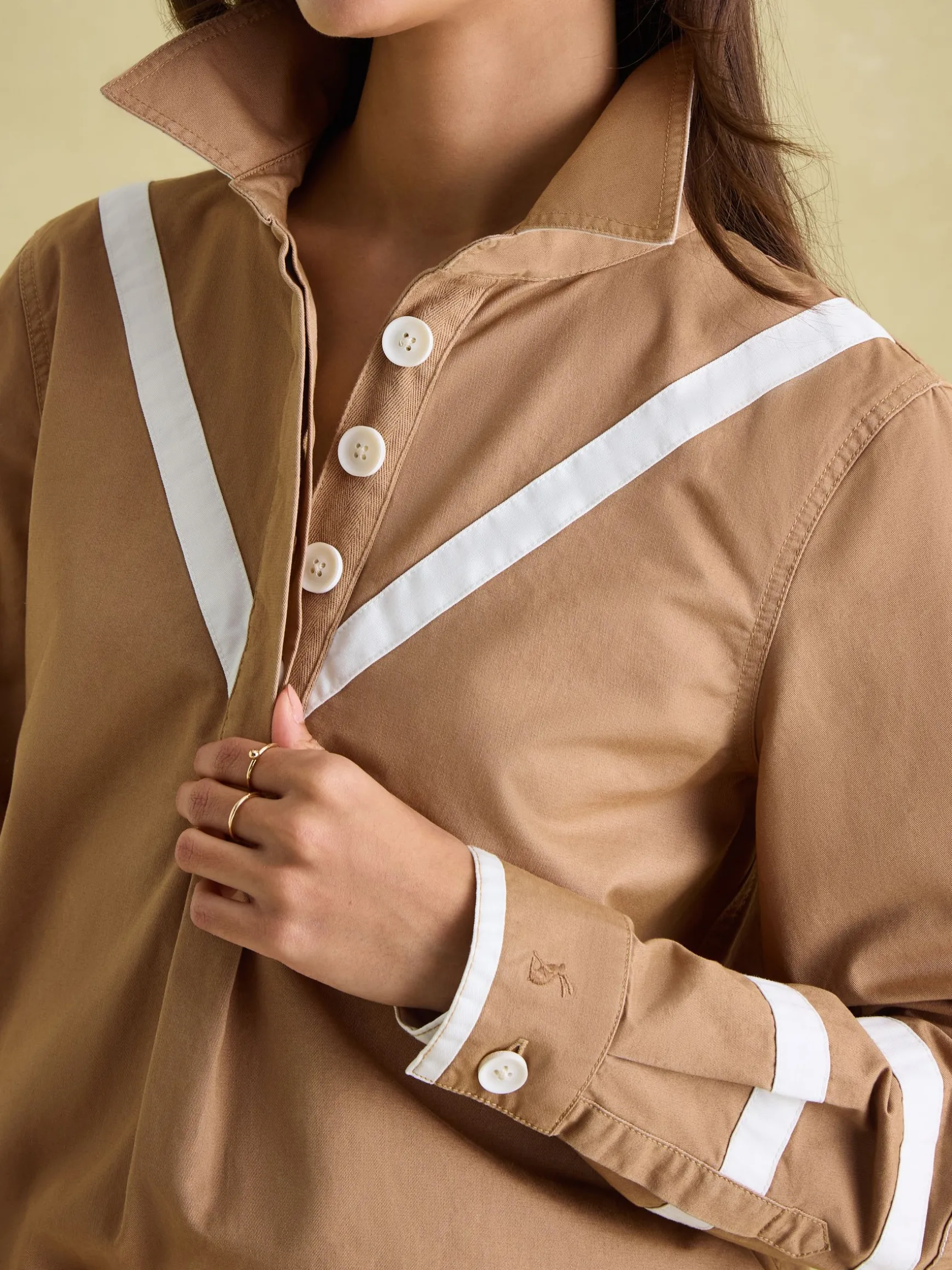Brinley Tan Brown Cotton Deck Shirt