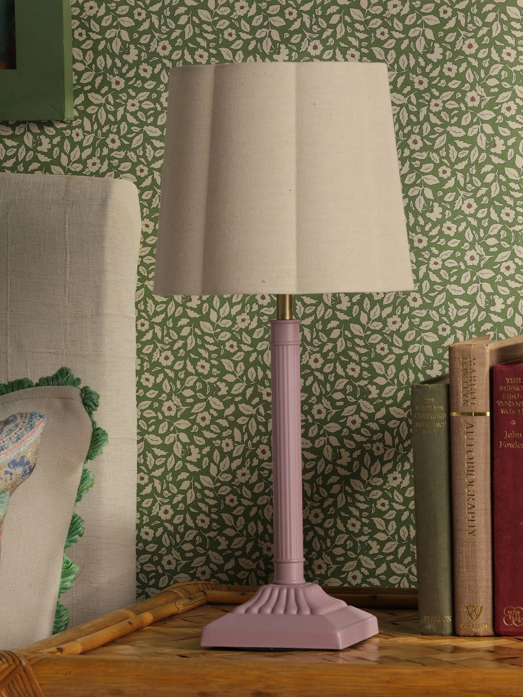 From bedside to bookcase, the Buscot table lamp will enhance any space in your home. Combining timeless style and functionality, it’s a piece that will look just as good in years to come as it does today. A decorated long column stand and square base with a pink matte painted finish creates stand-out appeal. The neutral coloured linen lamp shade is scalloped for a nod to the art deco era and creates a cosy glow against the wall. Just add an early night and the latest romance bestseller. nnColumn stand with square basenDecorated matte painted basenLinen scalloped lamp shade with bordernDi: 200mm x H.430mm