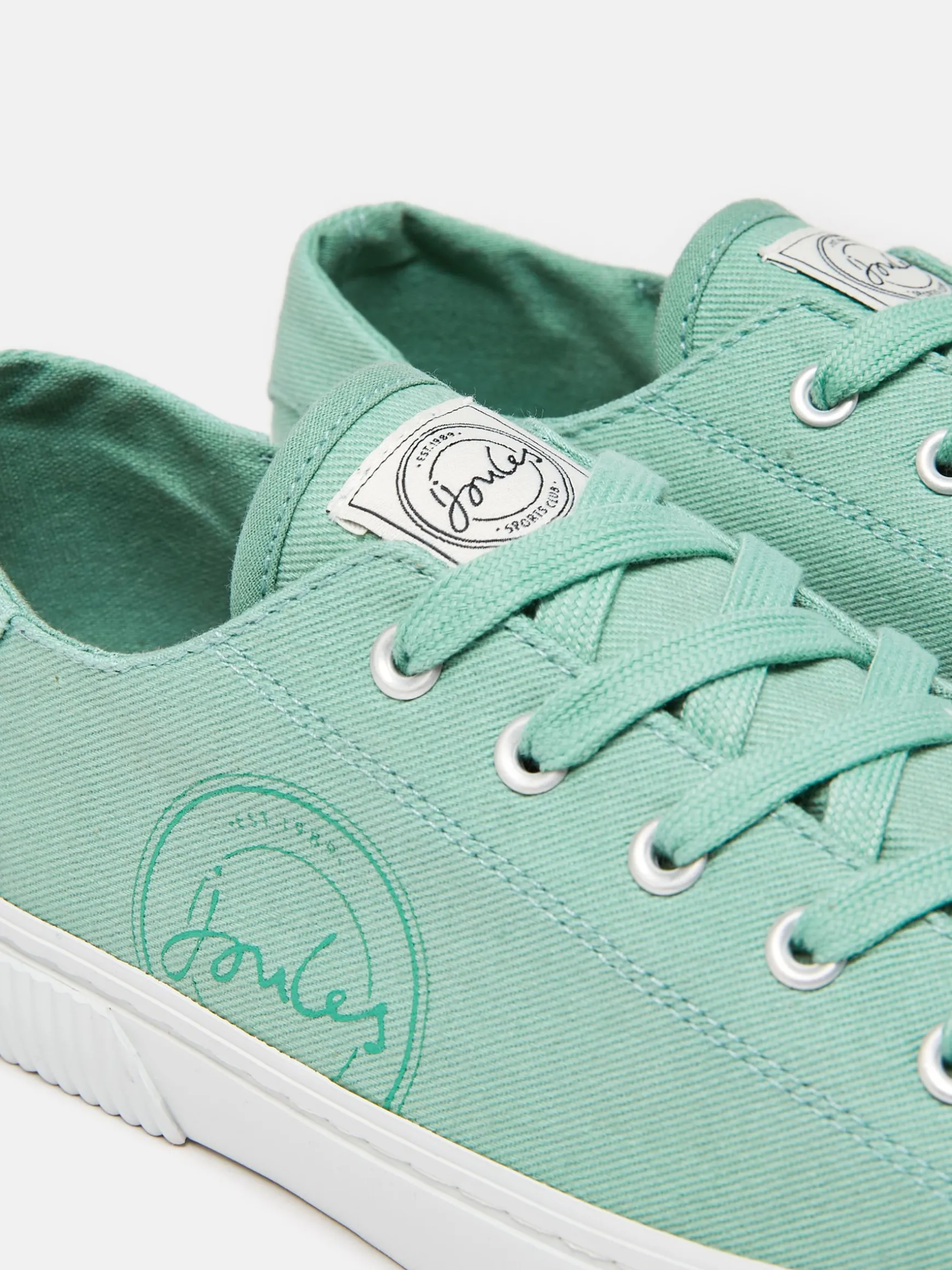 Our Coast pumps are back and have been given a preppy update for the spring and summer season. The cotton canvas uppers are lightweight and breathable perfect for the warmer weather, while the white rubber outsole, toe cap and ridged foxing adds to the sporty look. A classic lace-up system with metal eyelets ensures a comfortable fit. They’re finished with Joules Sports Club branding to the uppers and tongue. Cotton canvas uppers. Rubber outsole. Rubber toe cap. Lace-up system with metal eyelets. Ridged foxing. Joules Sports Club branding to the upper and tongue.