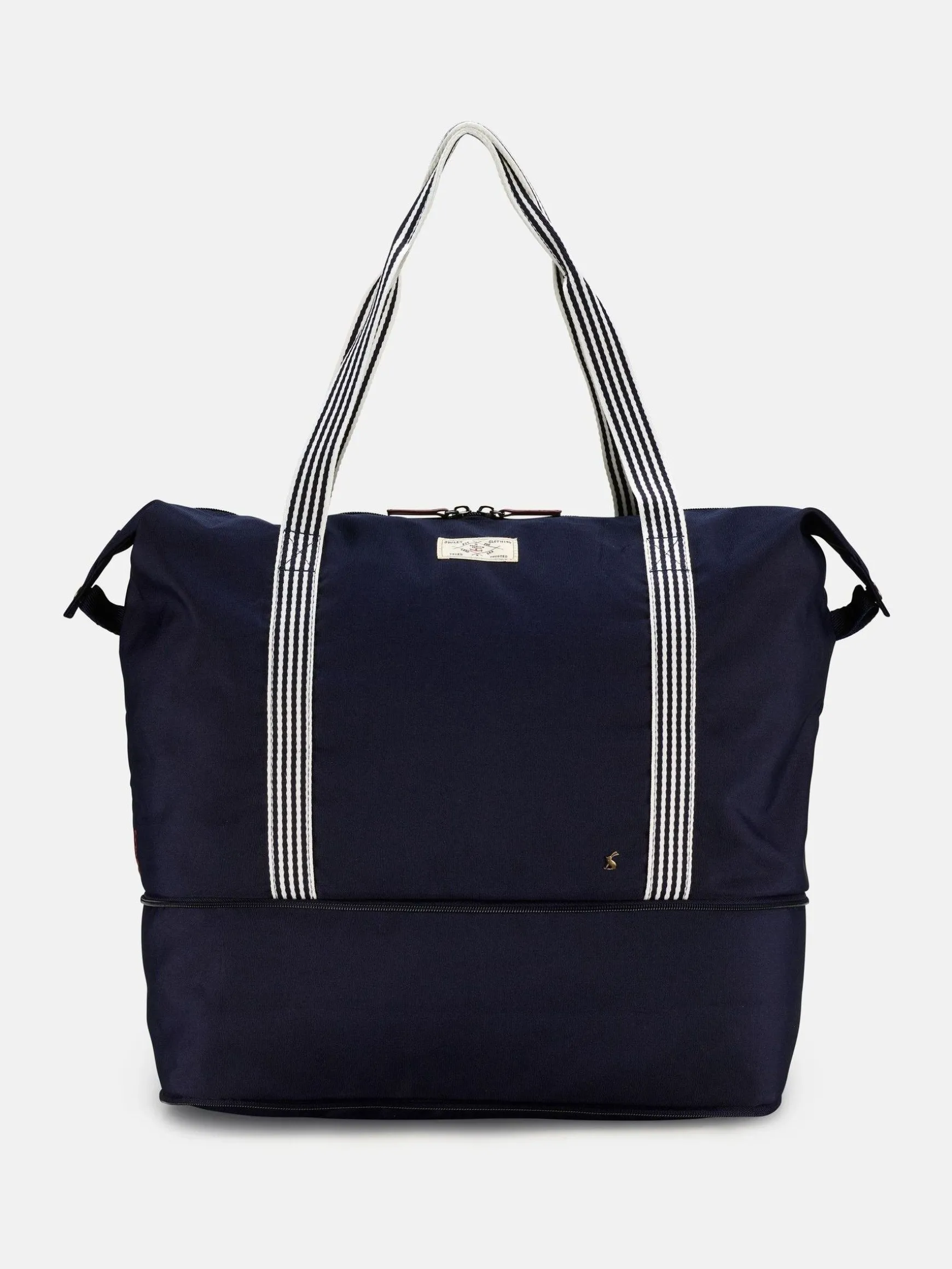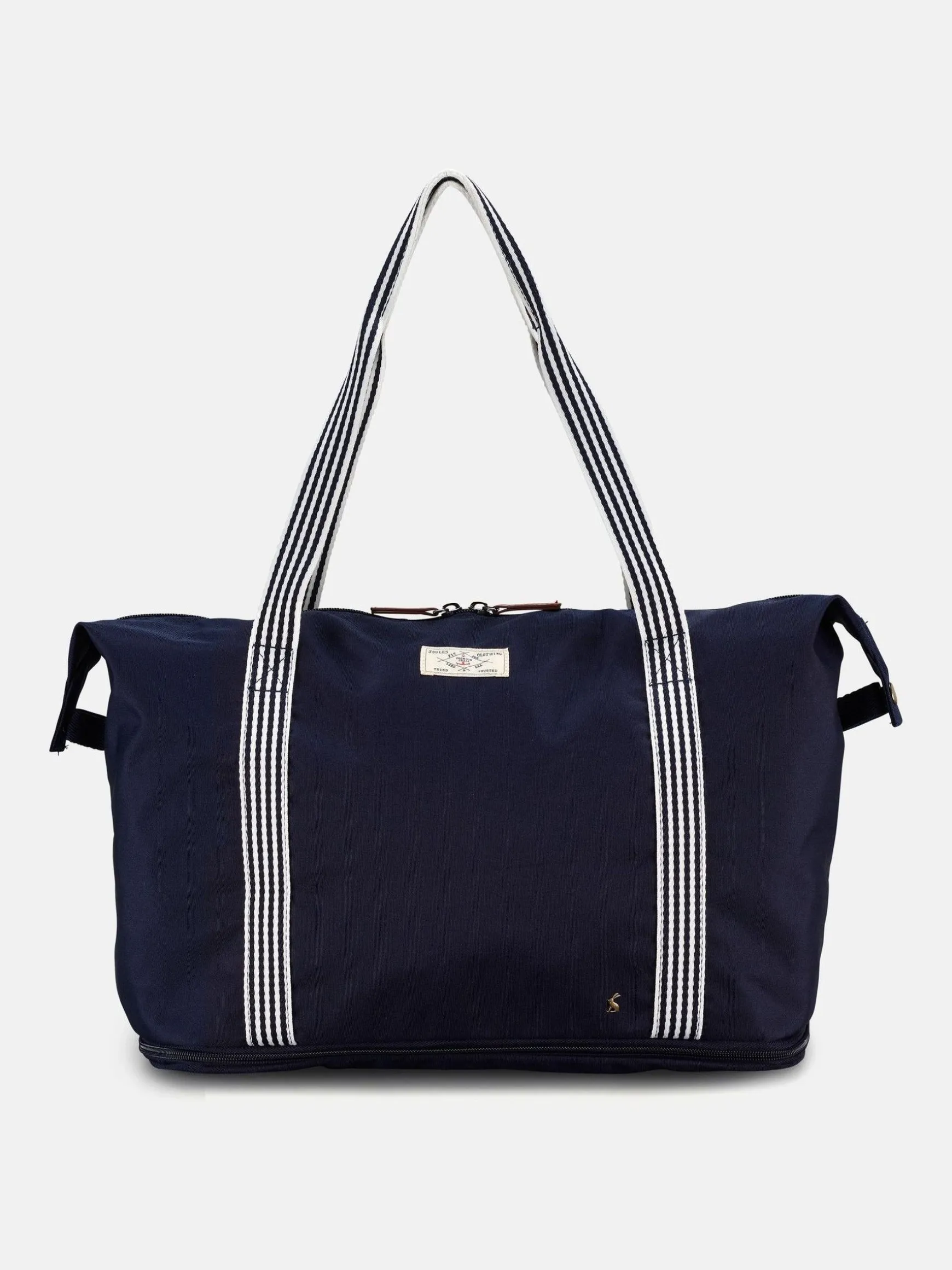 Made for getaways and holidays each and every item from the Joules Travel collection is designed with the aim of making your journey just that little bit more straightforward. Durable, lightweight, identifiable luggage pieces with organised interiors. This duffle is an ideal travel companion that will prove its worth time and time again. nnPackawaynSuper lightweightnSlouchy stylingnTwo handy front zippered pocketsnAdjustable striped handles in contrast webbingnRemovable shoulder strapnTwo handy front zipped pocketsnWide opening main compartmentnPadded, removable and adjustable shoulder strapnTrigger clips on either sidenBrushed antique gold hardware alongside contrasting tan zip pullsnSignature hare logo and stitched coast logo patch