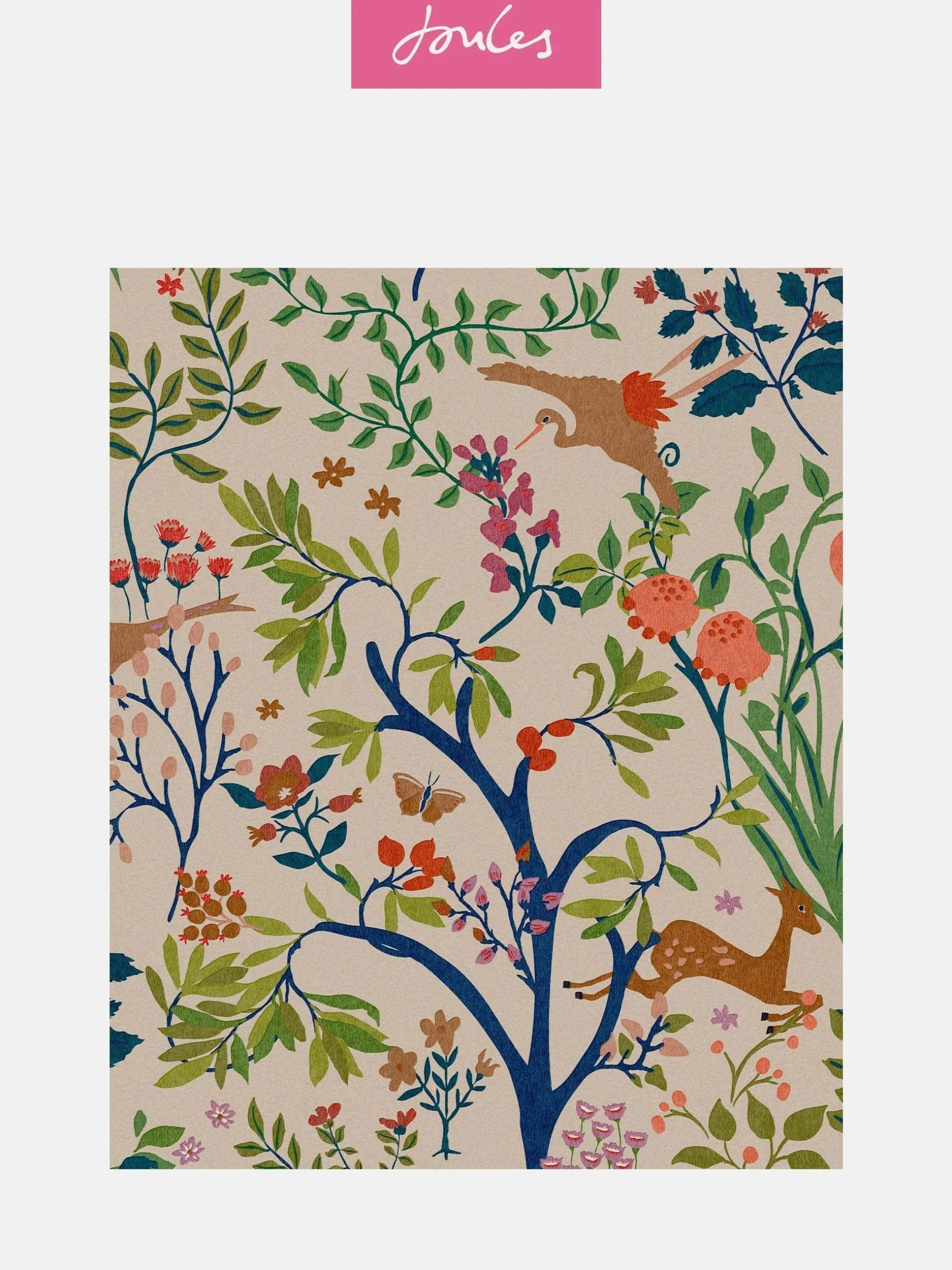 Bring a classic heritage look to your home and showcase the nature captured within this enchanting design. Perfect for bringing the outside in by combining sprigs, flowers and trees with many woodland creatures. Printed on a matt substrate for a contemporary look and feel. This wallpaper is also paste-the-wall, making it easy to hang.