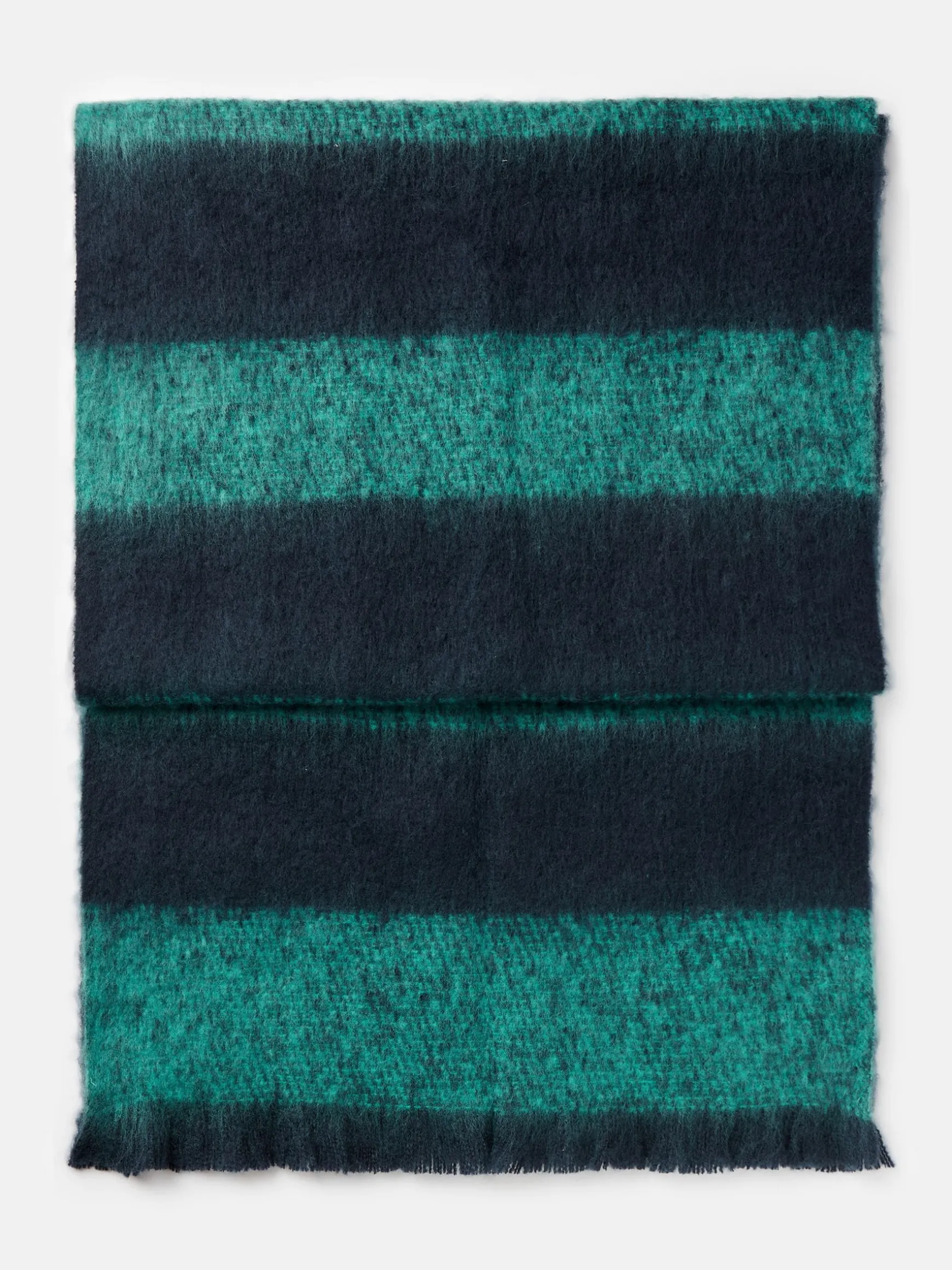 When the time comes to brace for the cold, the Fenella scarf will be the thing you reach for over and over again. Its oversized blanket style welcomes heaps of warmth to your outfits, while the two-toned striped design will add an abundance of style. Finished with frayed edges and a Joules branded tab. Blanket-style scarf. Oversized. Super soft. Frayed edges. Two toned stripe design. Joules branded tab.