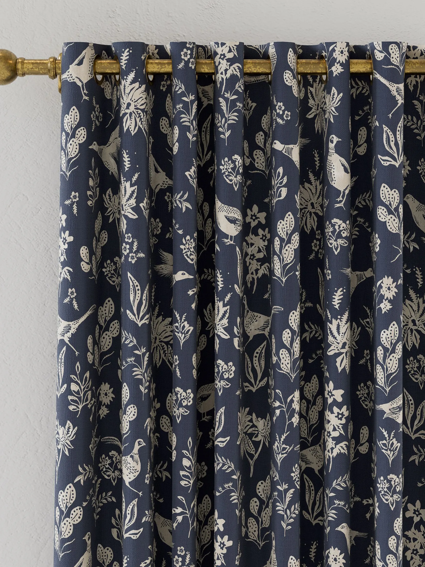 Festival Pheasants Set of 2 Navy Blackout Eyelet Curtains