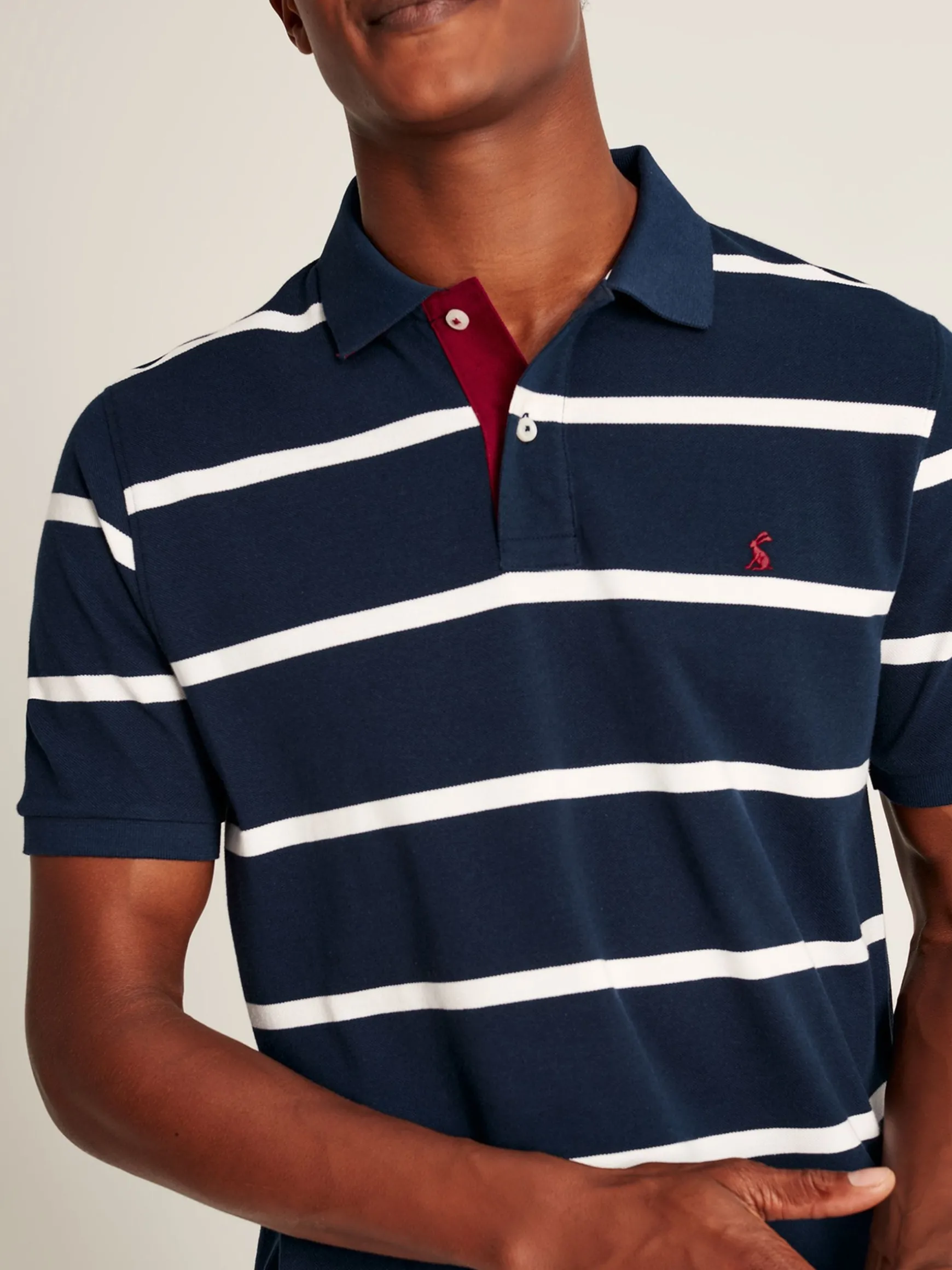Classic, timeless and versatile, the polo shirt should be a principal part of any man’s wardrobe. Our navy Filbert polo has been a go-to for many seasons, loved for its classic fit, breathable cotton pique fabric and its array of striped options. It has short sleeves, a button placket, a contrast undercollar and a Joules embroidered hare to the chest. Great for layering all year round. Cotton pique. Classic fit. Short sleeves. Button placket. Contrast undercollar. Side splits. Striped. Joules embroidered hare to the chest.