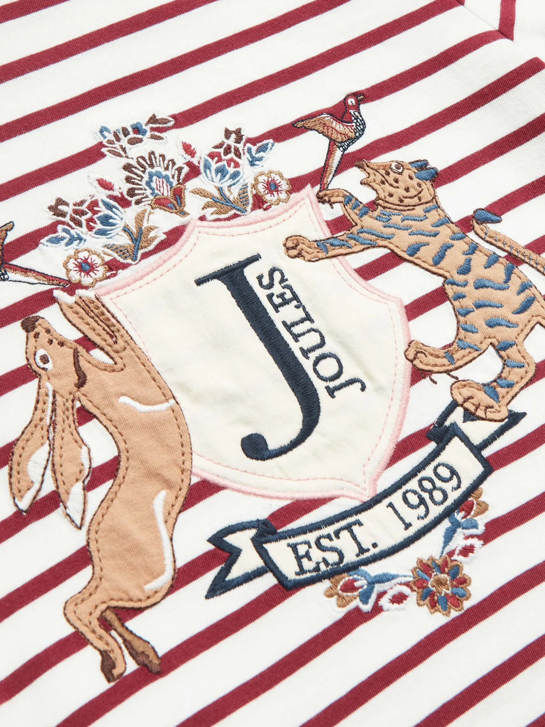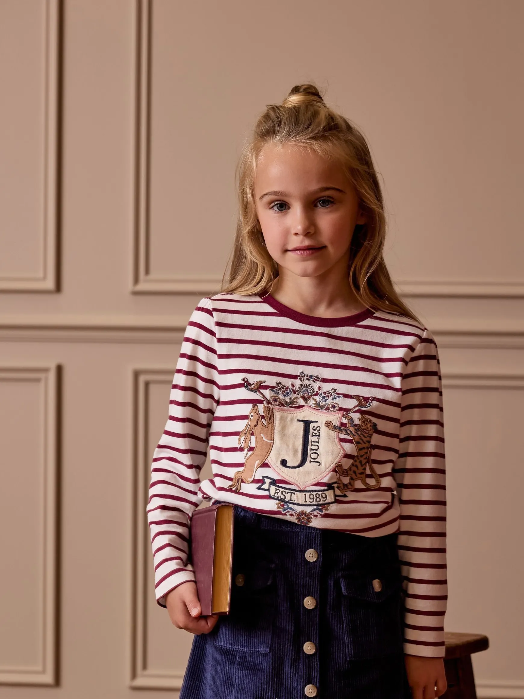 If any top is going to be a big hit with your little one, it’s the Ava. It has an applique design to the front that’s packed full of personality (they’ll be showing it off to everyone they meet). And the crew neck, relaxed fit and long sleeves with dropped shoulders make it rather handy for layering under gilets, jumpers and more. It’s finished with a Joules embroidered hare to the hem and logo to the outer back neck. Jersey. Relaxed fit. Long sleeves. Dropped shoulders. Crew neck. Straight hem. Applique detailing to the front. Joules embroidered hare to the hem